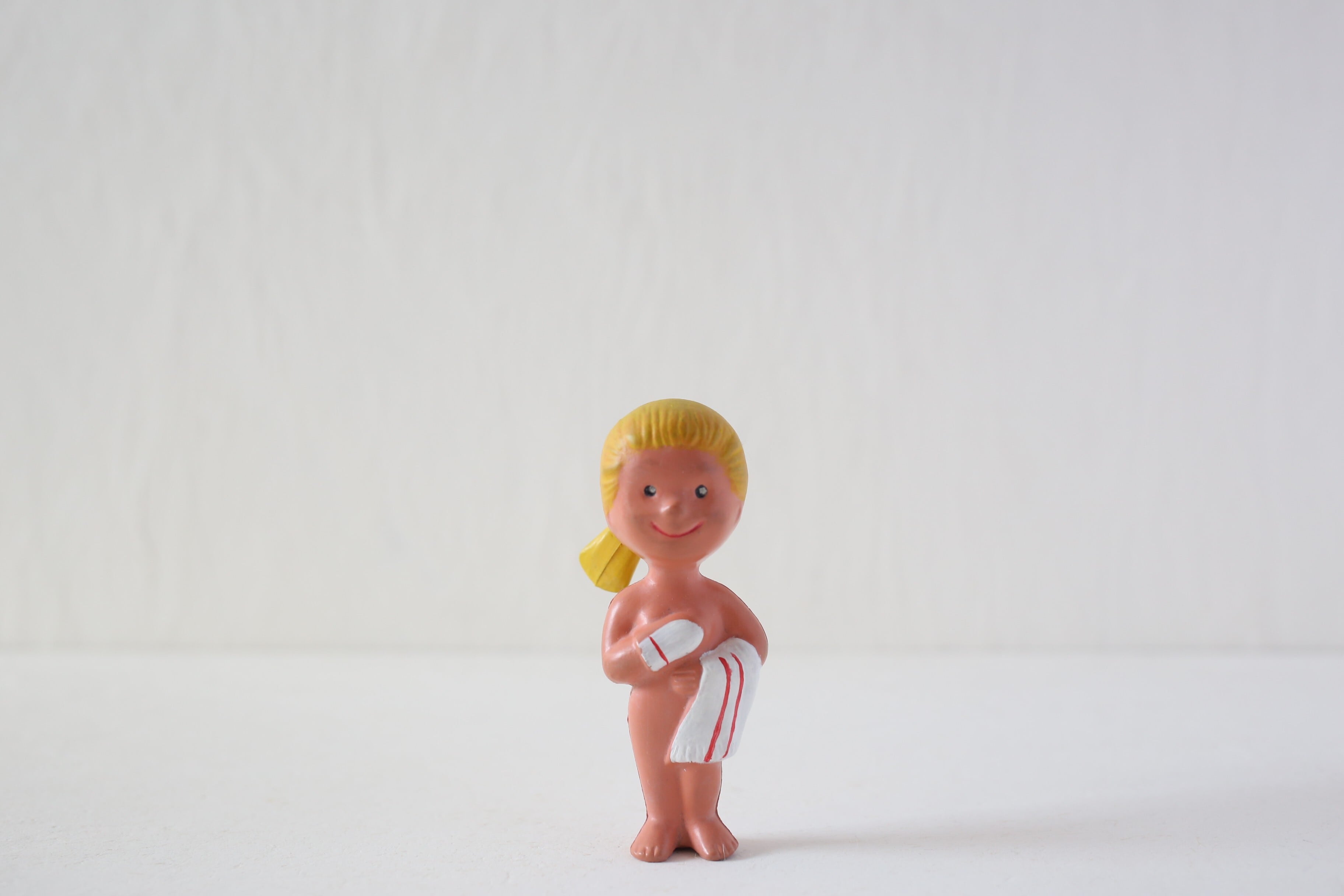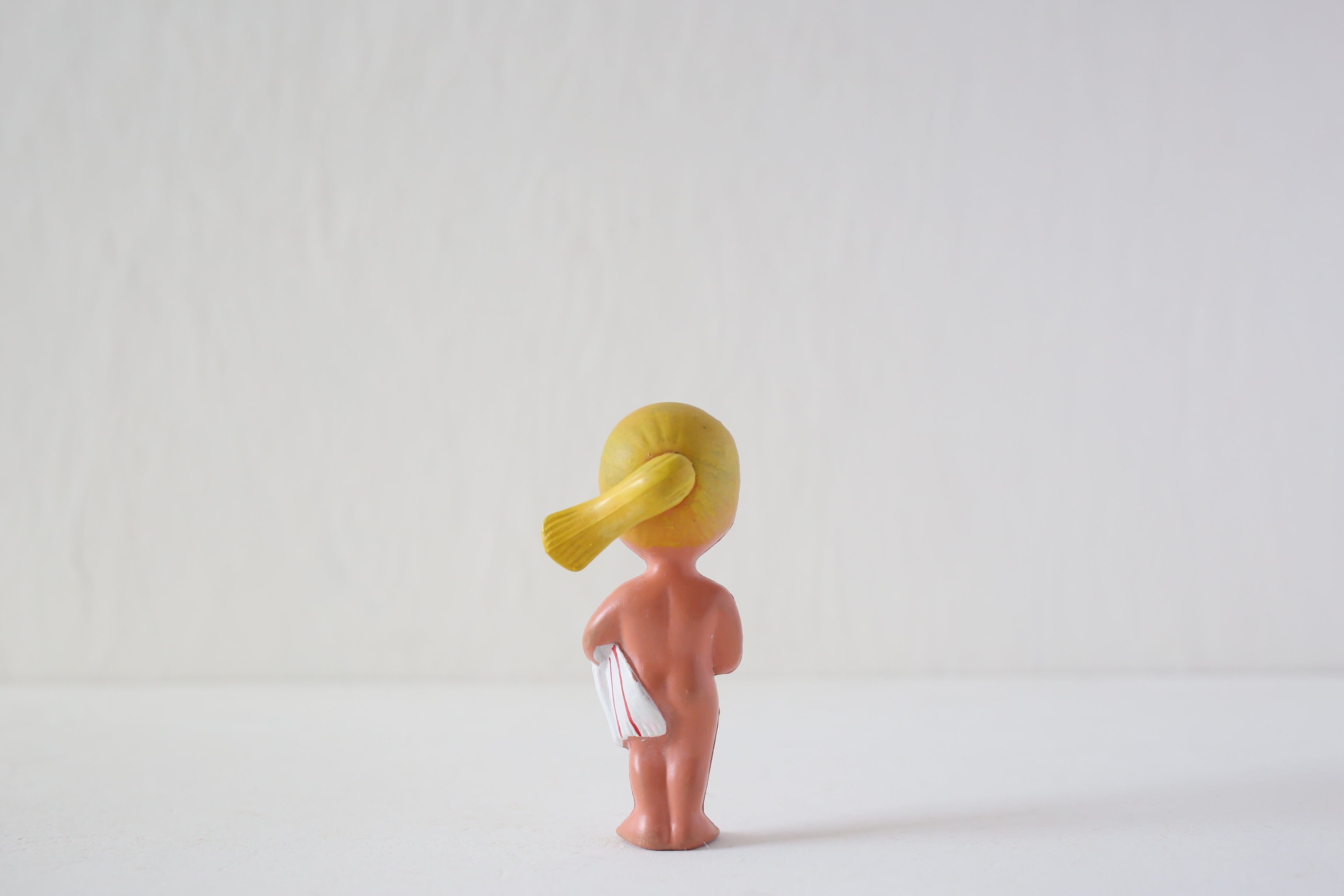 眉毛が薄くなり、鼻や口の周りが少し黒ずんで見えますが、それ以外は若干の汚れやペイントの薄れ程度でしっかりと自立もでき良い状態です。