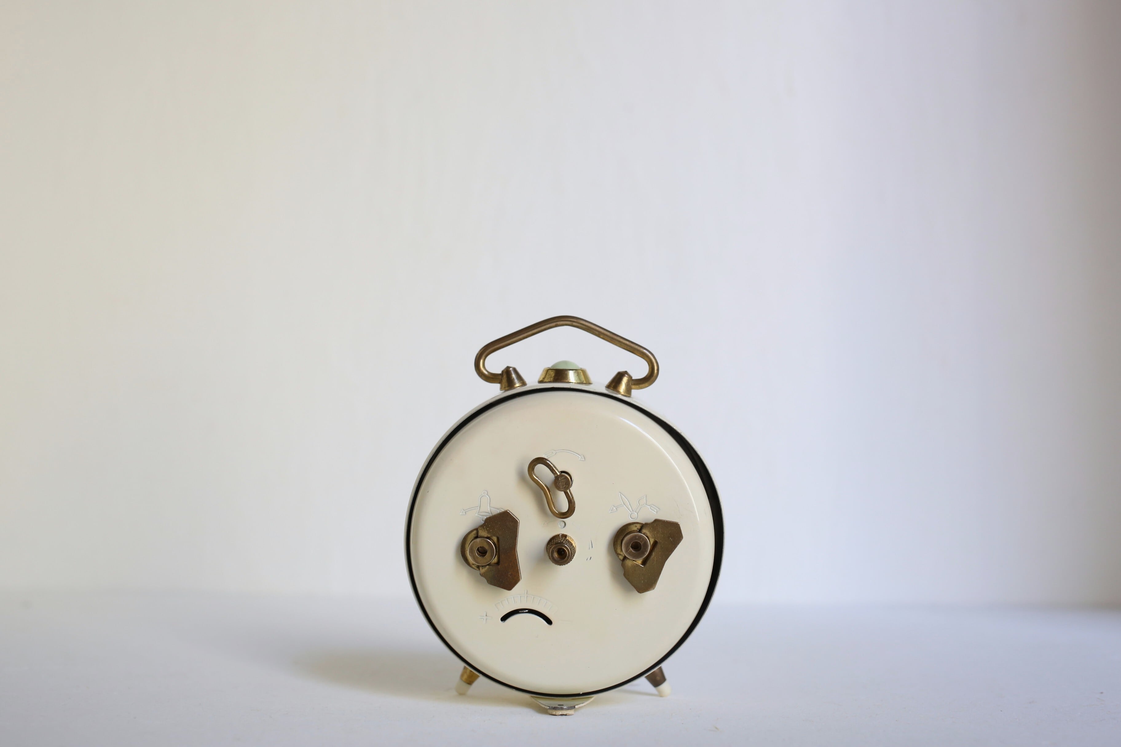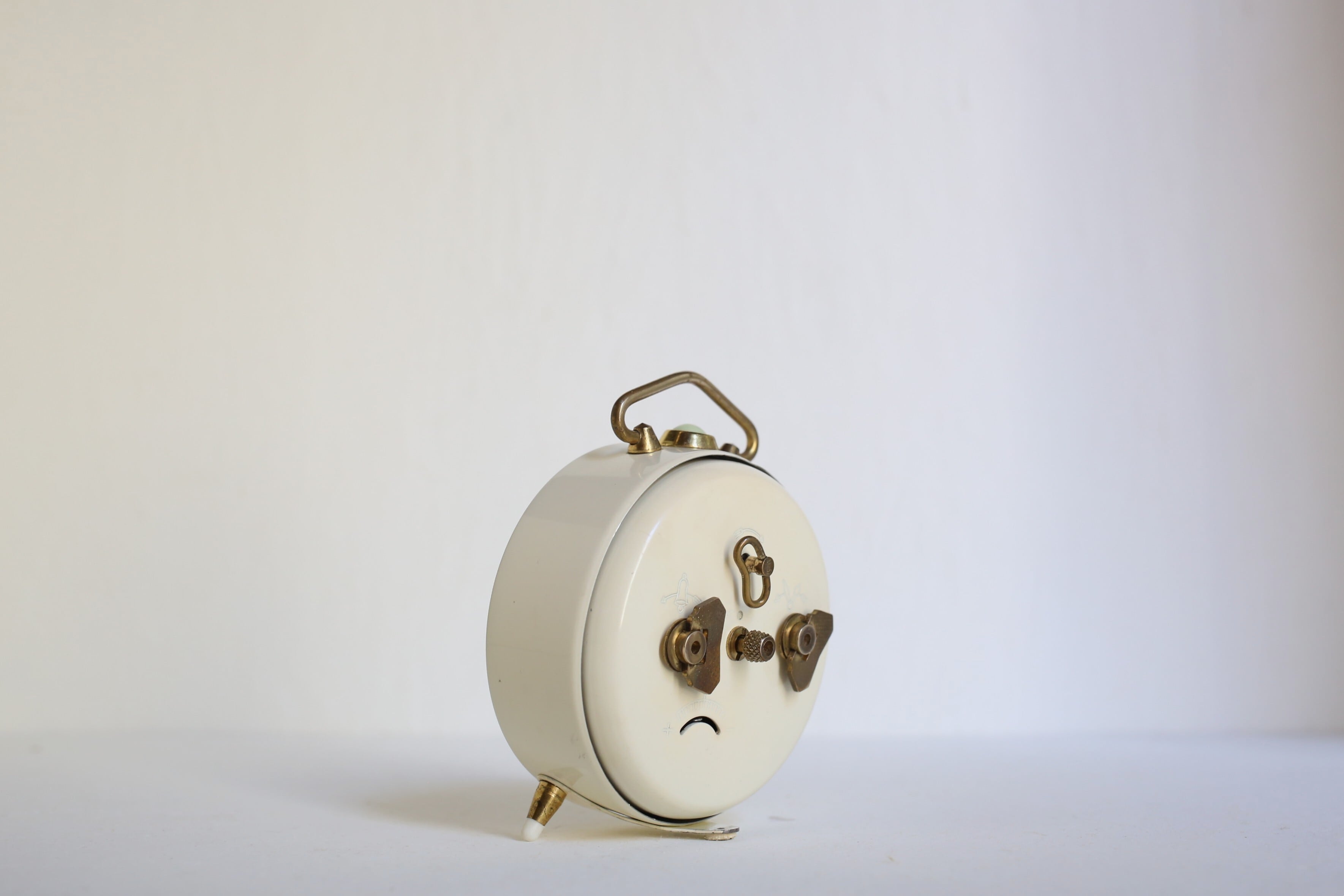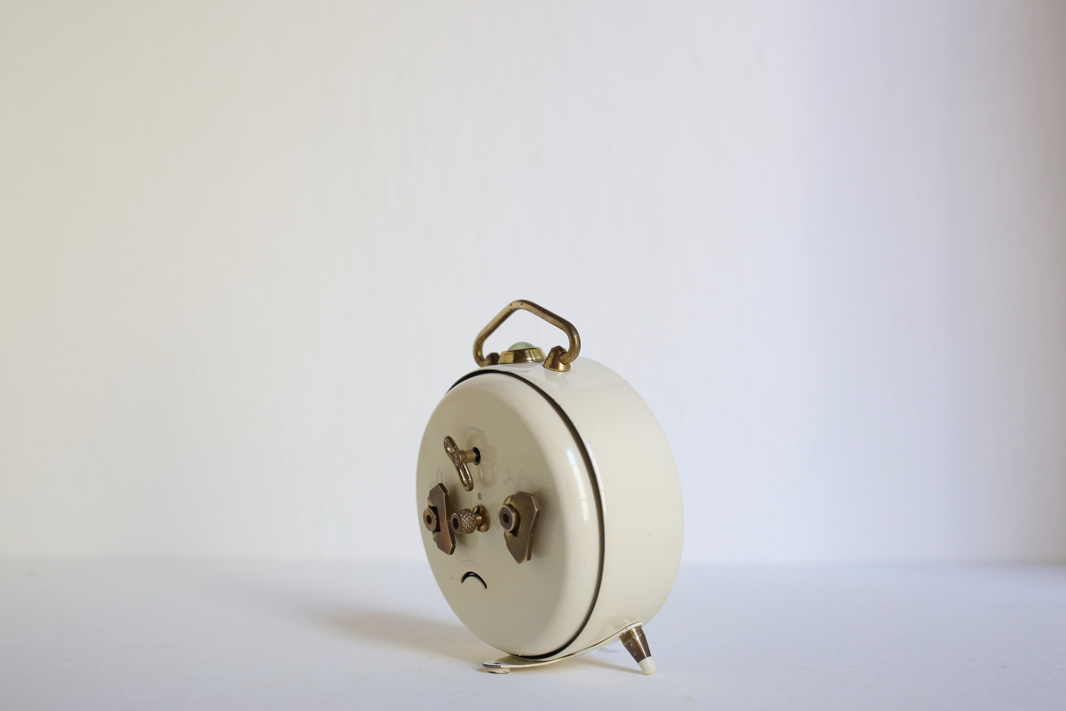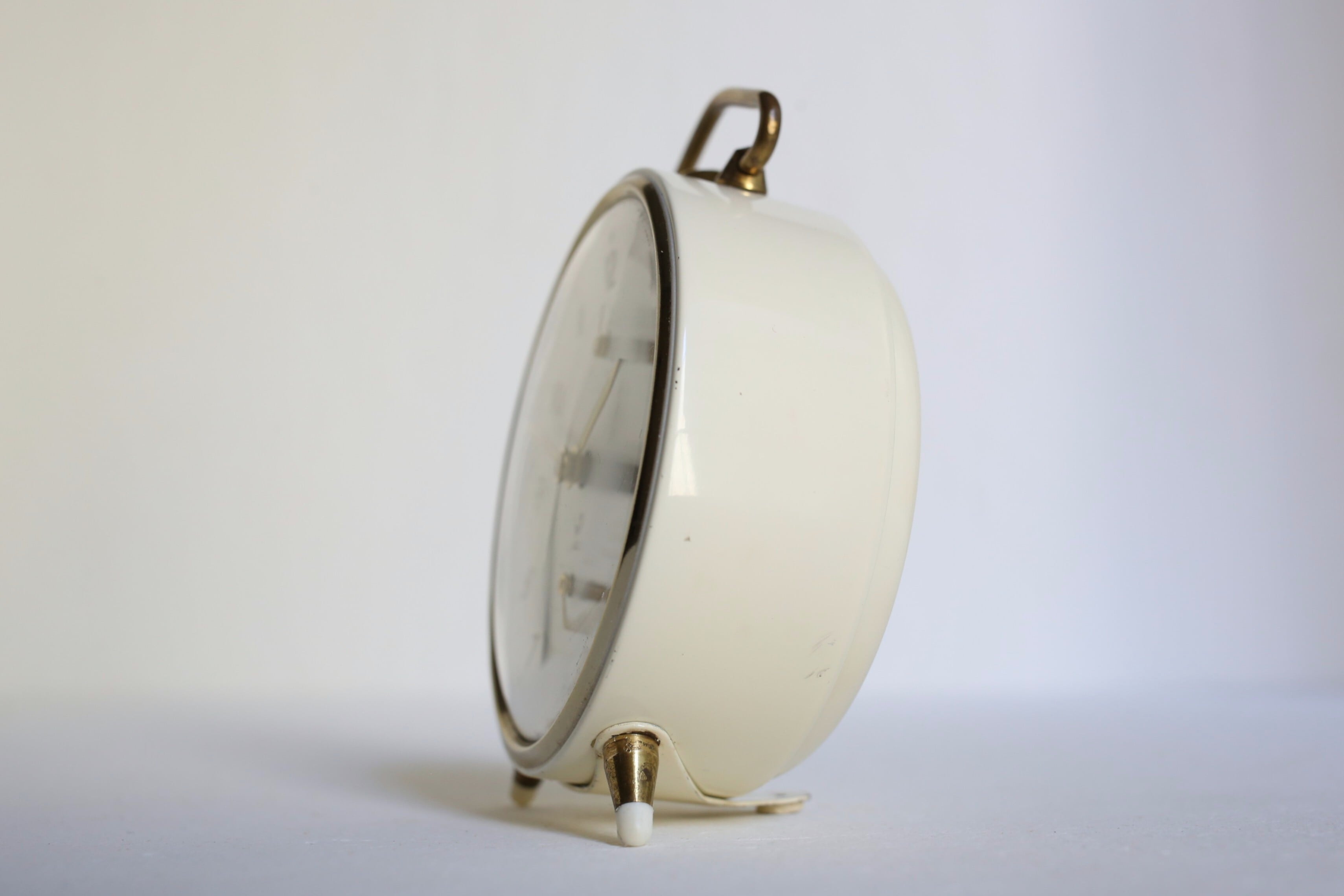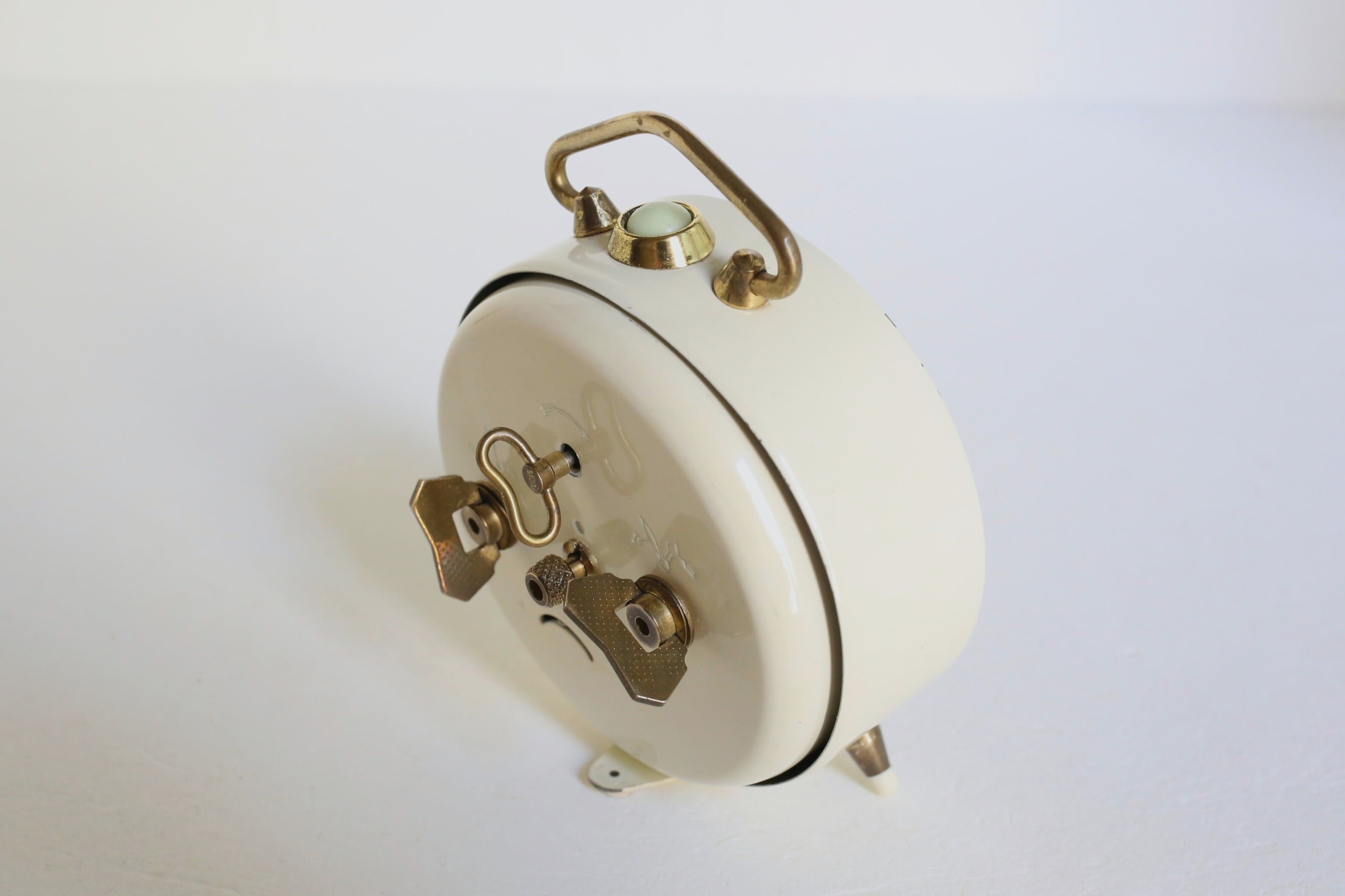 持ち手や脚などのゴールドが良いアクセントになった目覚まし時計らしいデザインは、すっきりとナチュラルな印象で素敵です。