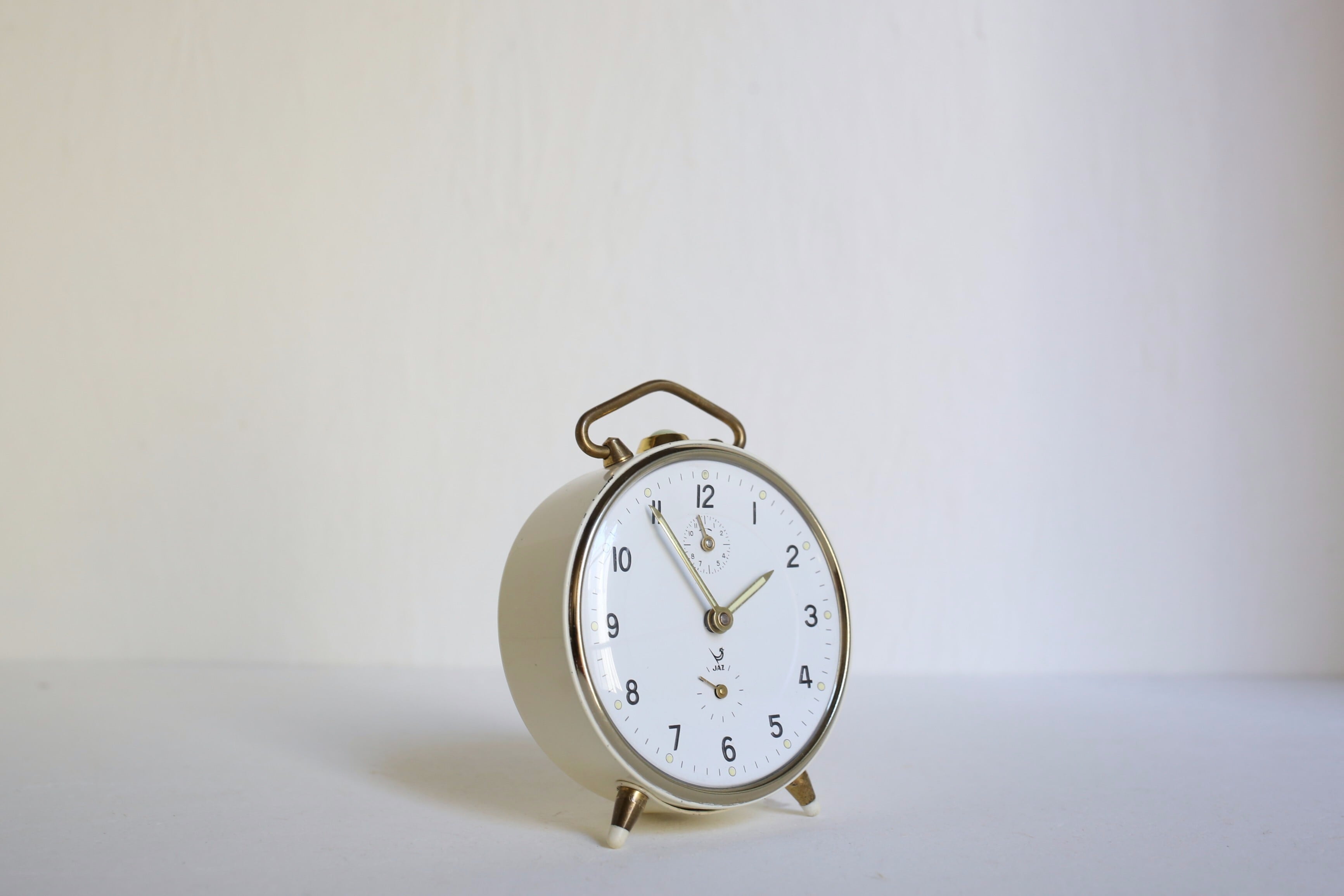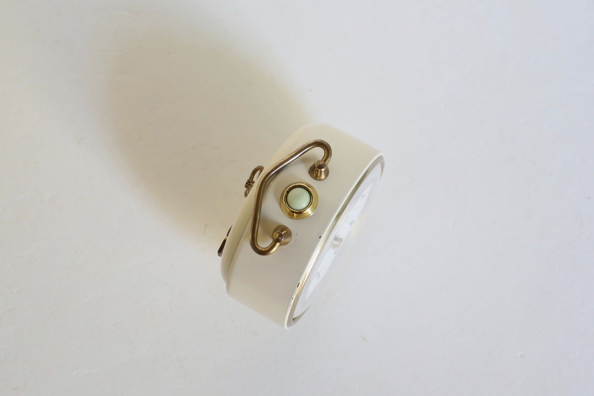 フランス JAZのアイボリー×ゴールドの秒針付きの目覚まし時計です。