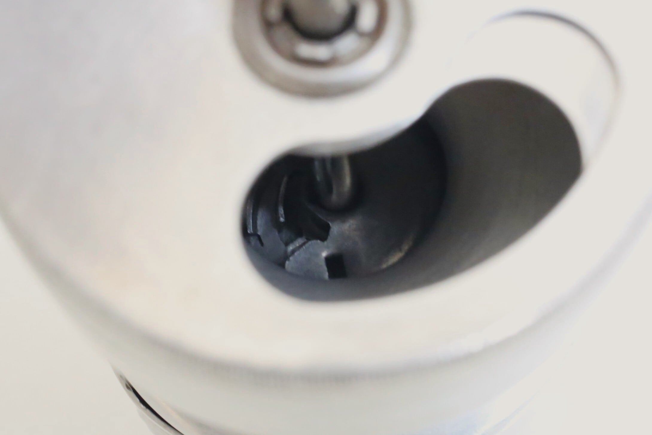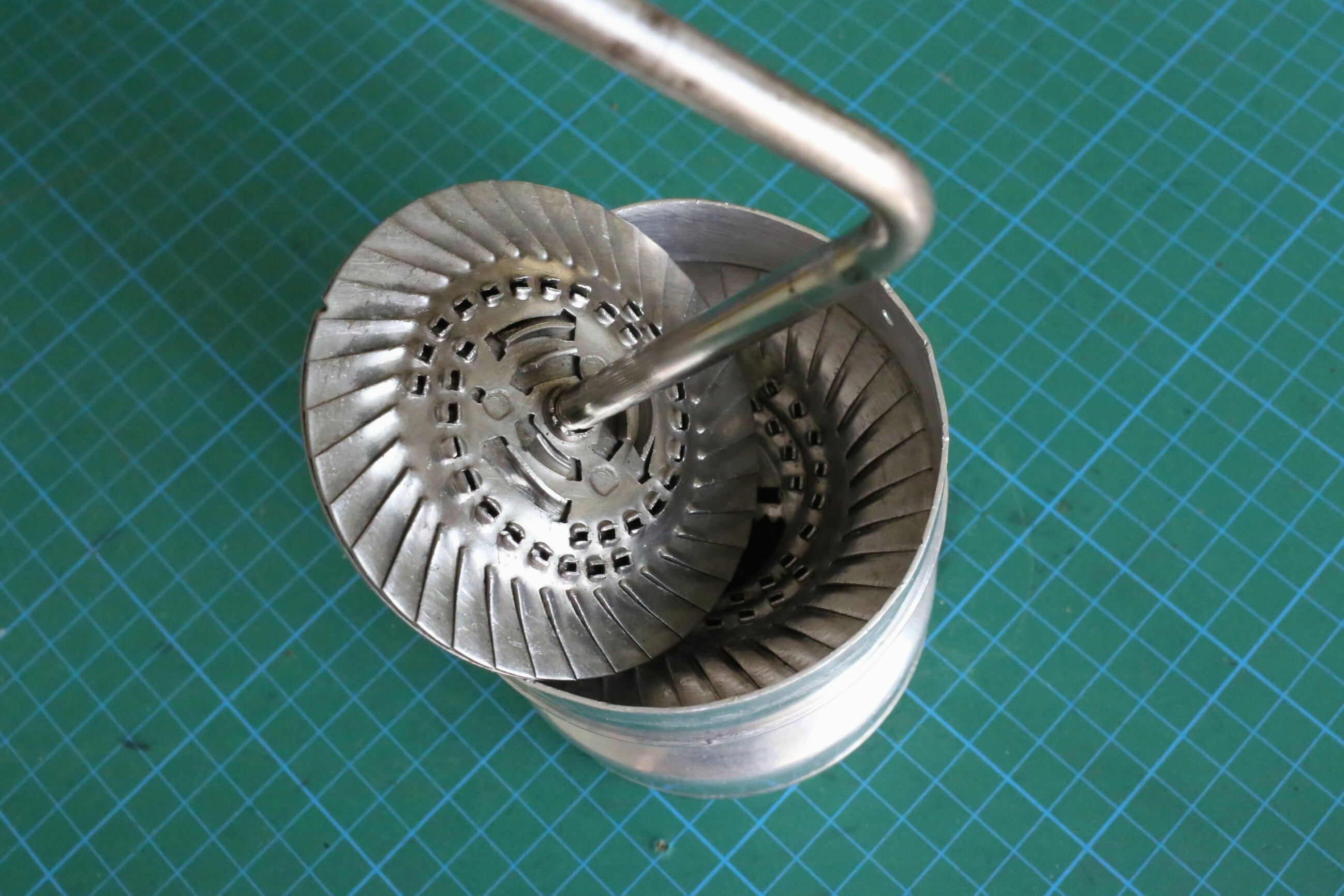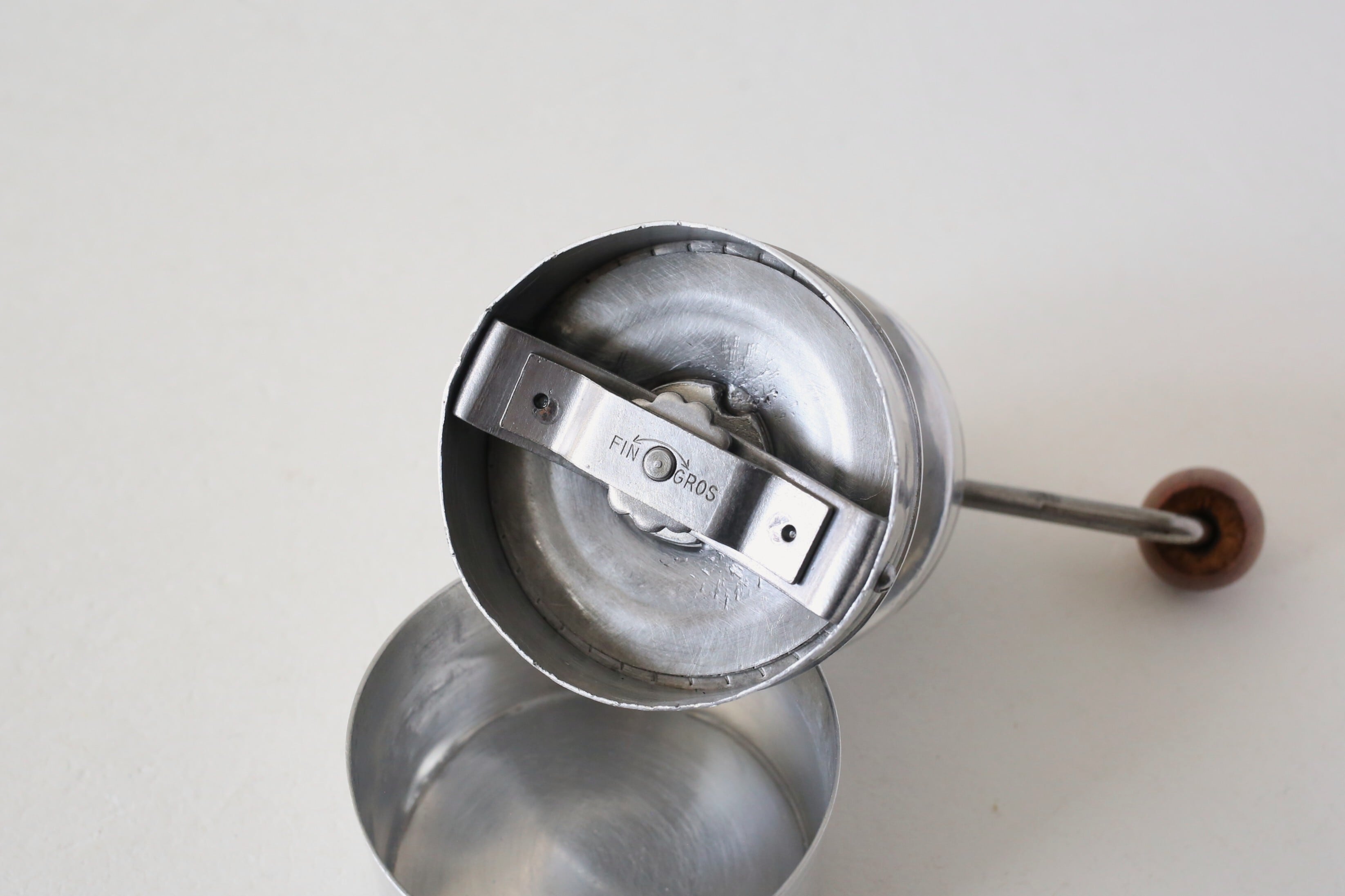 下段のカップを外すと内側に挽き具合の調整ネジがついています。