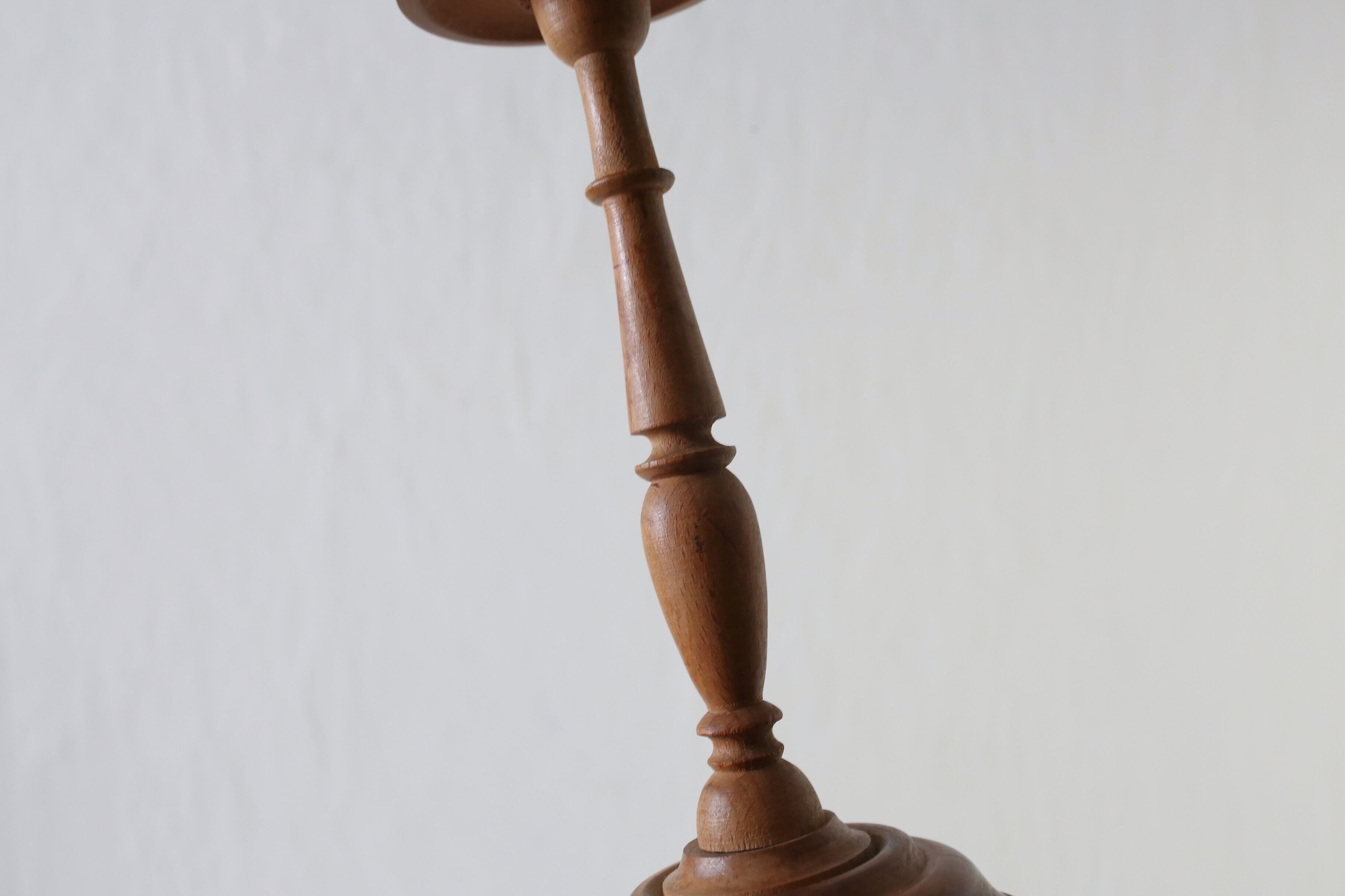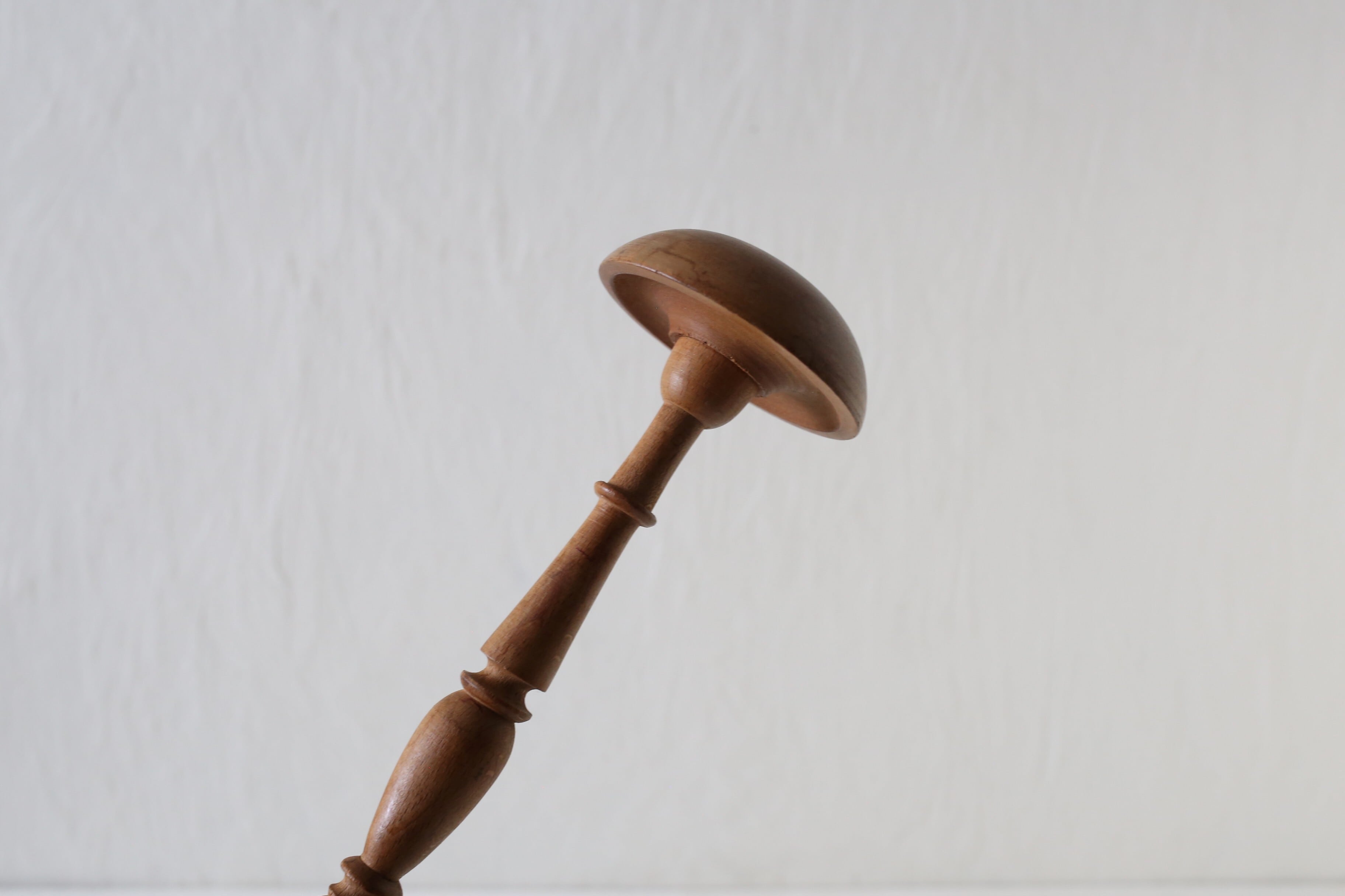 高さ20cm程とハットスタンドとしては小ぶりな方ですが、無垢の木ならではの木目や質感、滑らかな細工や仕上げが素晴らしく、帽子を掛けなくても十分にオブジェになる気品のある佇まいです。