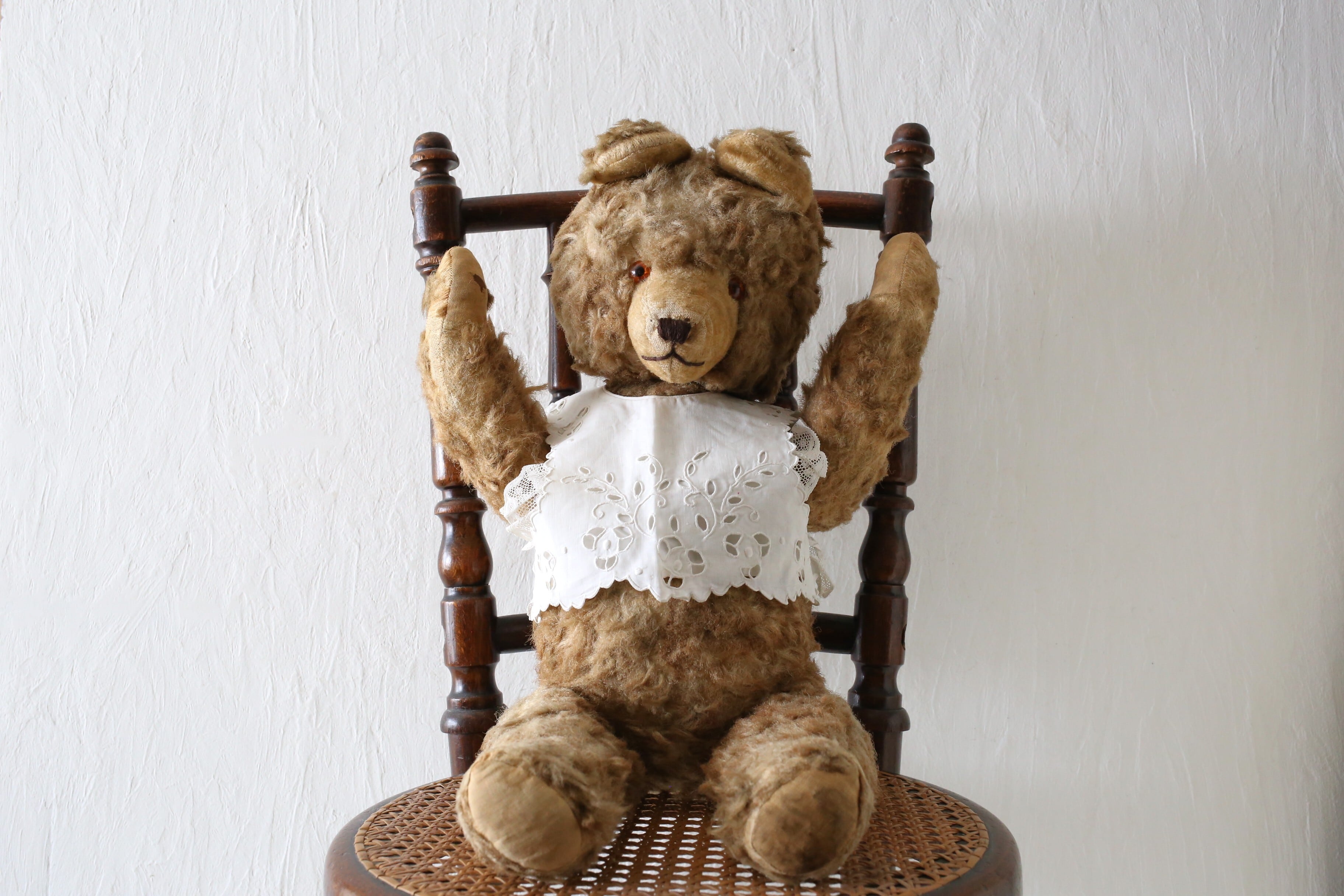 フランス アンティーク ヴィンテージ テディベア (スタイ付き)約52cm N-05691