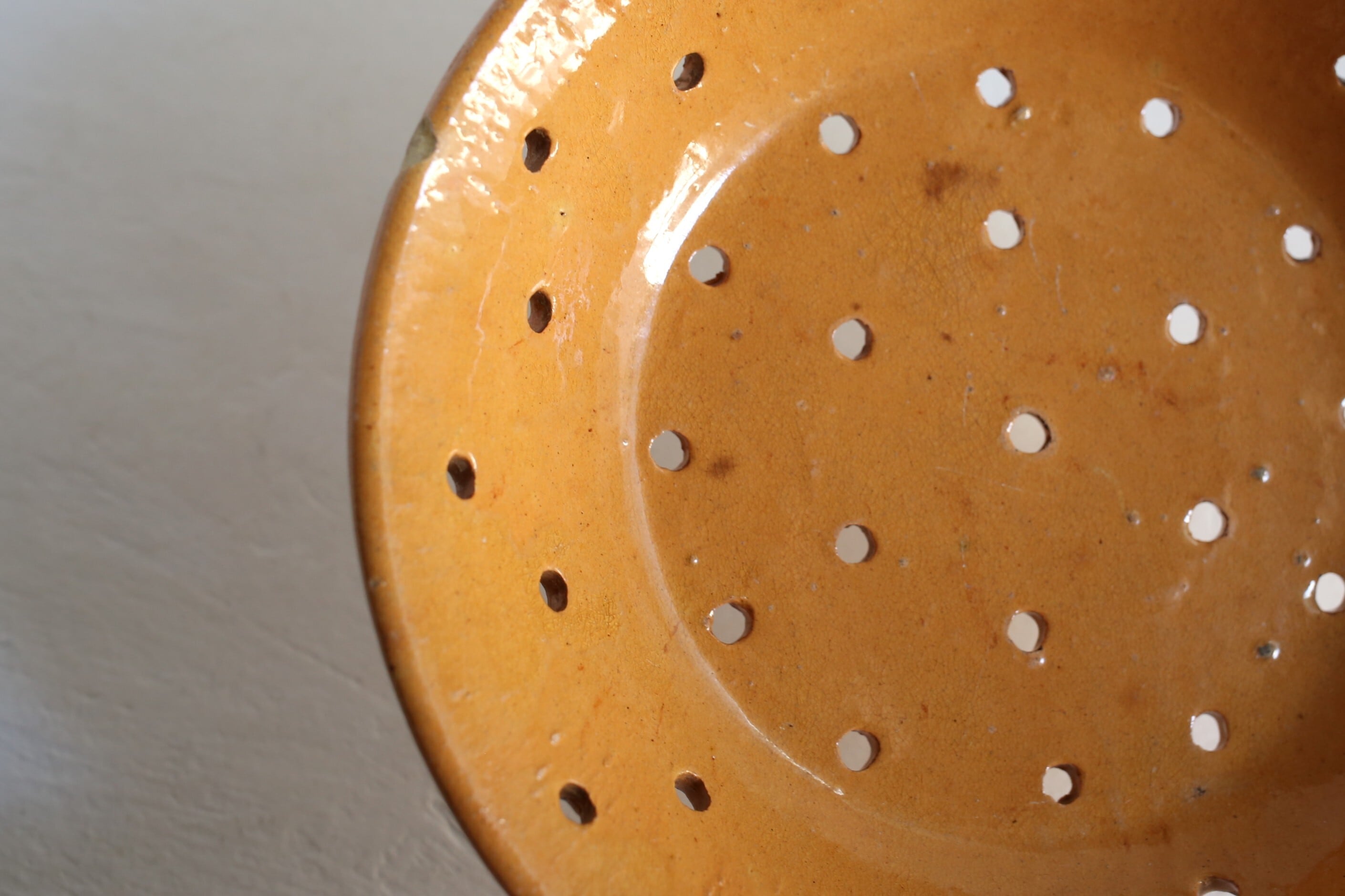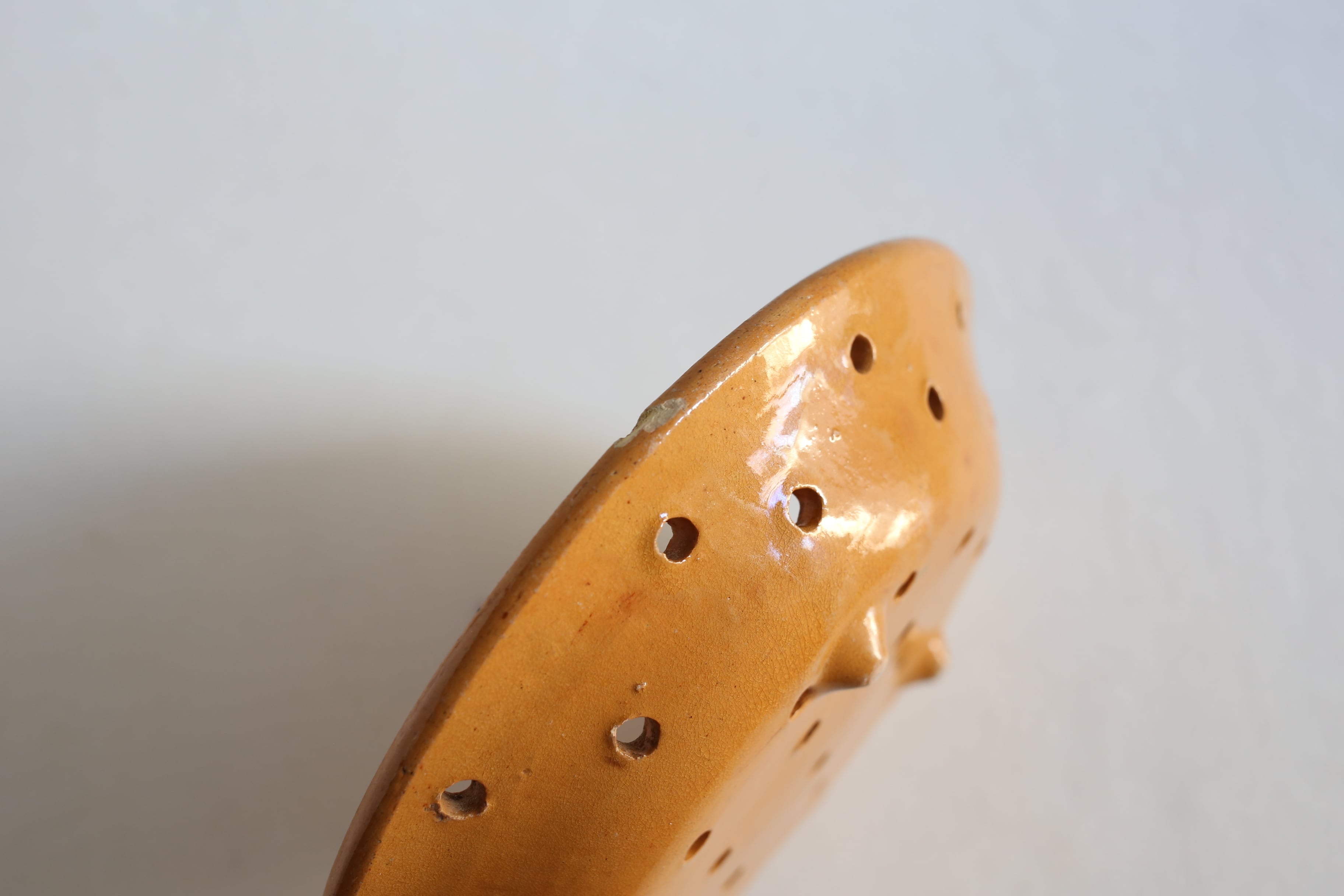 水切り皿自体が見つかりにくくなってきている中で、状態の良い脚付きの水切り皿はとても希少です。