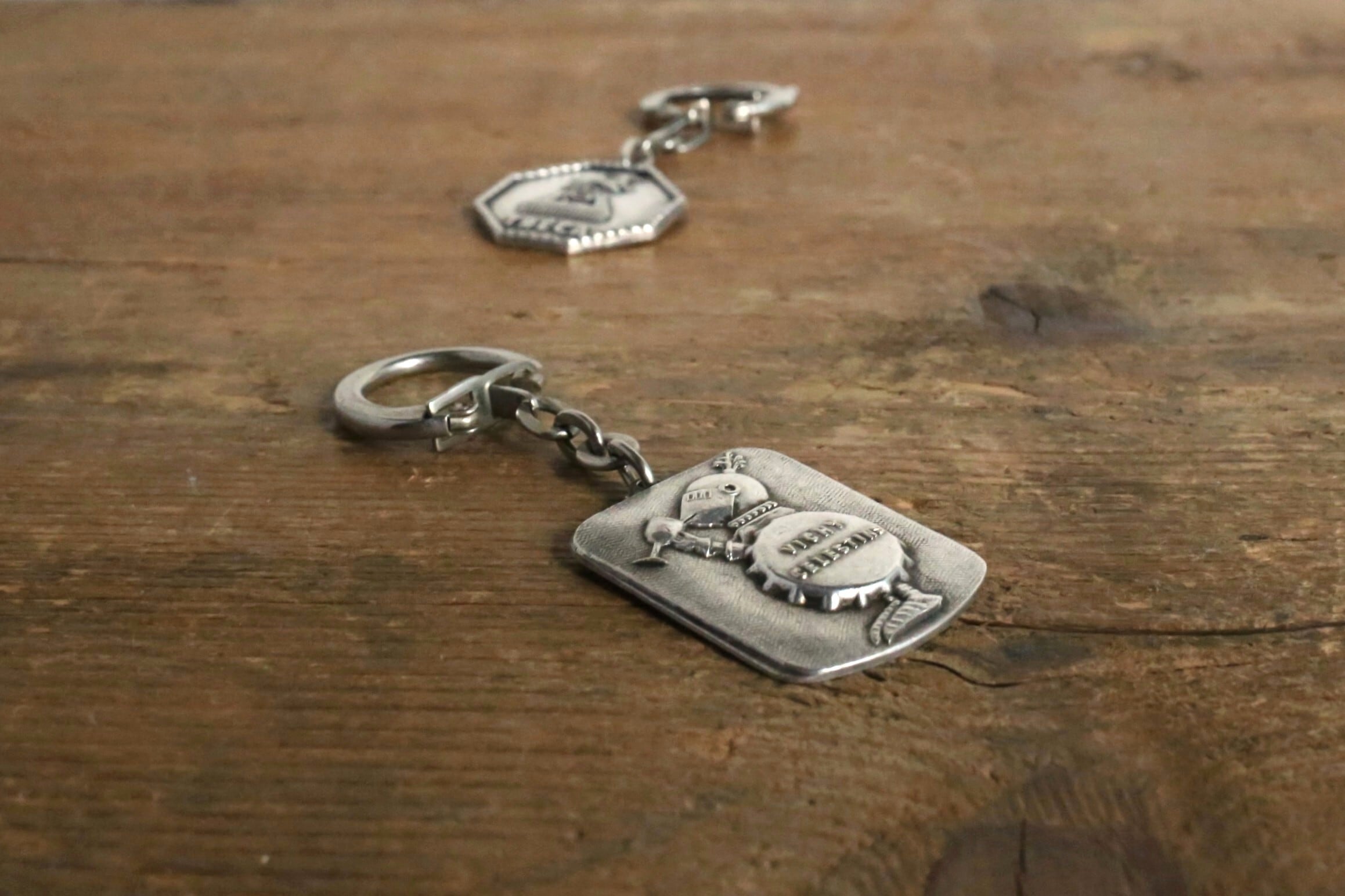 ポスターはカラーでポップな印象を受けますが、メタルのキーホルダーになると深みのある輝きが重厚で趣のある雰囲気を醸しだしています。