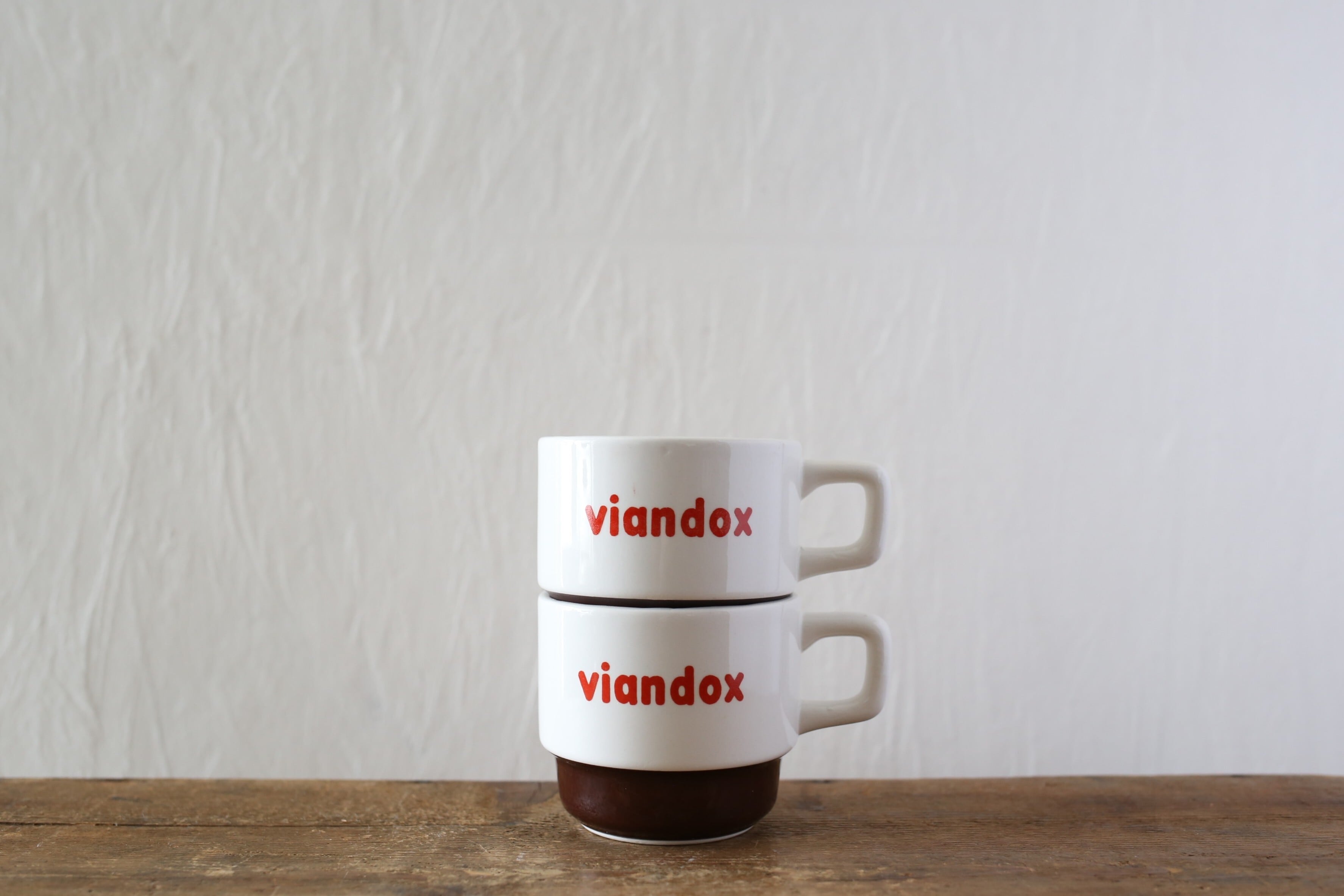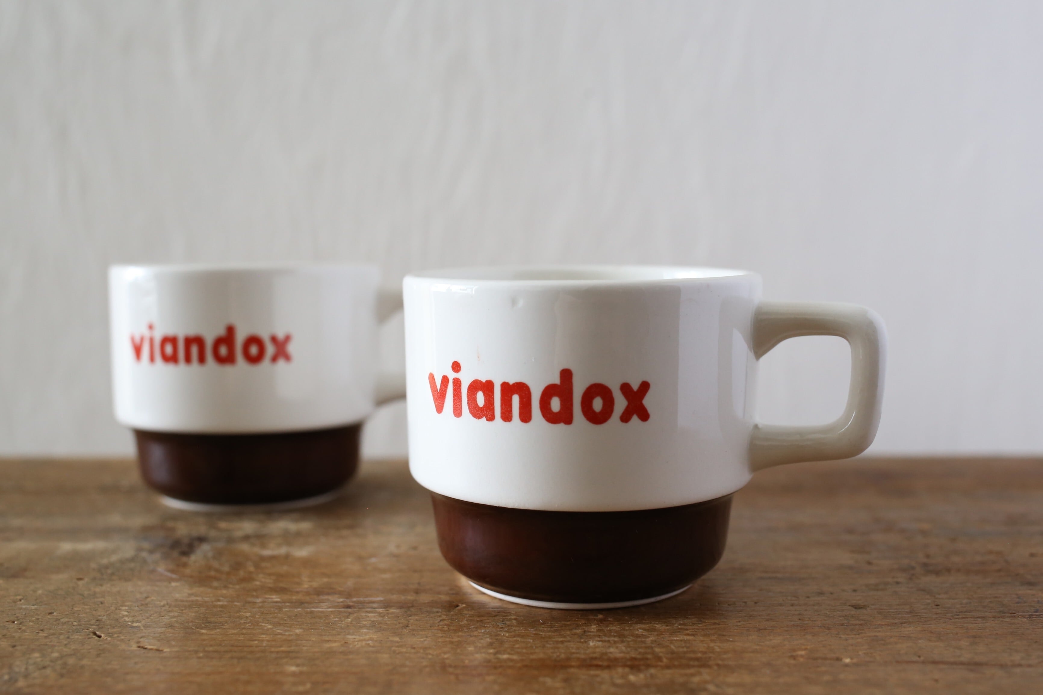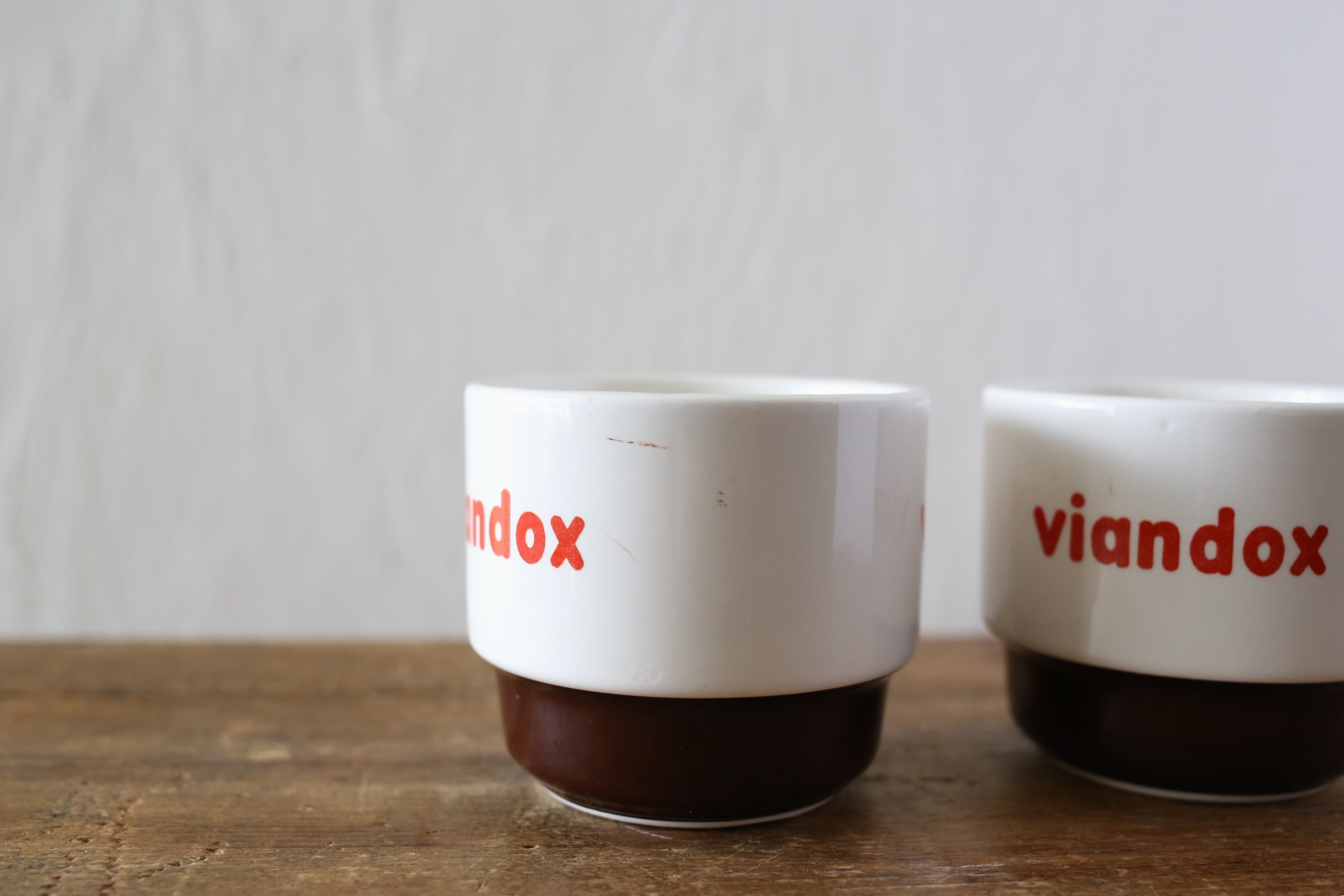 VIANDOXの販促品のカップはMoulin des Loups窯ものを見かけること多いですが、こちらはサルグミンヌ窯で作られたのもので『S』のバックスタンプが入っています。