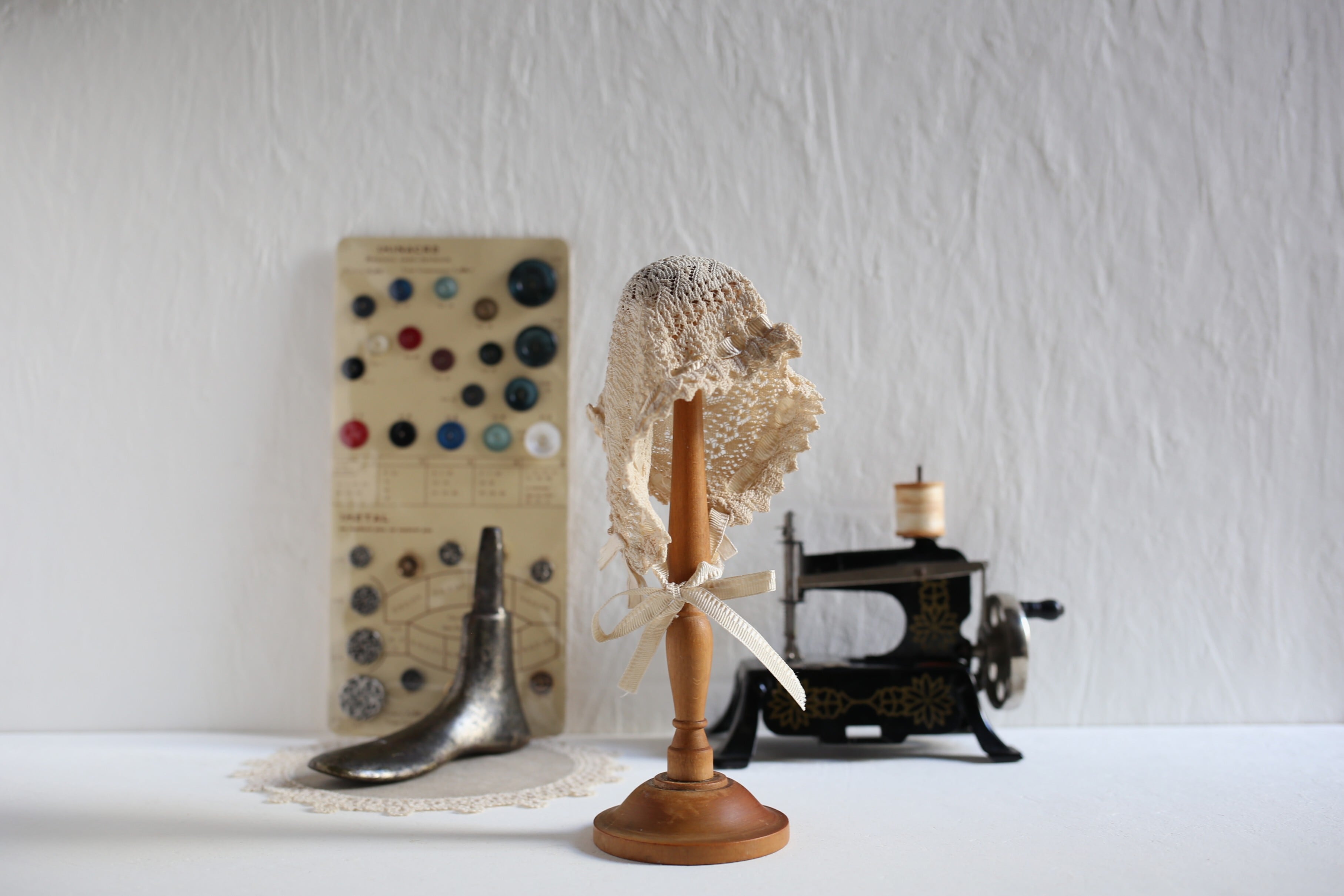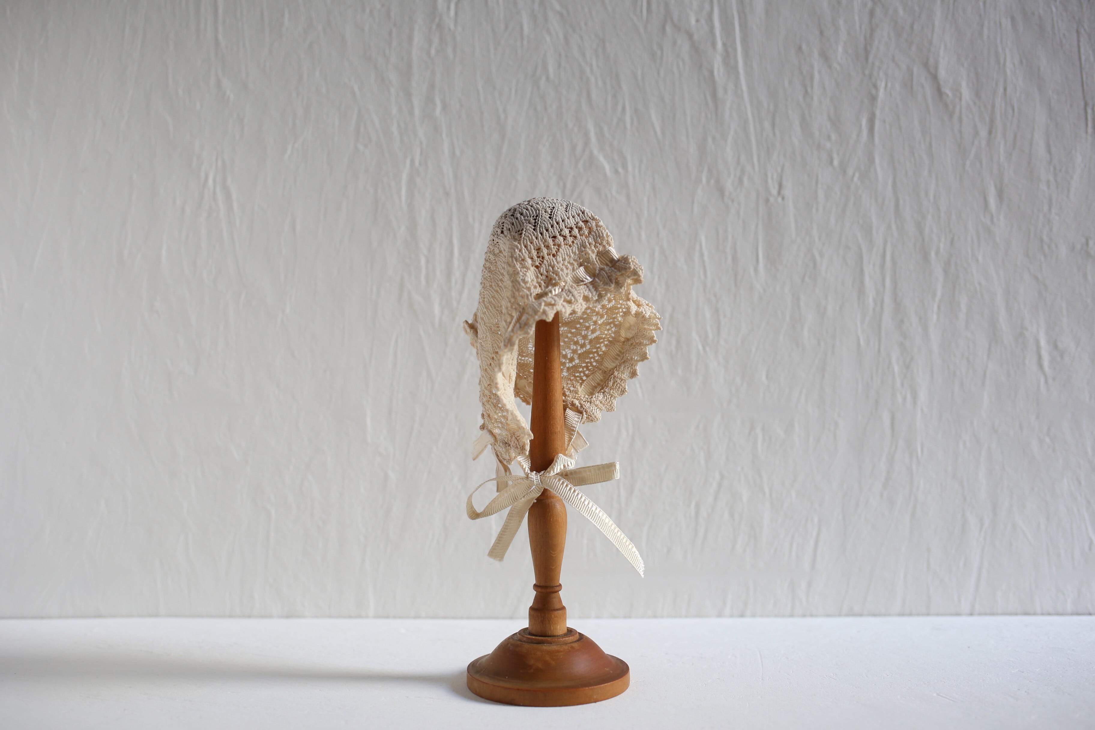 写真はドール(ベビー用)ボネを掛けていますが、適度なサイズでいろいろとディスプレイに活用して頂けそうです。