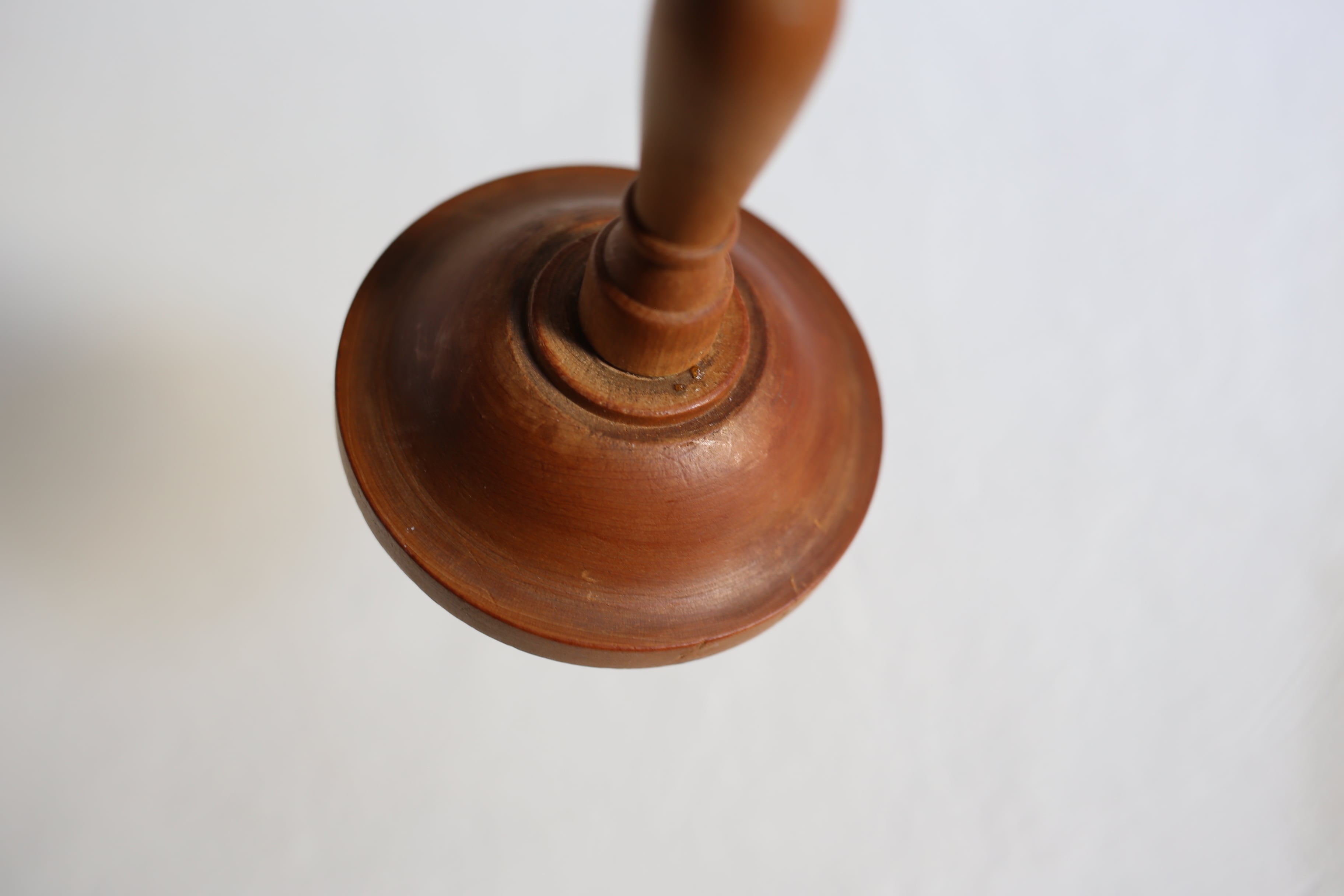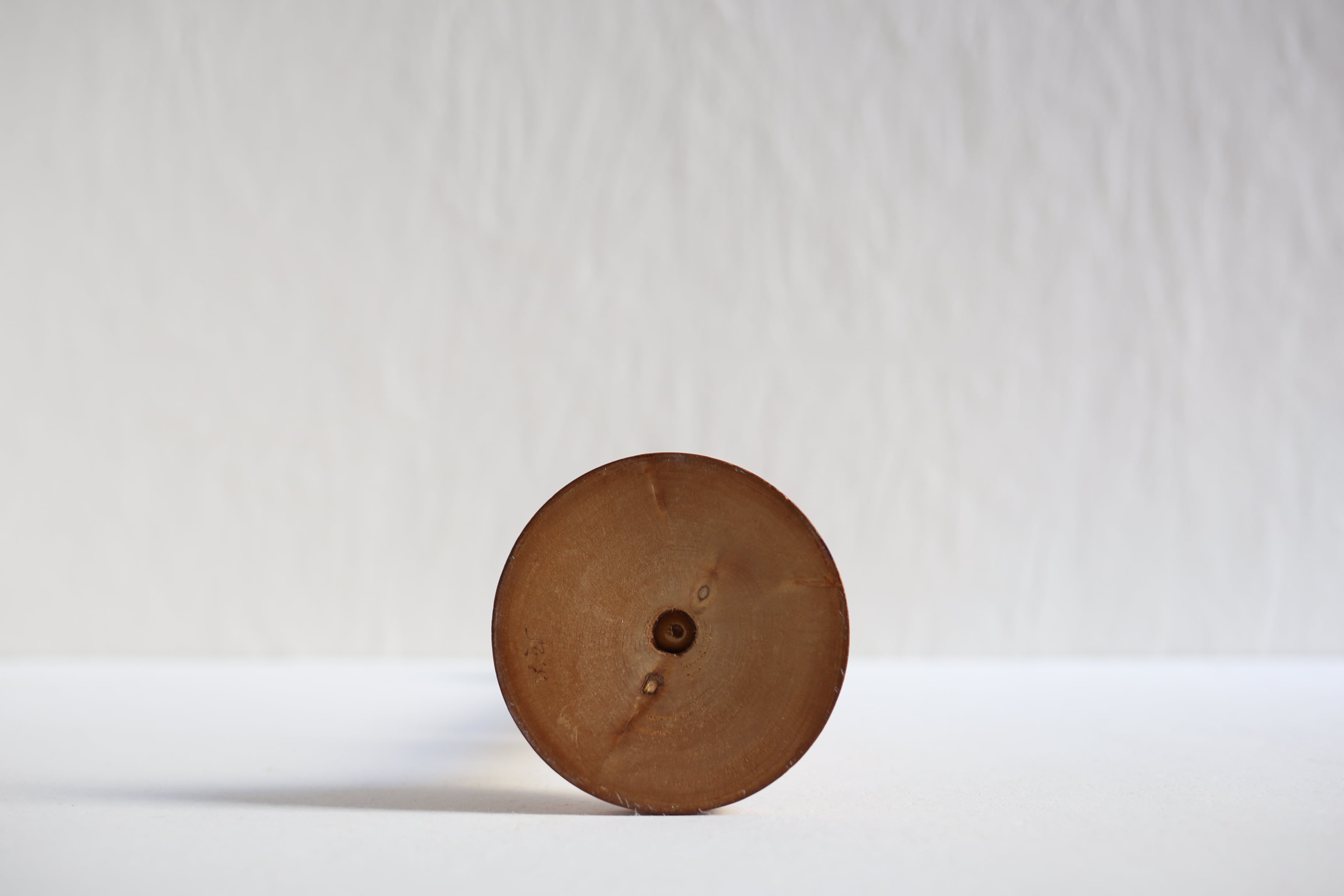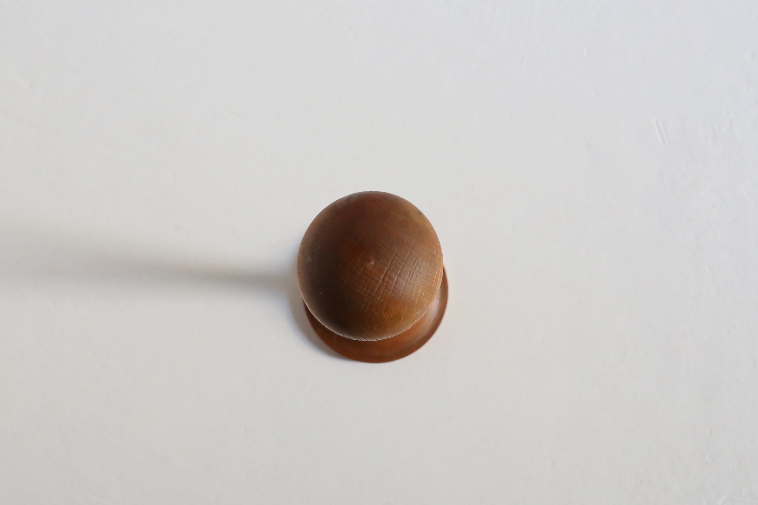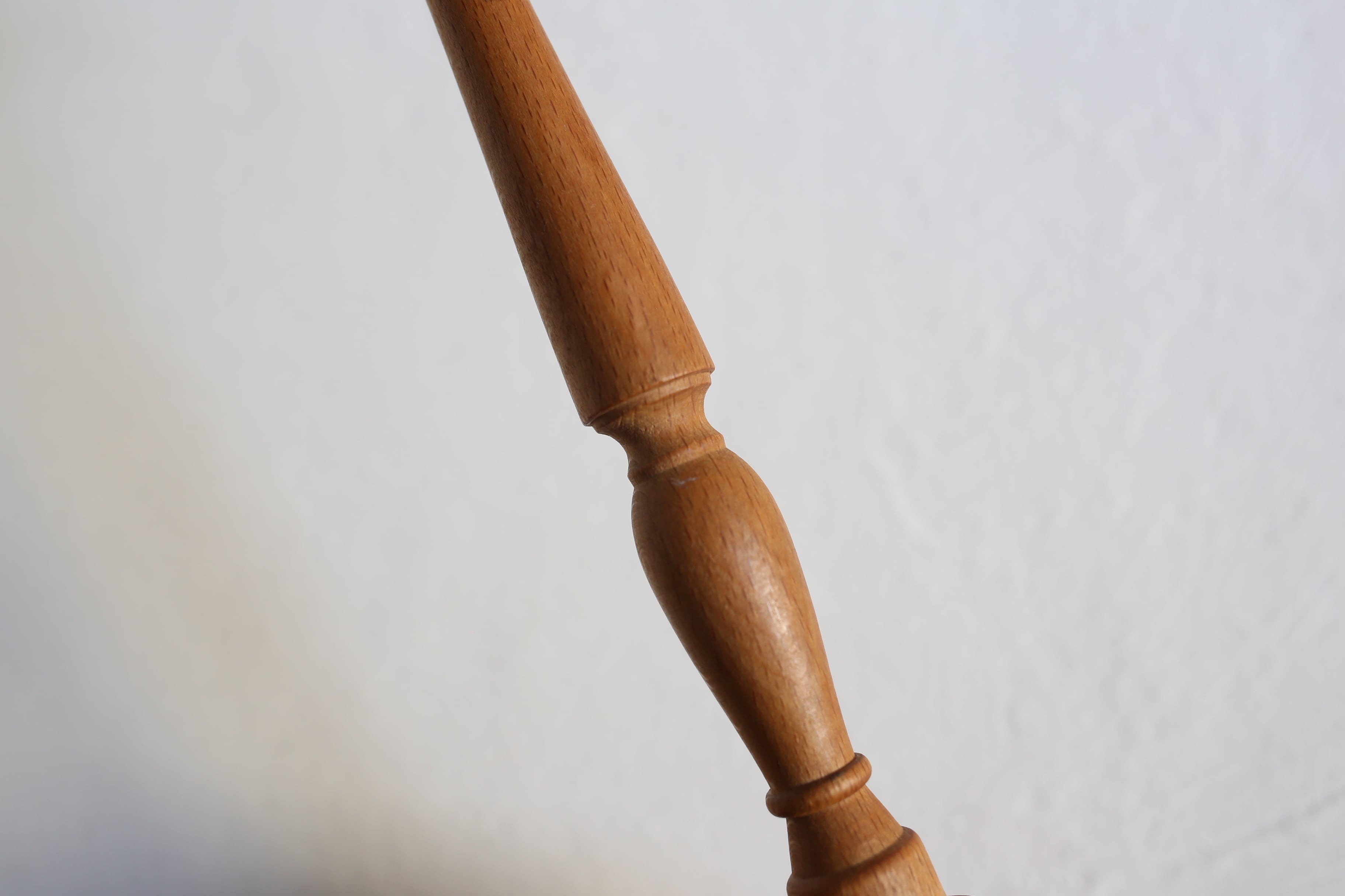 帽子を掛ける先端の丸い部分に濃く見える線が2本ありますが、短い方にもともとの木目に沿ってできたものと思われる浅い亀裂が入っています。
