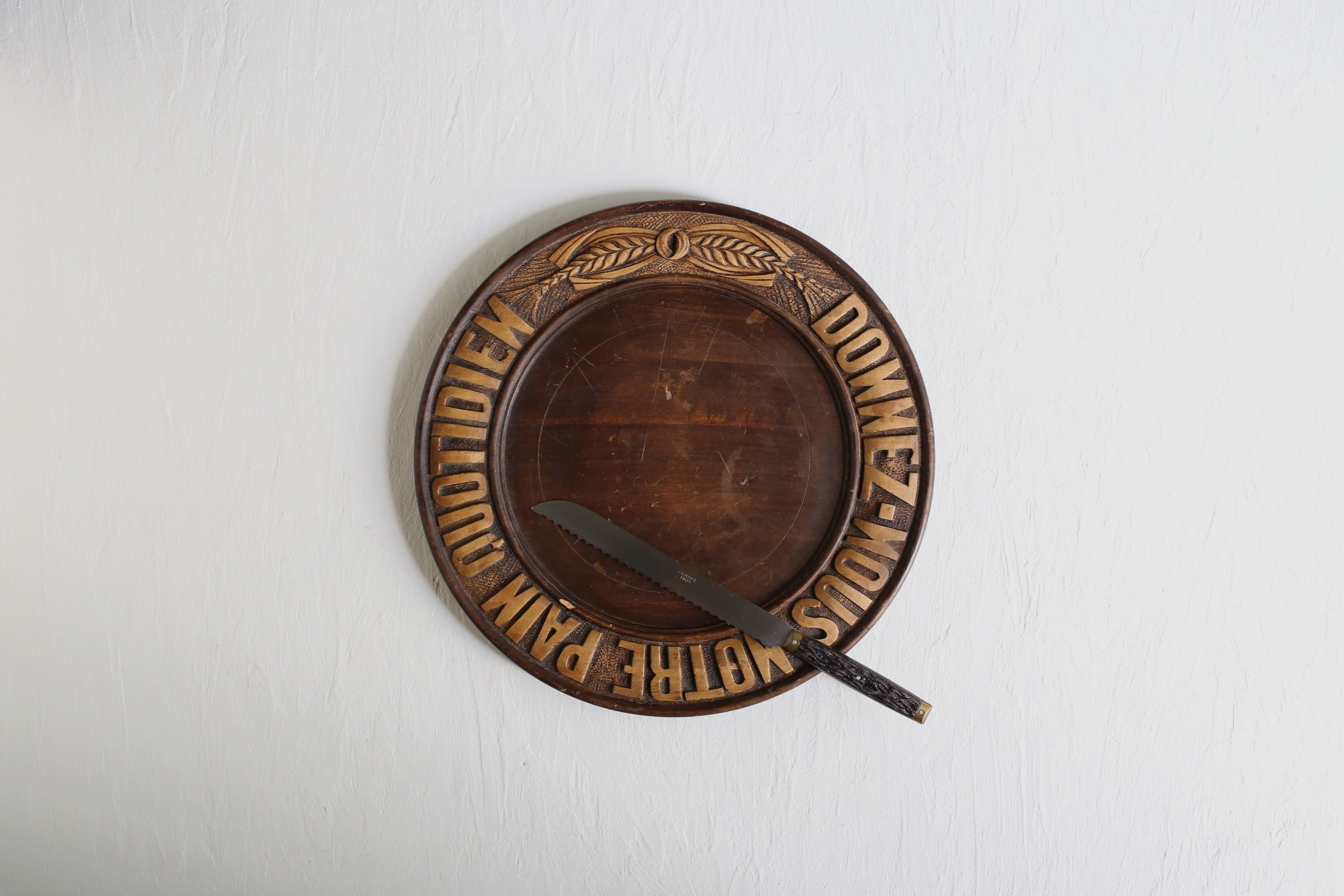 フランス アンティーク ヴィンテージ 木製 ブレッドボード カッティングボード 直径約32.5㎝ N-06608
