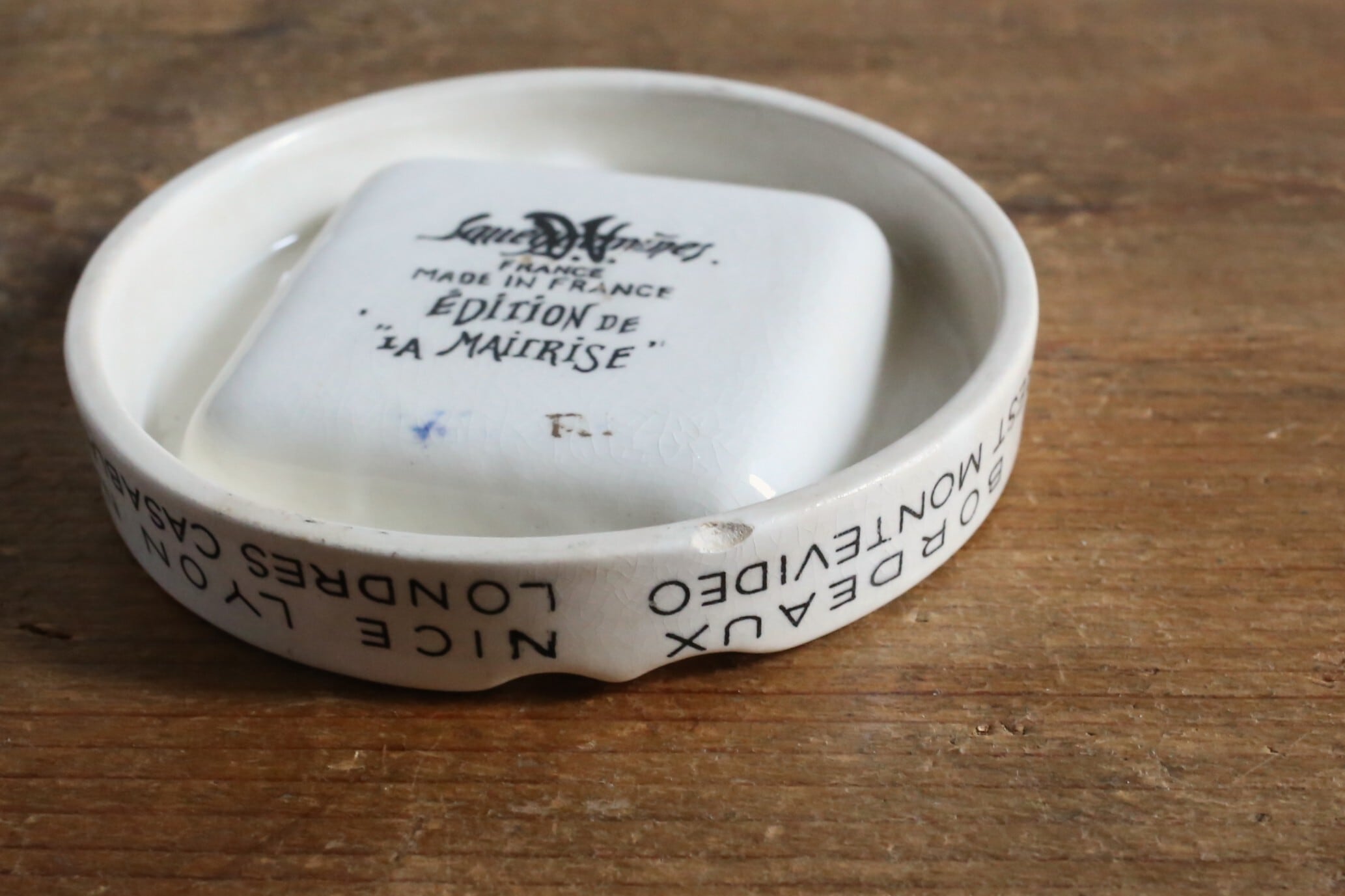 フランス アンティーク ヴィンテージ SARREGUEMINES『Galeries Lafayette』 灰皿 円型 N-05280