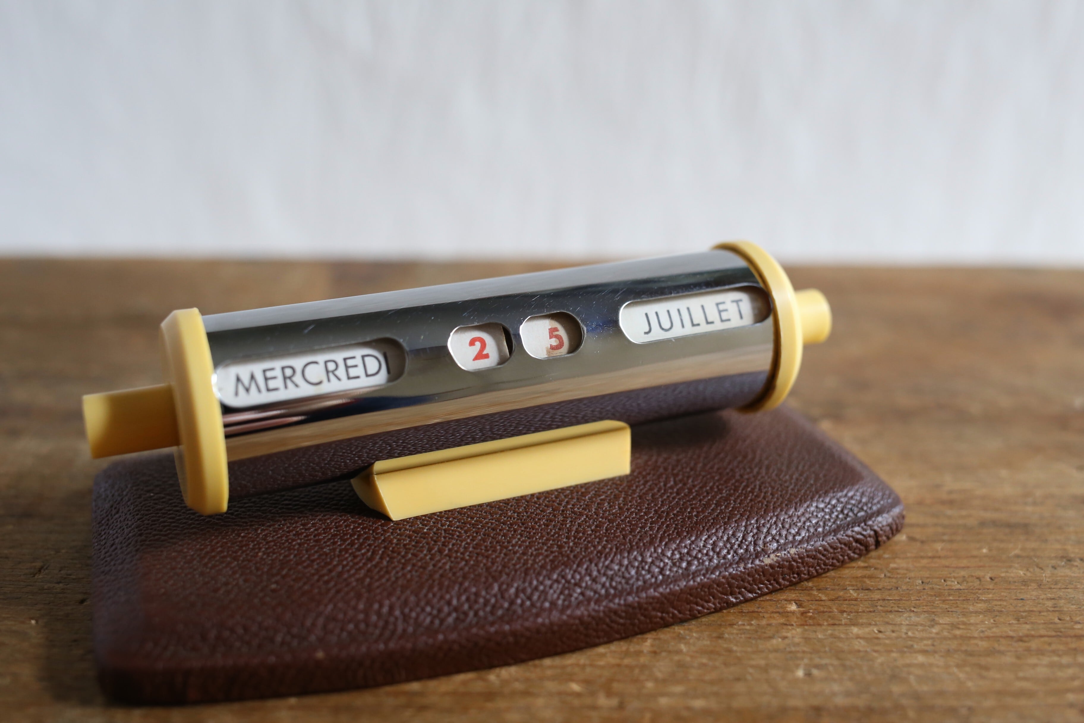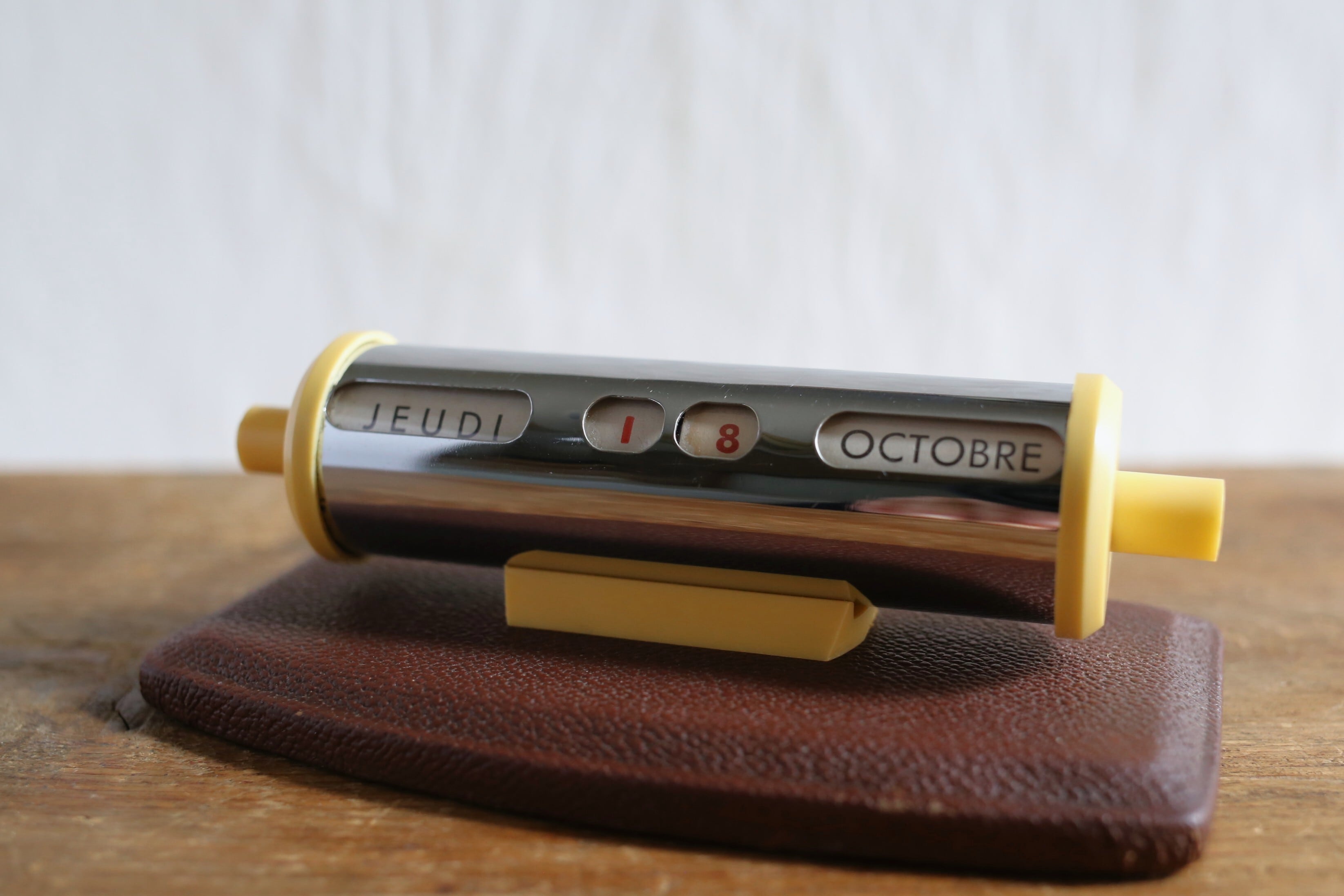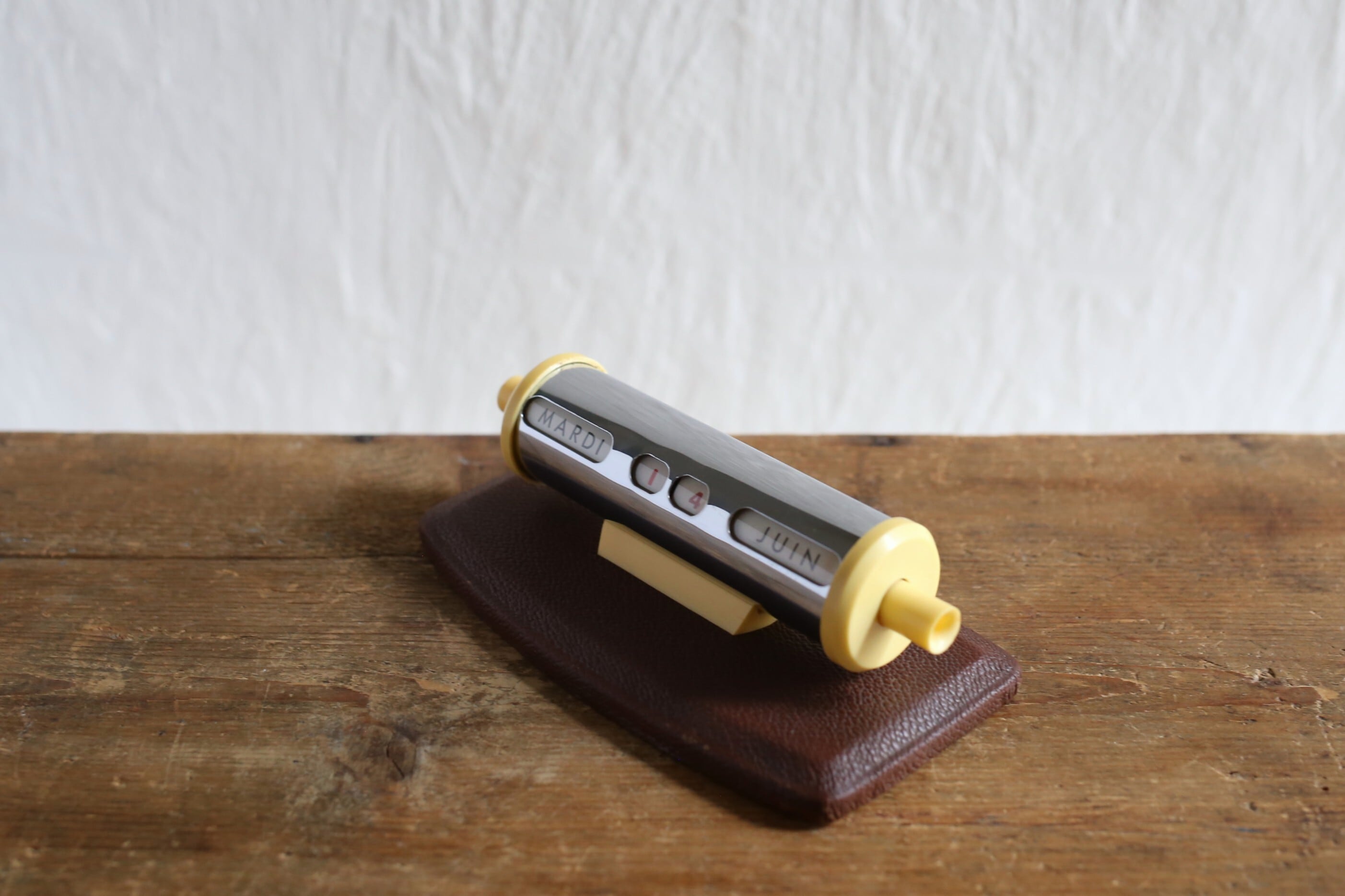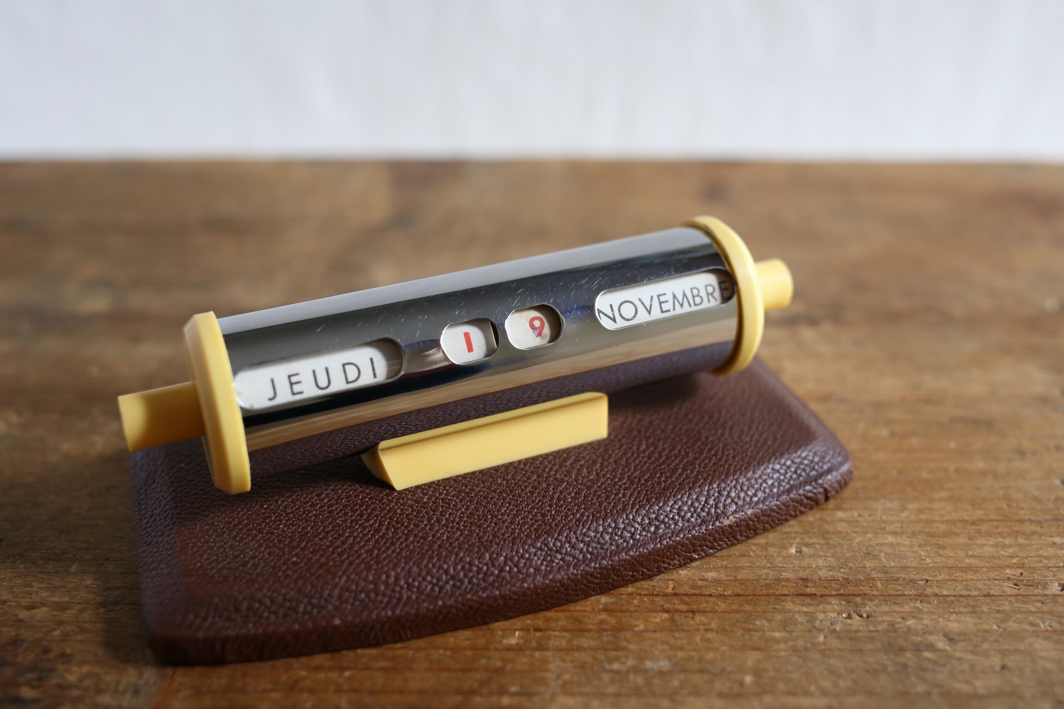 フランス アンティーク ヴィンテージ 万年卓上カレンダー クローム×ブラウン N-06480
