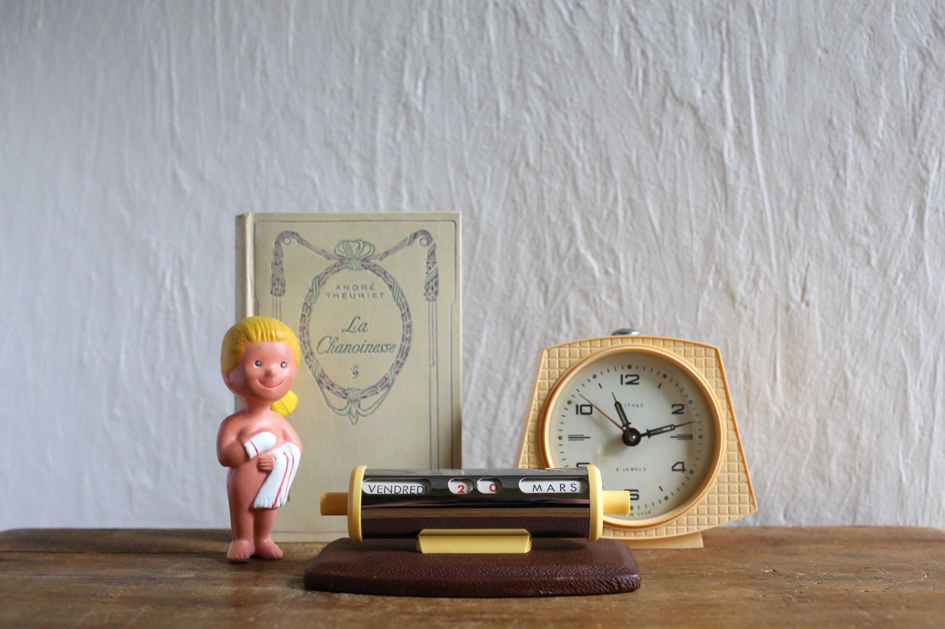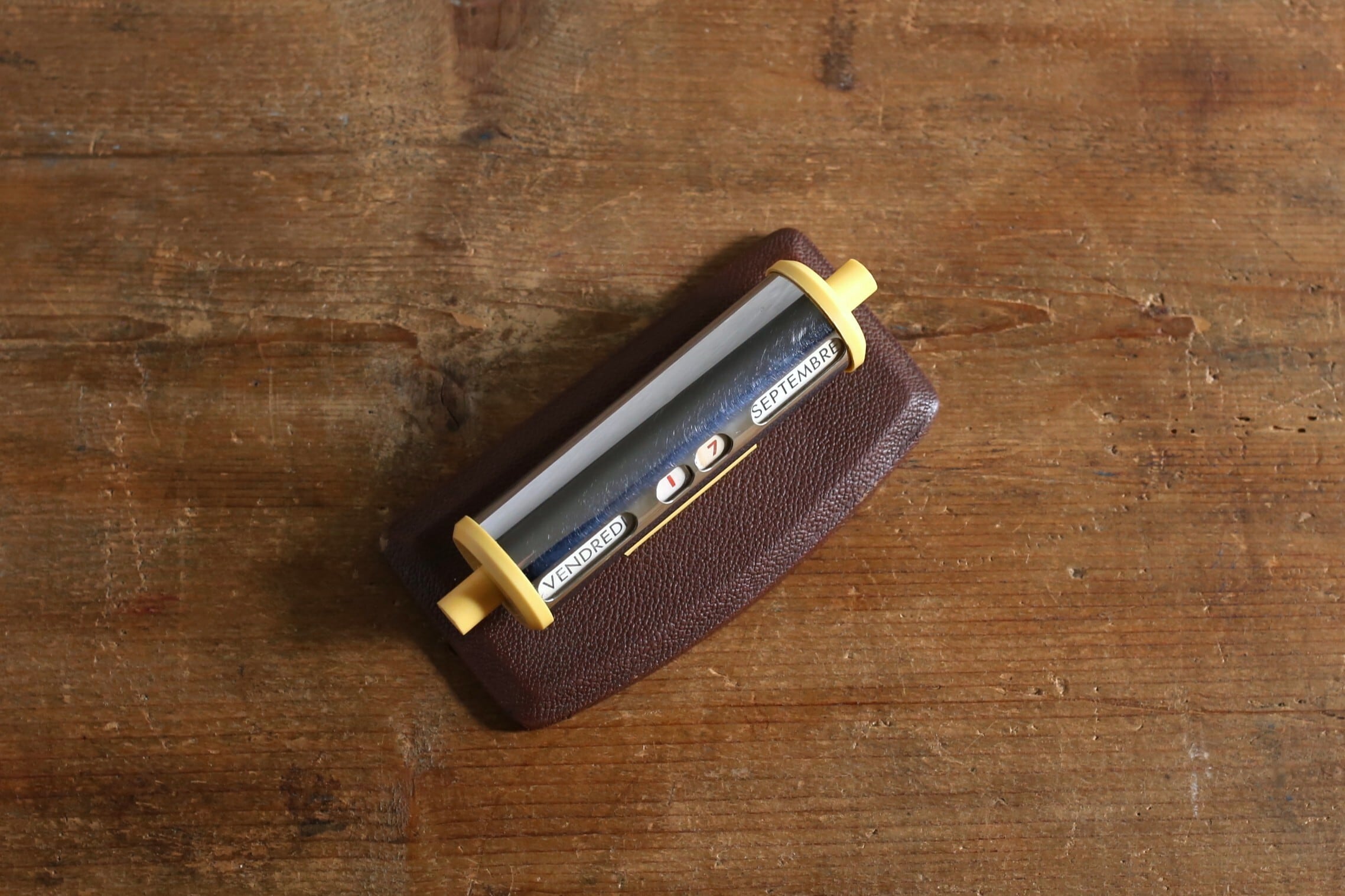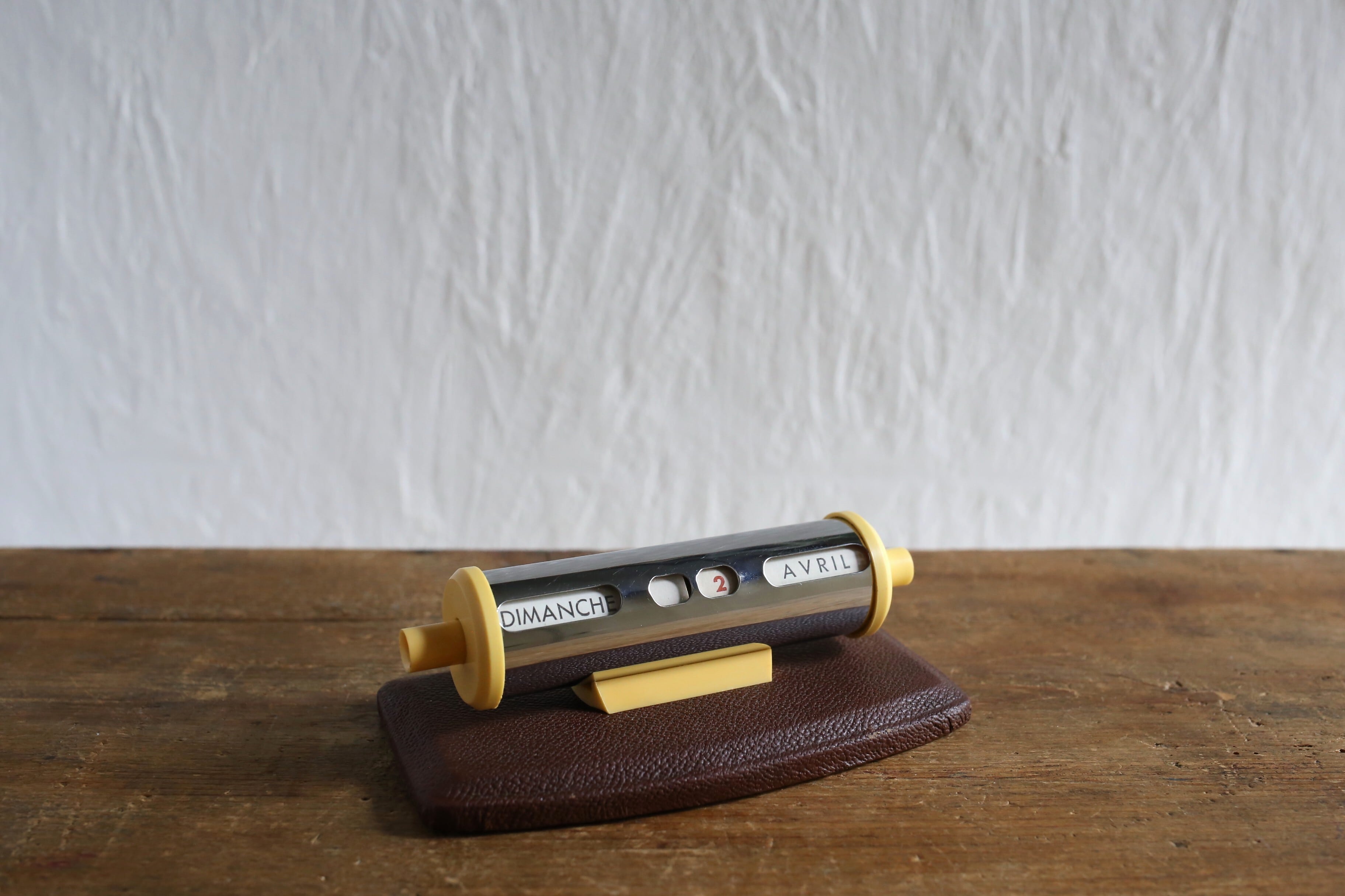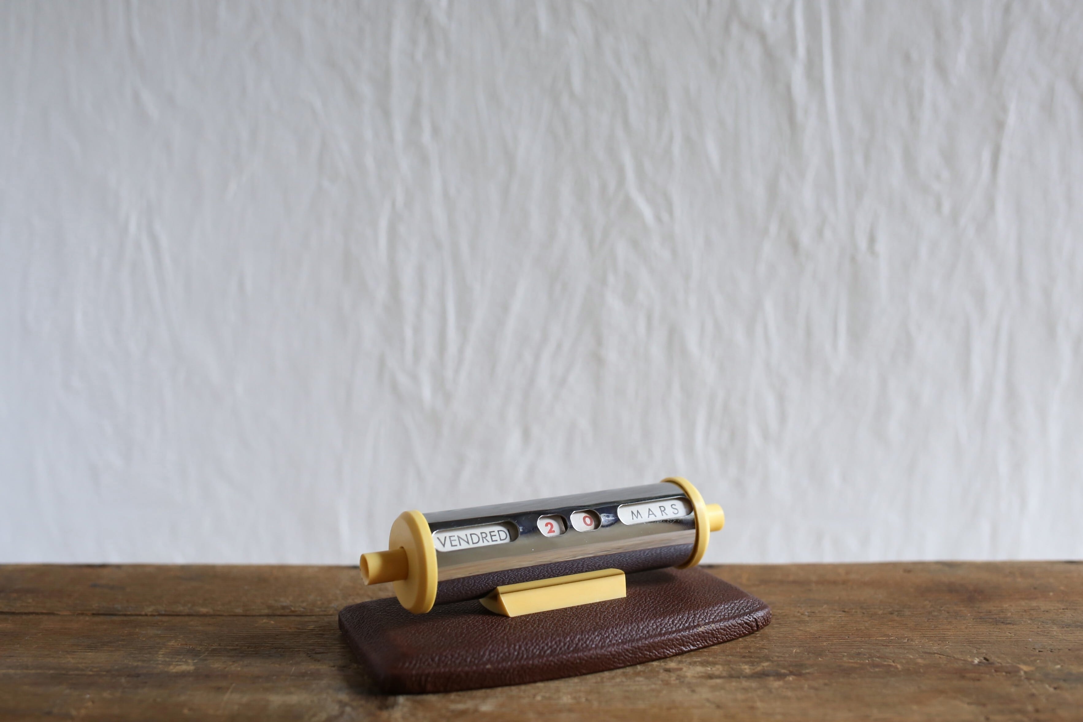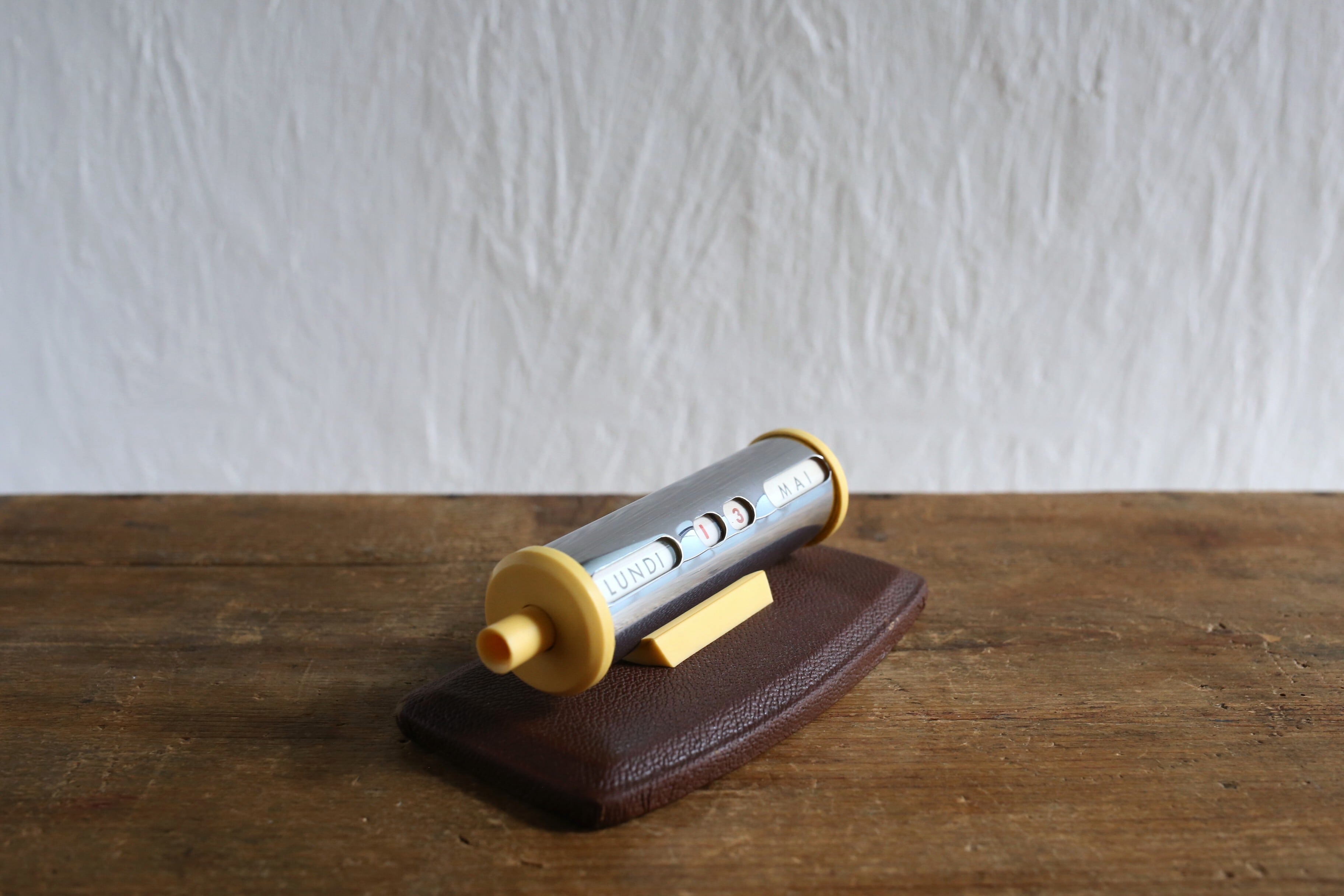 フランス アンティーク ヴィンテージ 万年卓上カレンダー クローム×ブラウン N-06480
