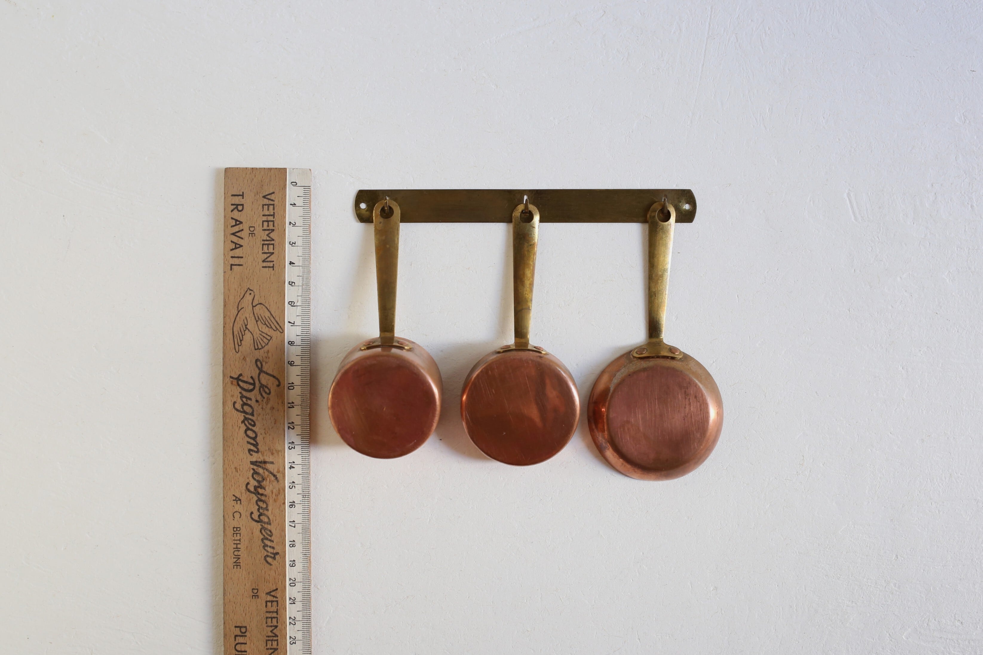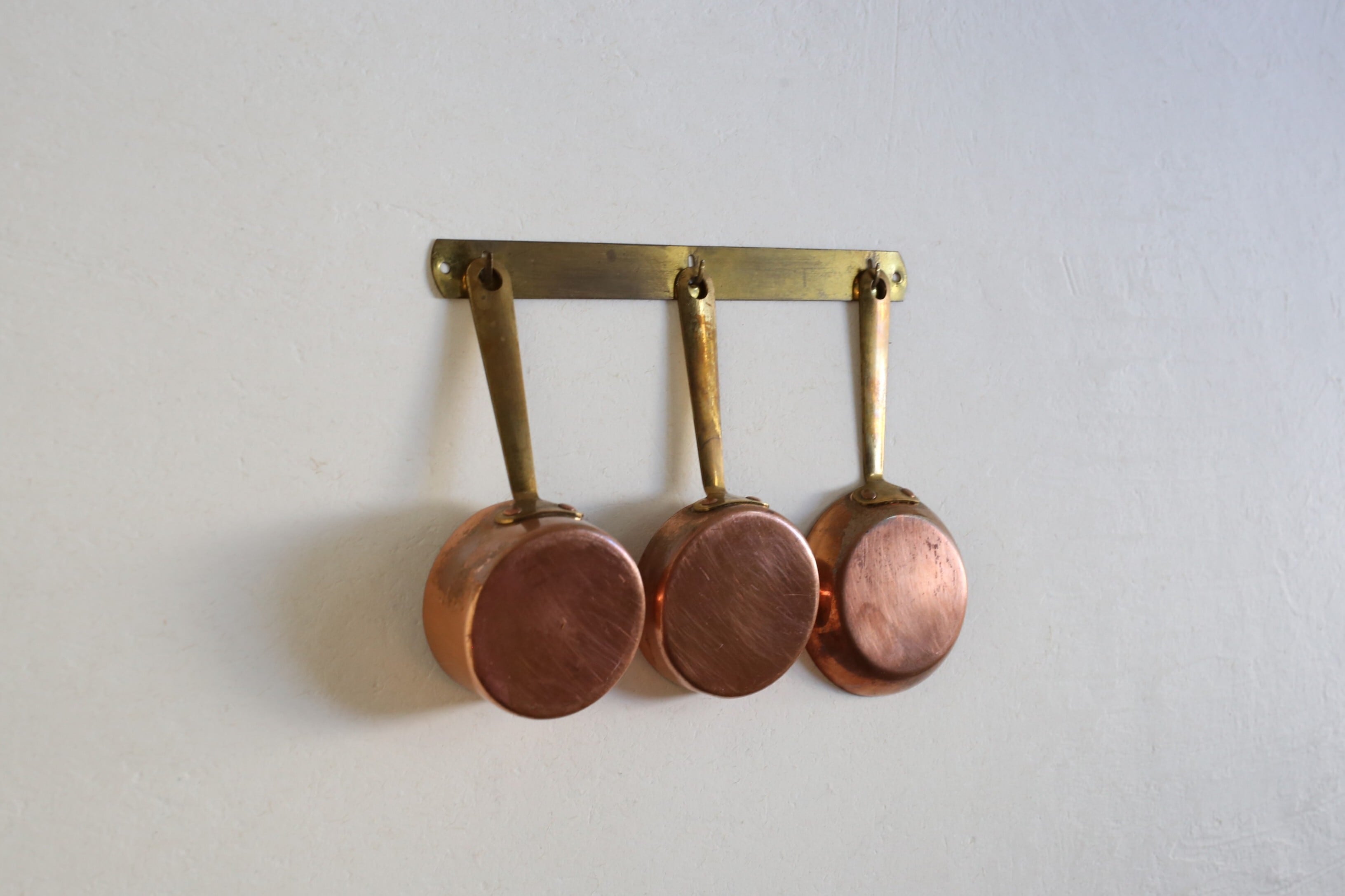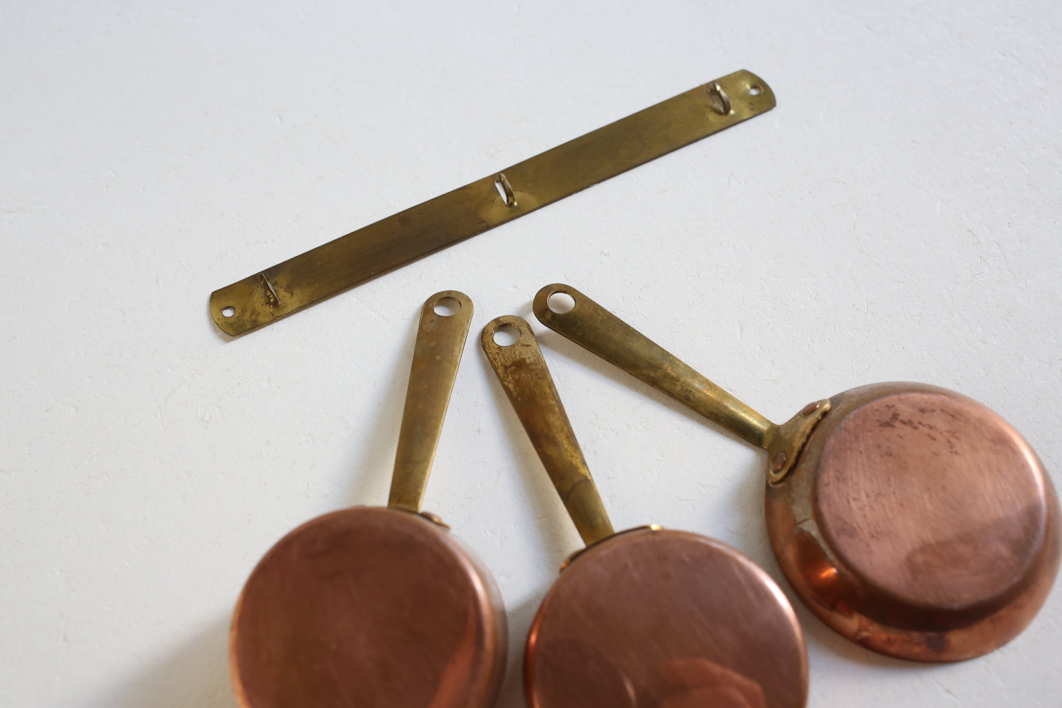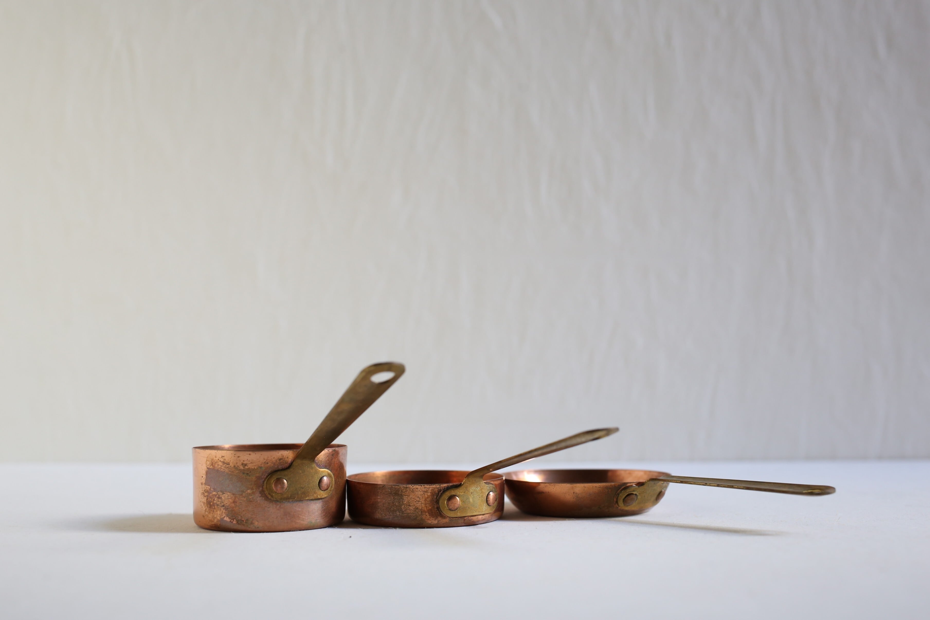 フランス アンティーク ヴィンテージ dinette ミニチュア コッパーパン 銅鍋 真鍮フック付き3点セット N-05783
