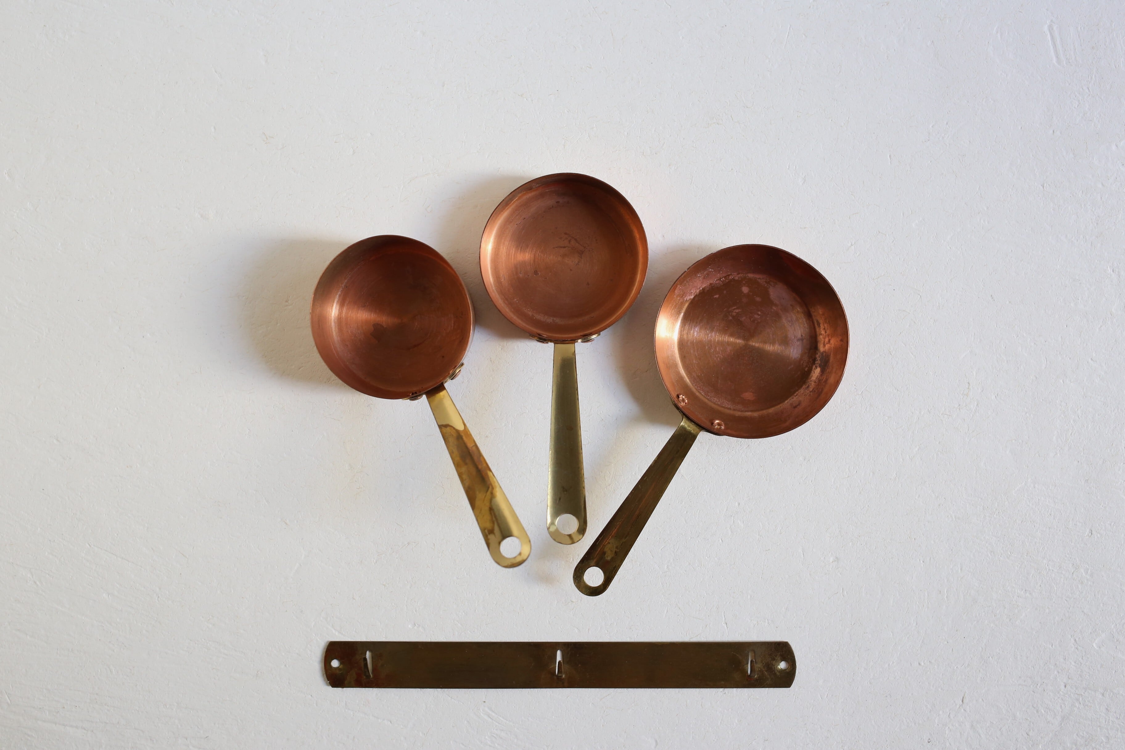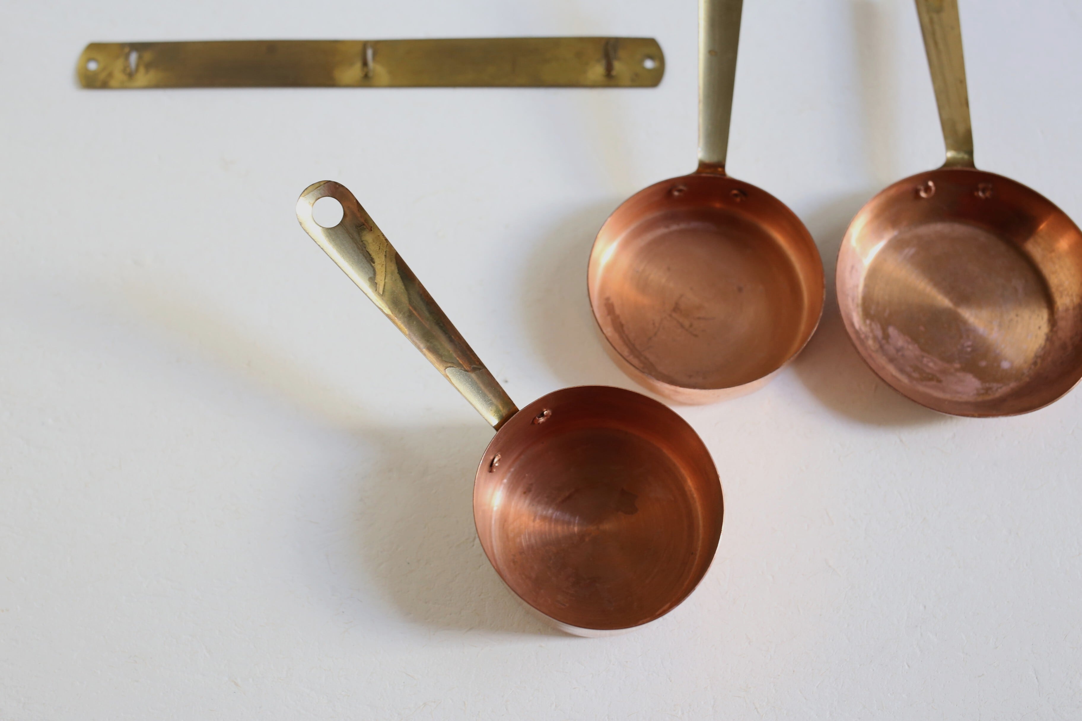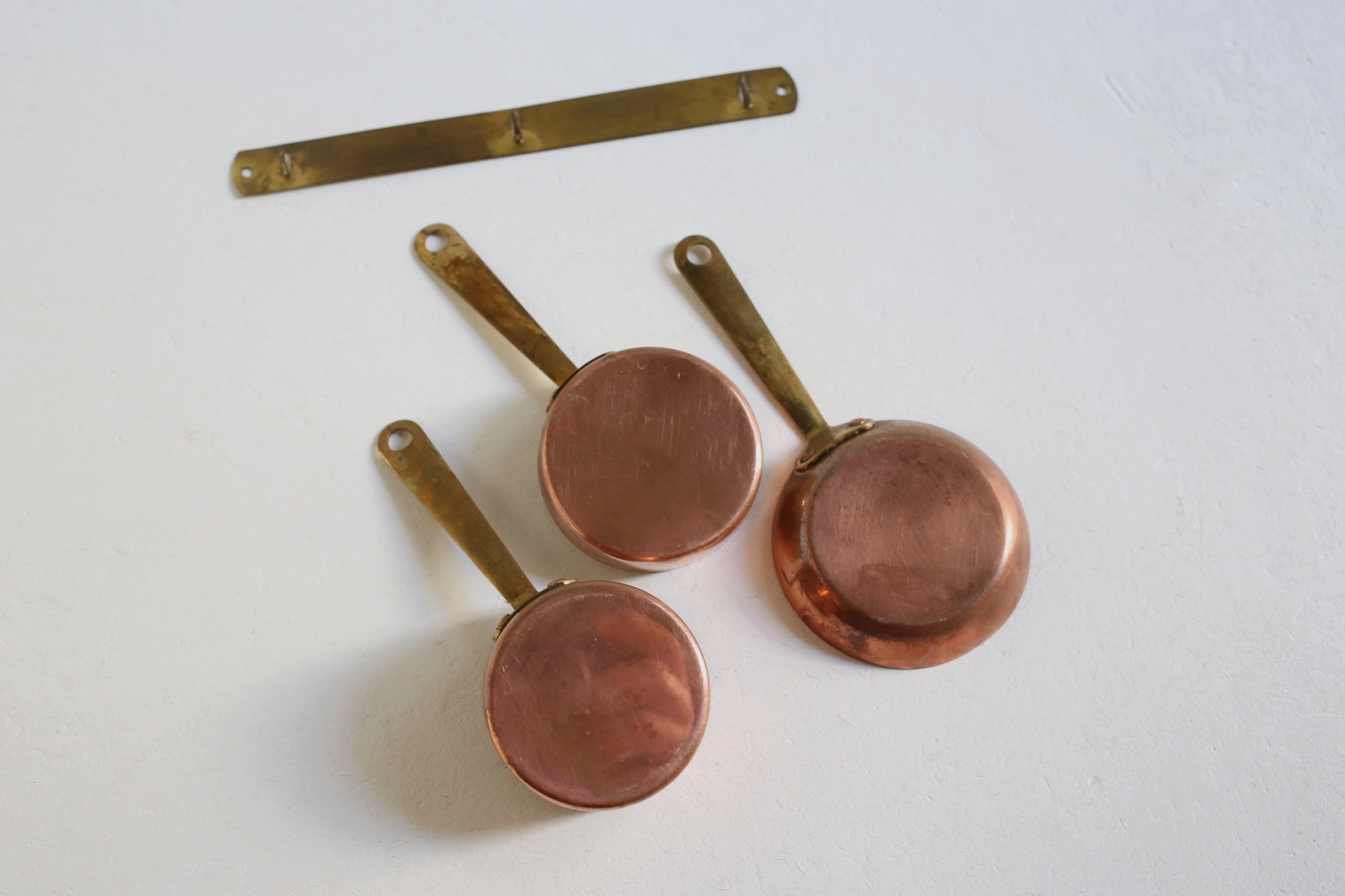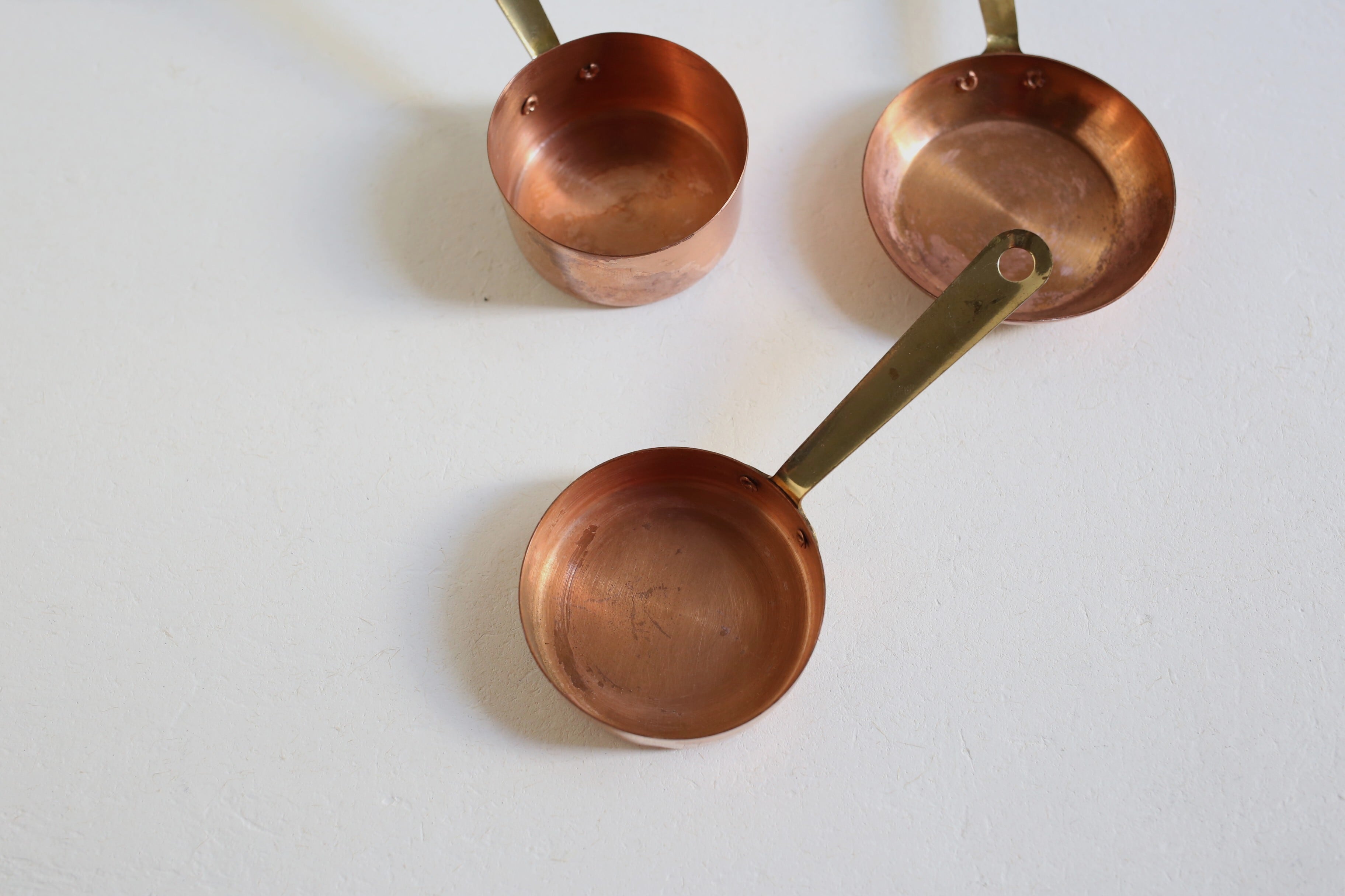 フランス アンティーク ヴィンテージ dinette ミニチュア コッパーパン 銅鍋 真鍮フック付き3点セット N-05783