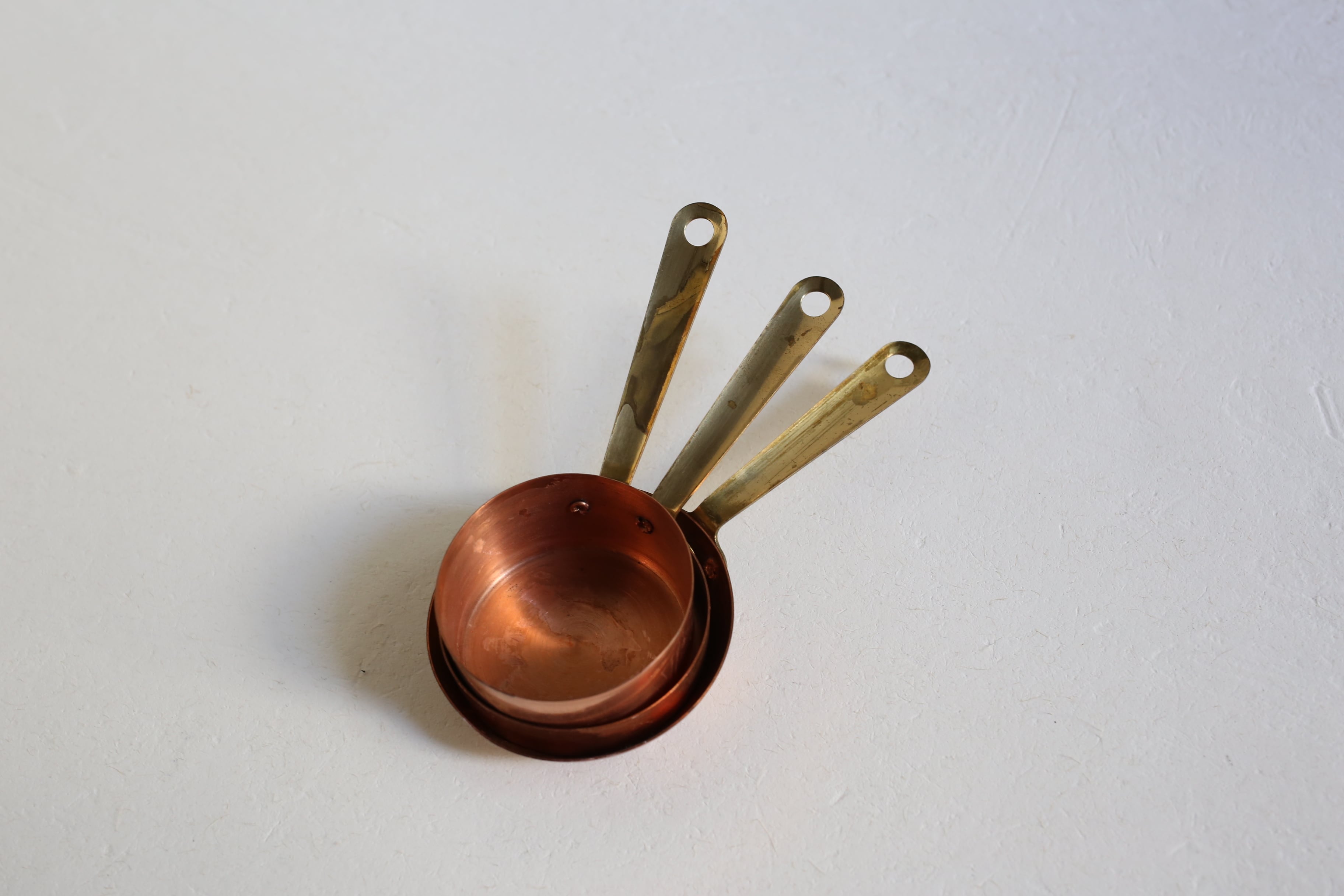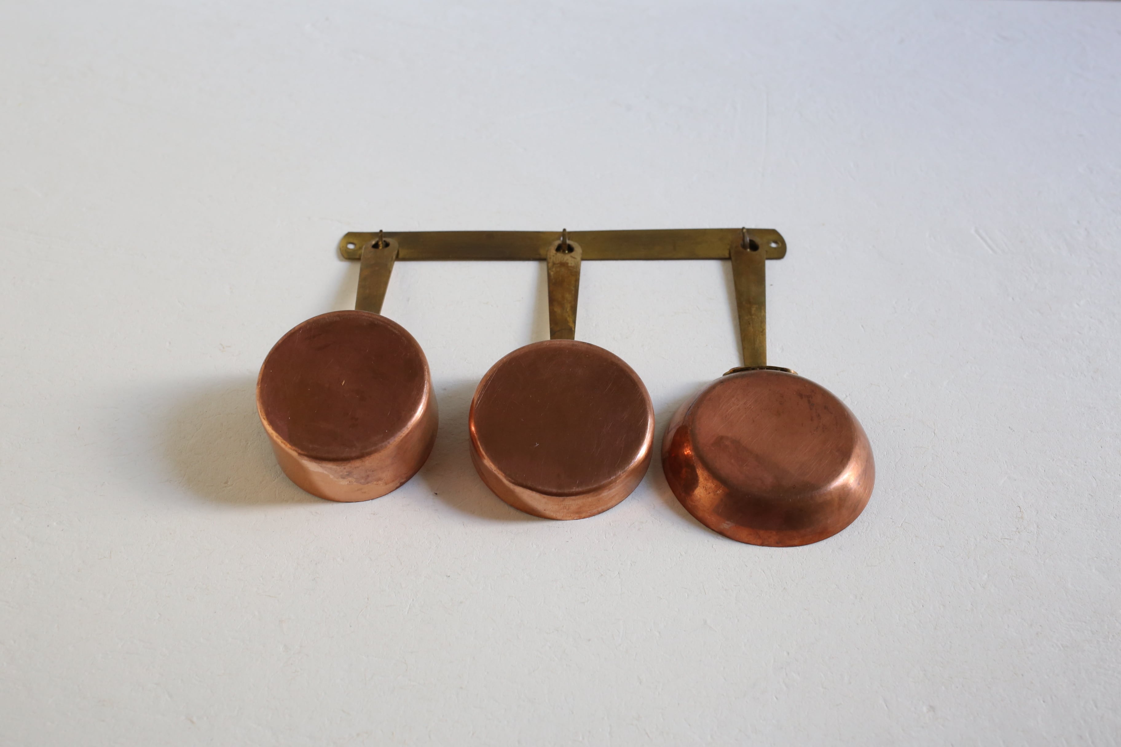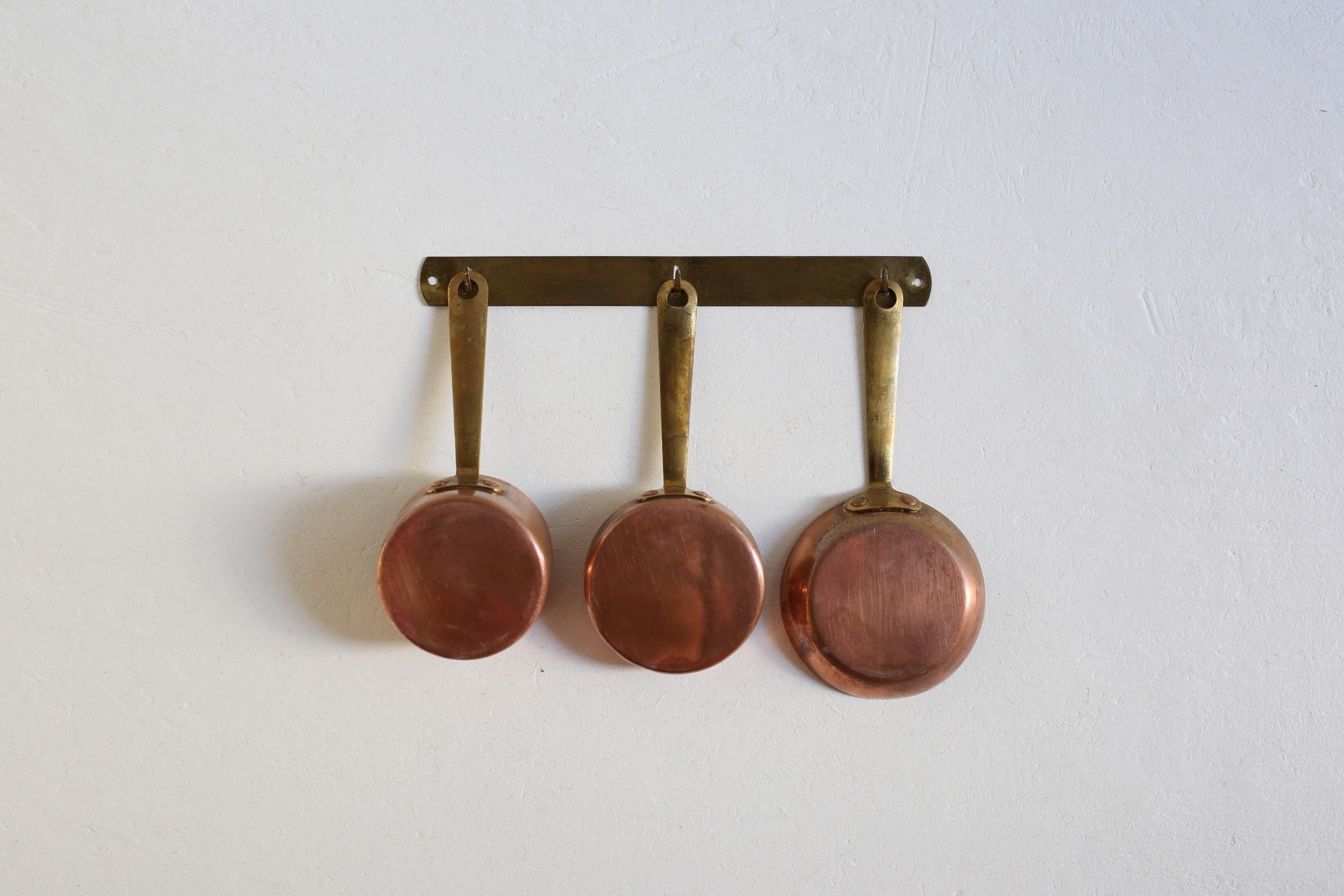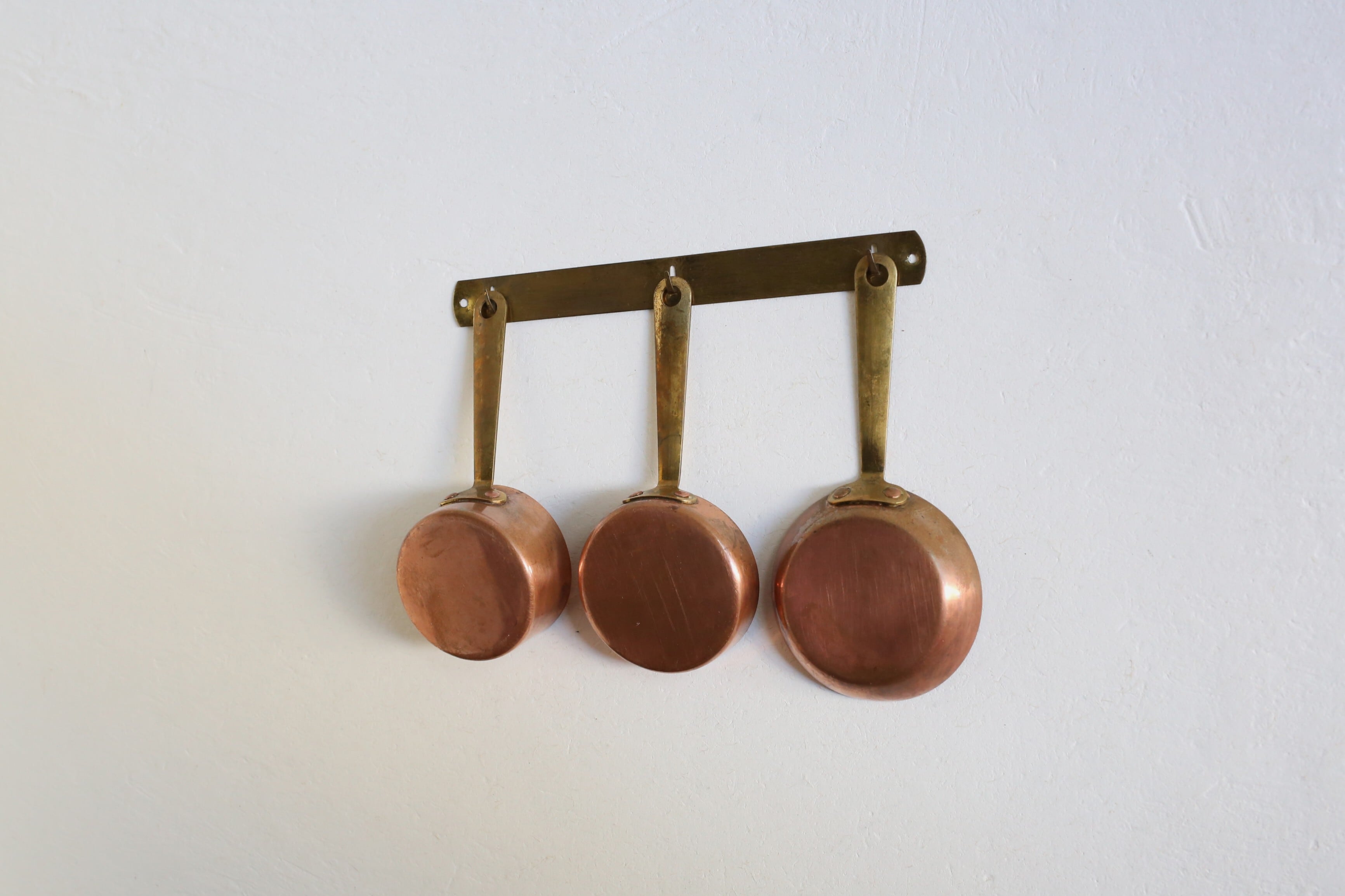 フランス アンティーク ヴィンテージ dinette ミニチュア コッパーパン 銅鍋 真鍮フック付き3点セット N-05783