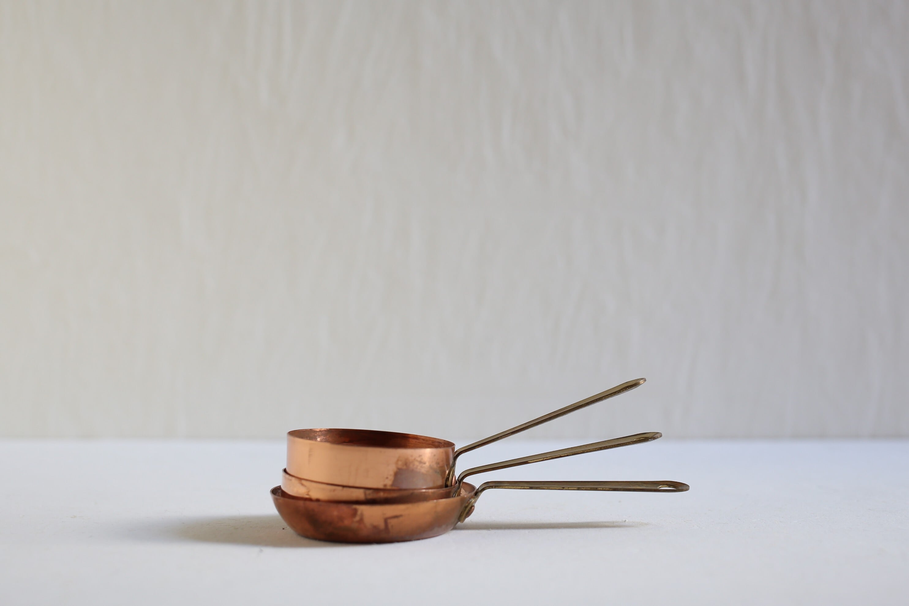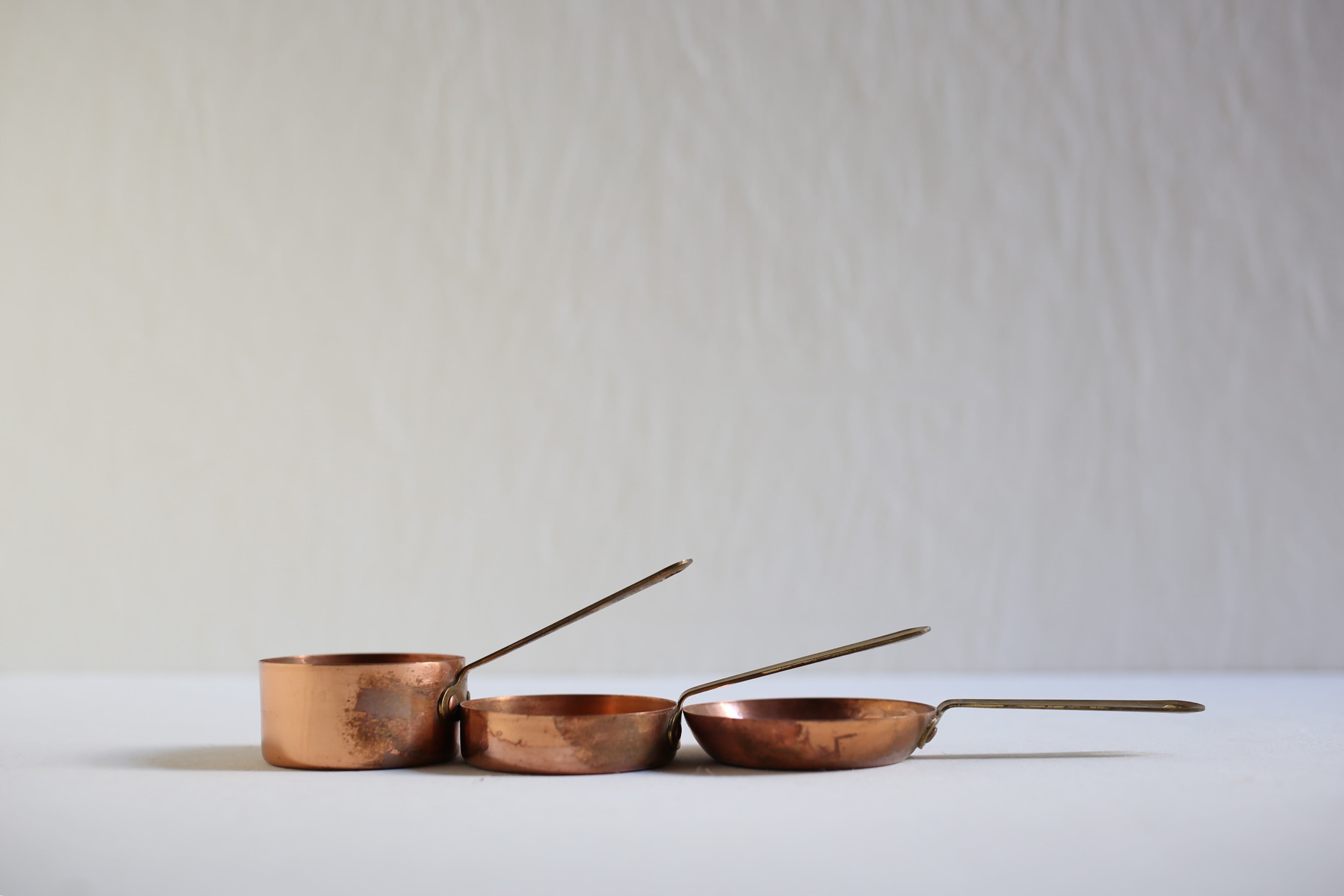 パリの蚤の市で見つけたdinetteのコッパーパン3点セットです。