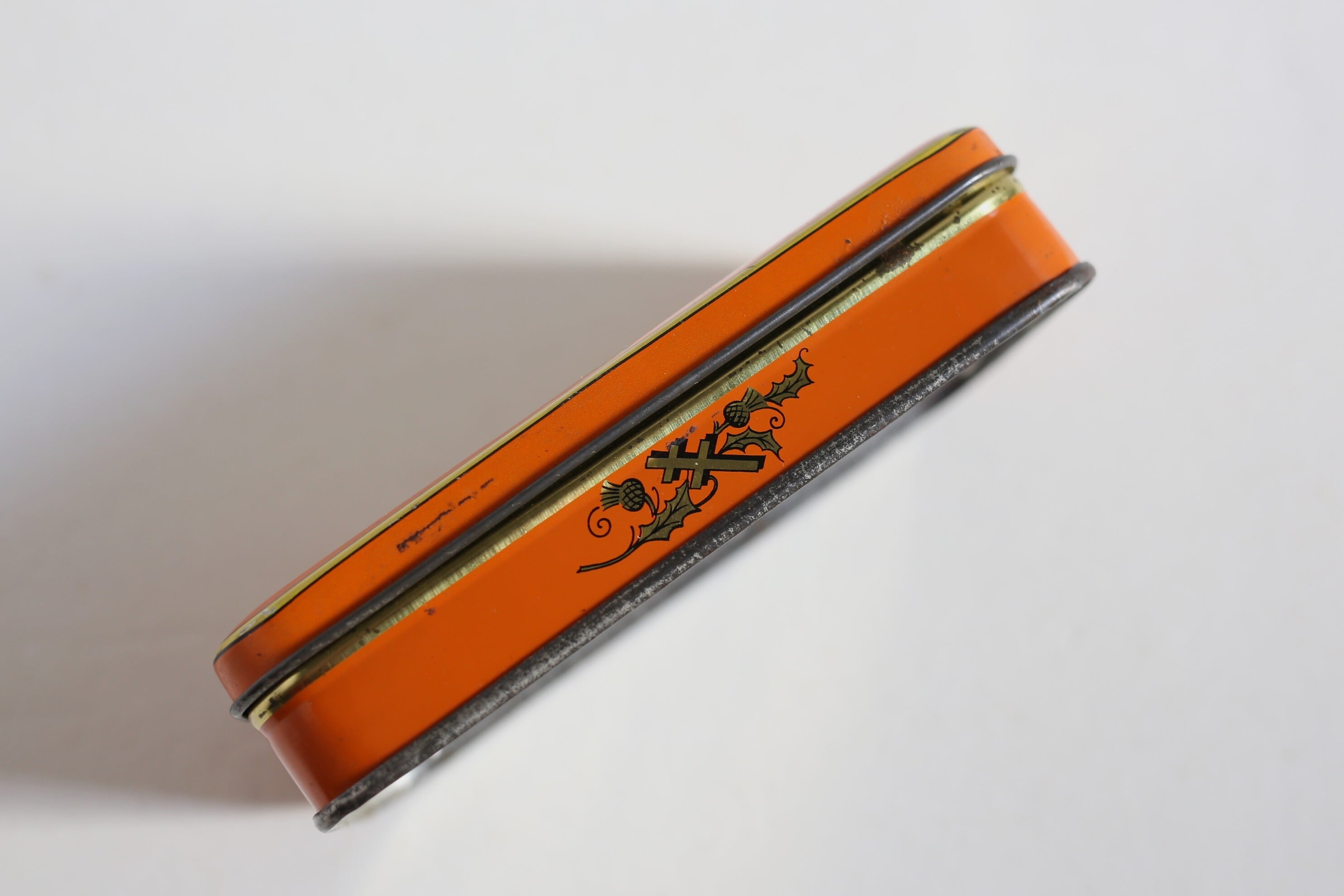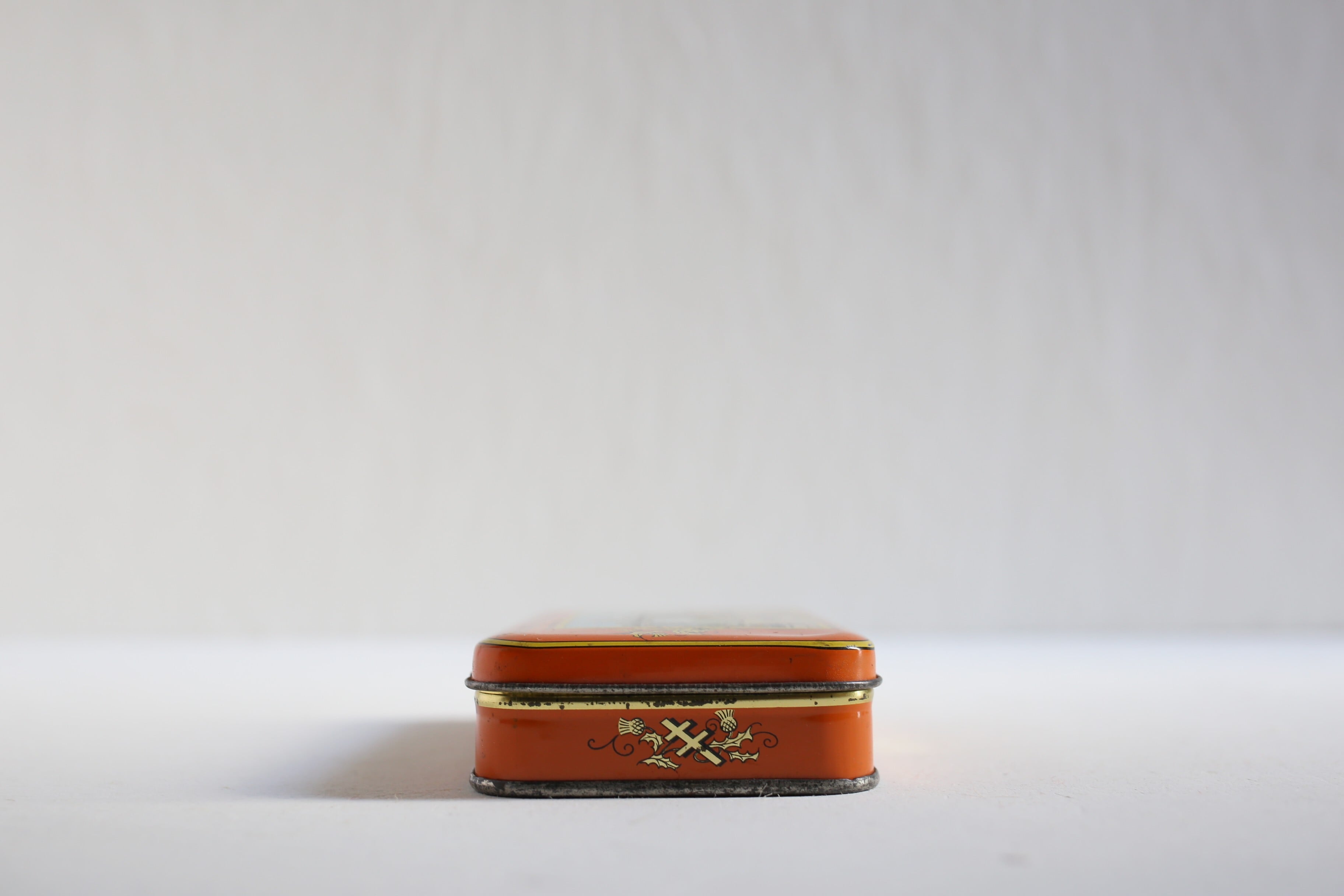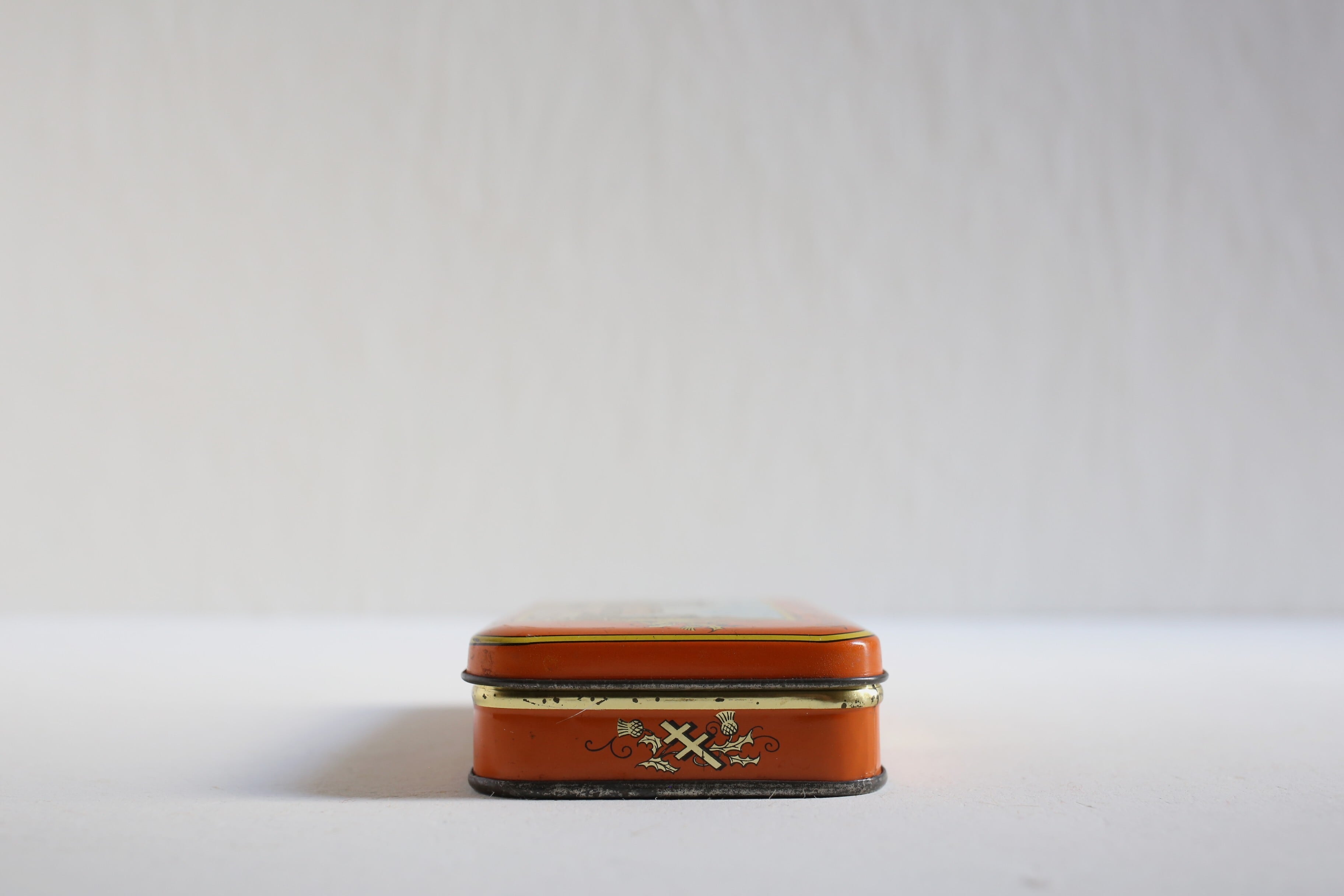 クスミやキズ、わずかにサビや小さなアタリはありますが、ブリキ缶ならではの趣きがあり、