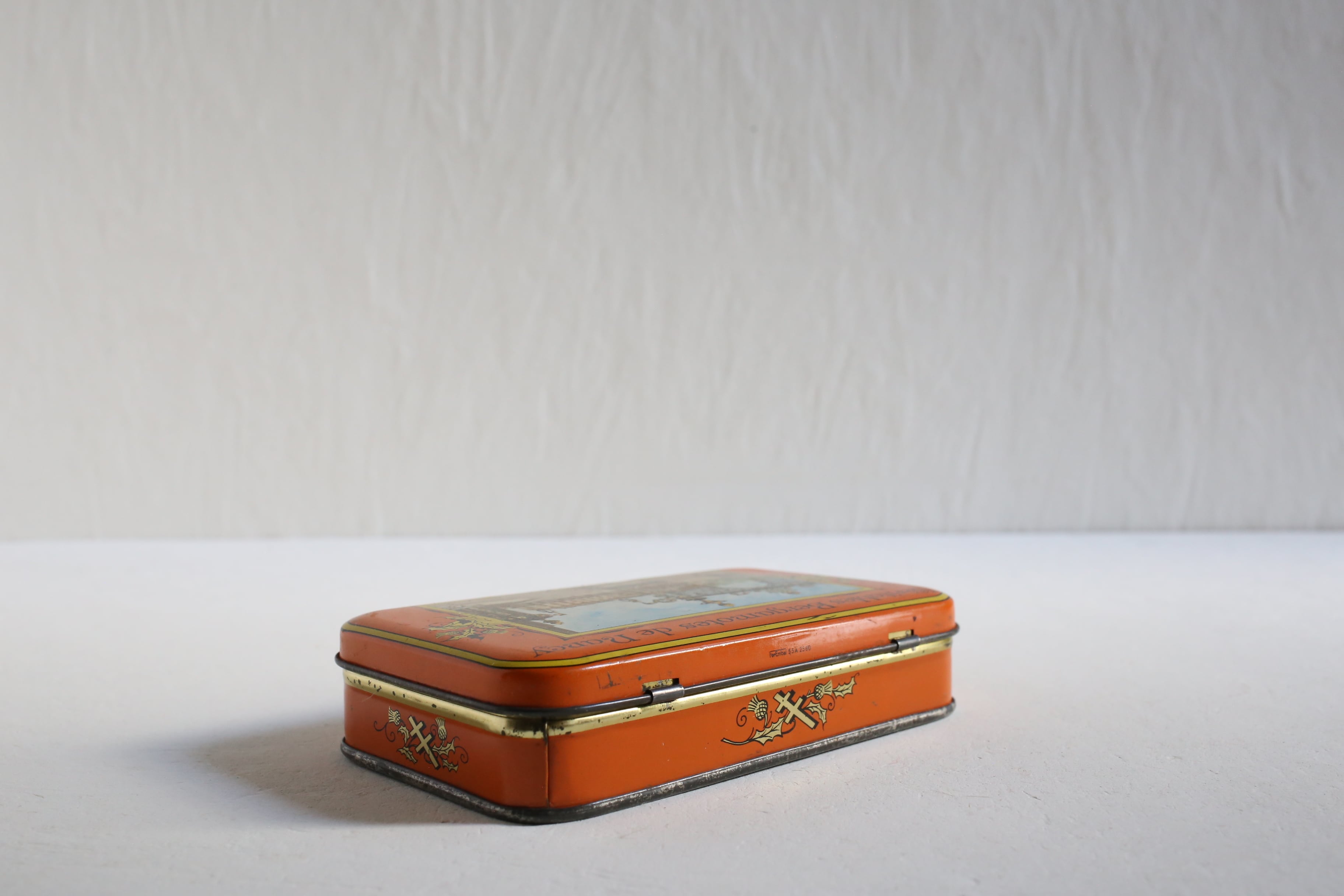フランス アンティーク ヴィンテージ BERGAMOTES DE NANCY ベルガモット飴缶 ロレーヌ十字 オレンジ N-06197