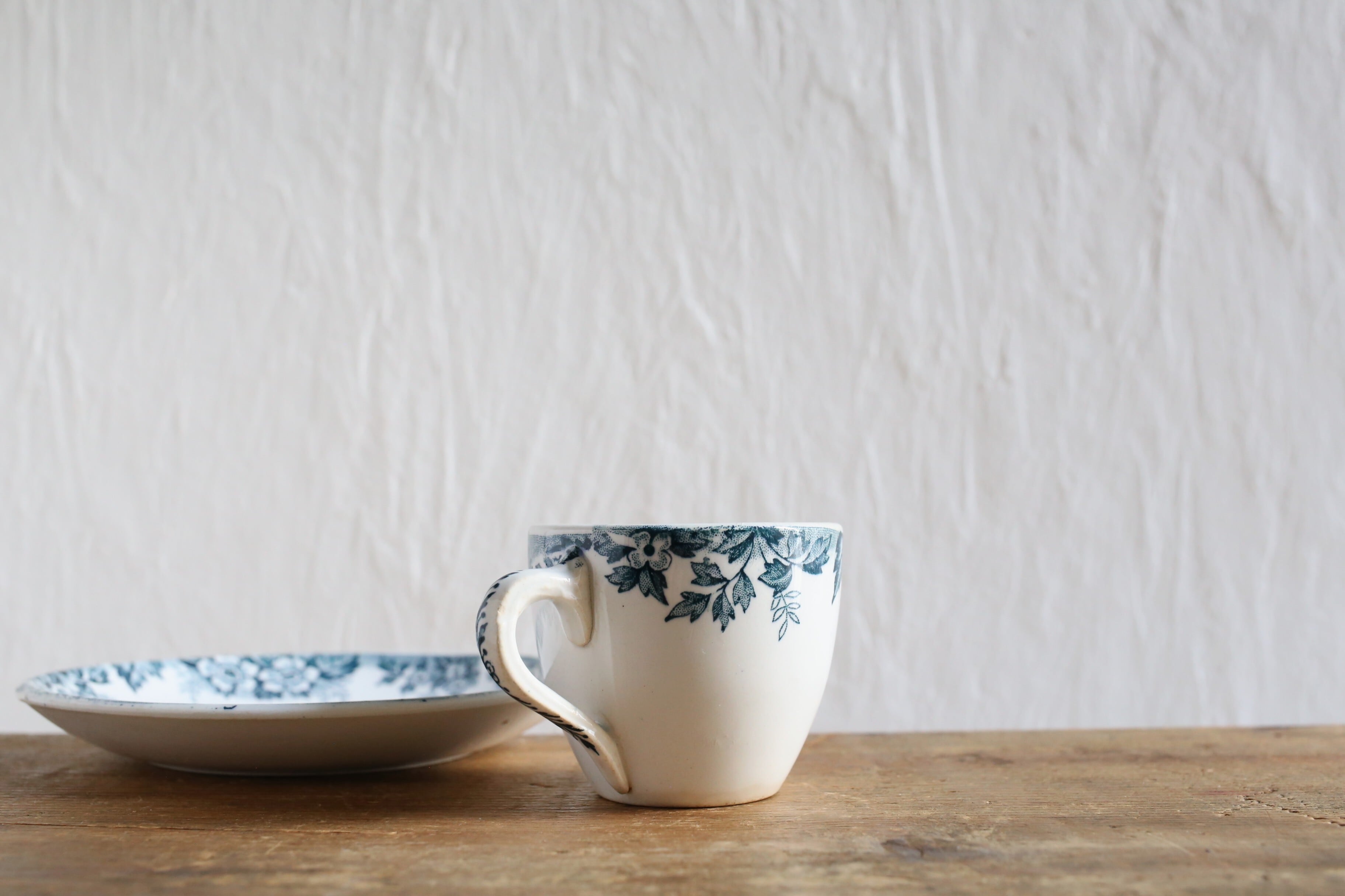 青みがかったグリーンの濃淡で描かれた花模様が人気のシリーズですが、カップ&ソーサーは見かけることが少なく初めてのご紹介です。