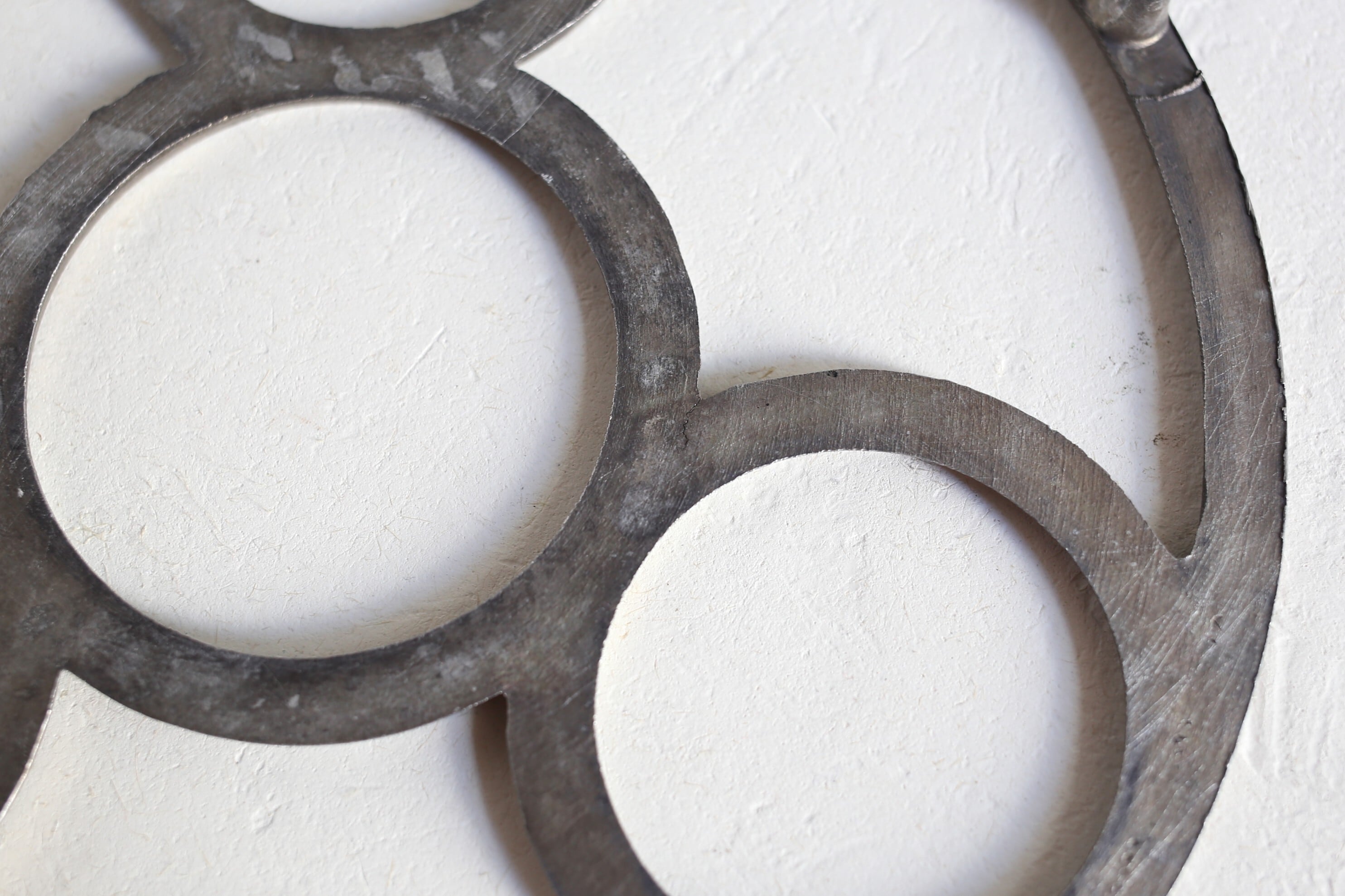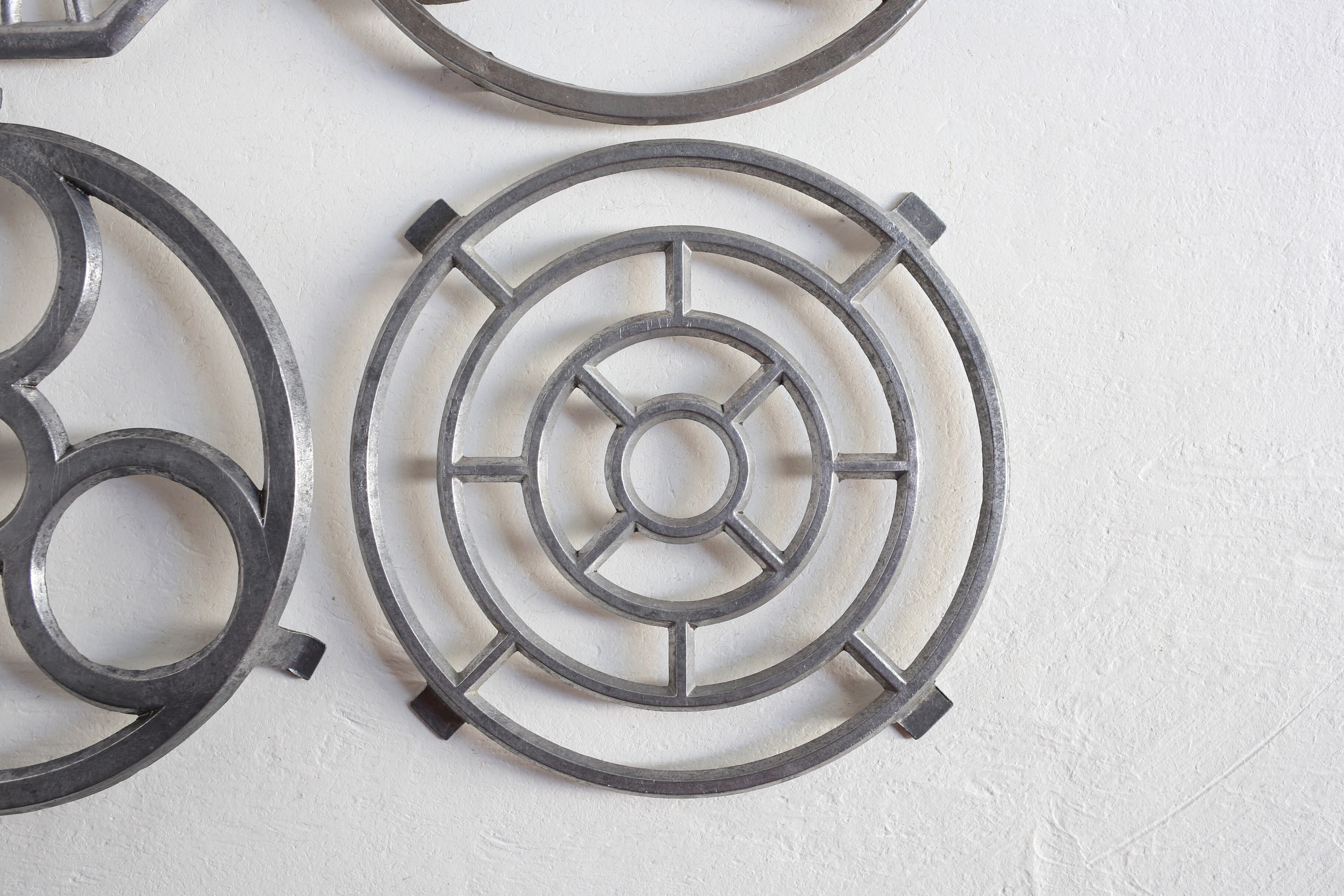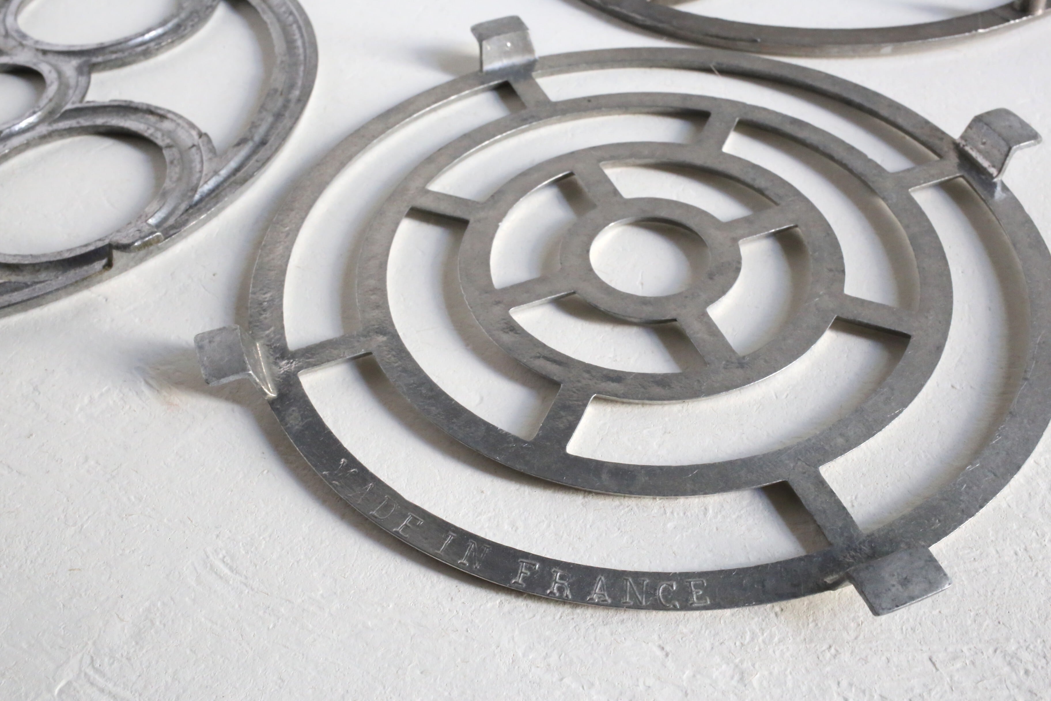パリの蚤の市で集めたアルミ、アルミ合金の鍋敷きです。