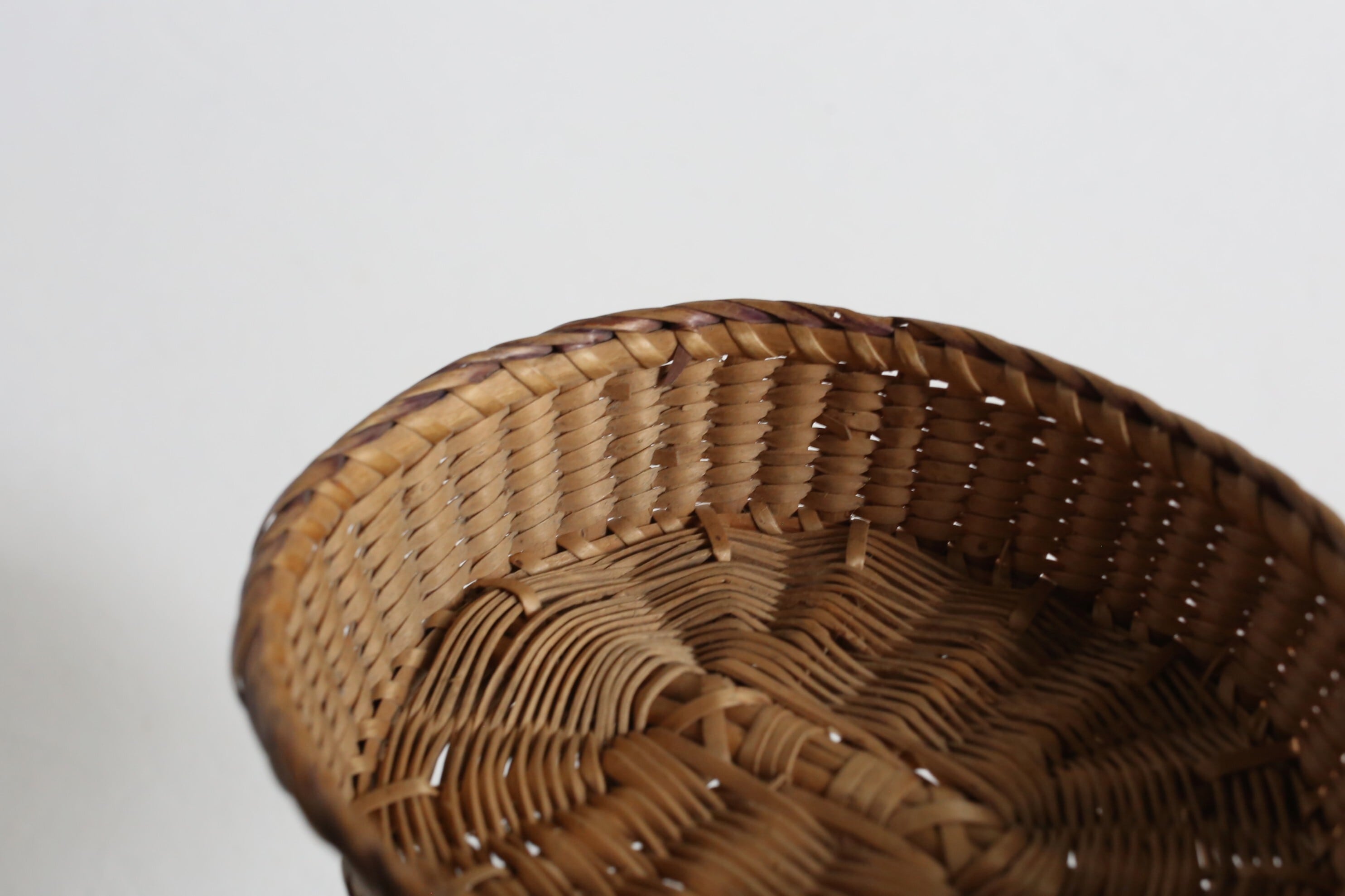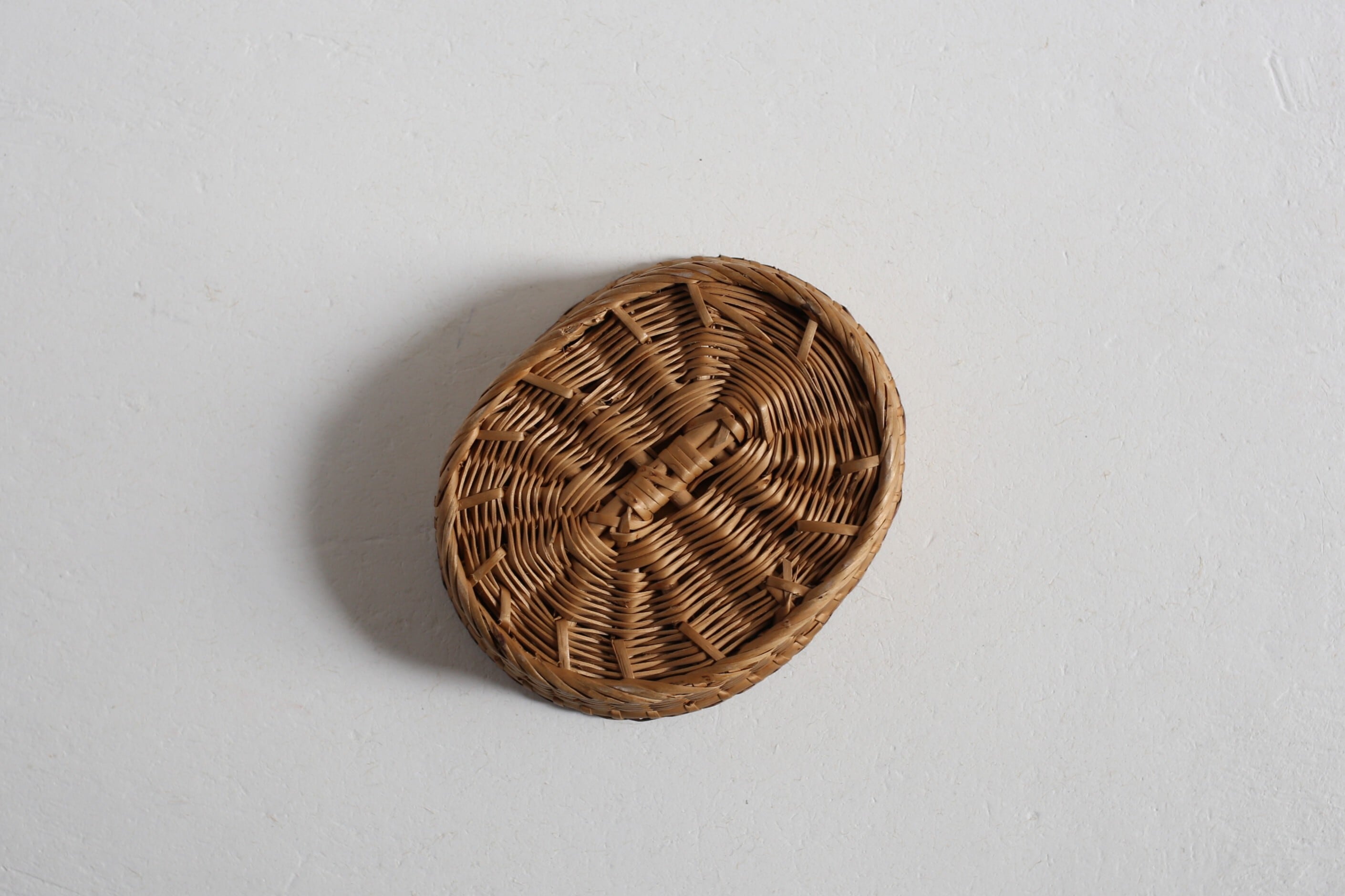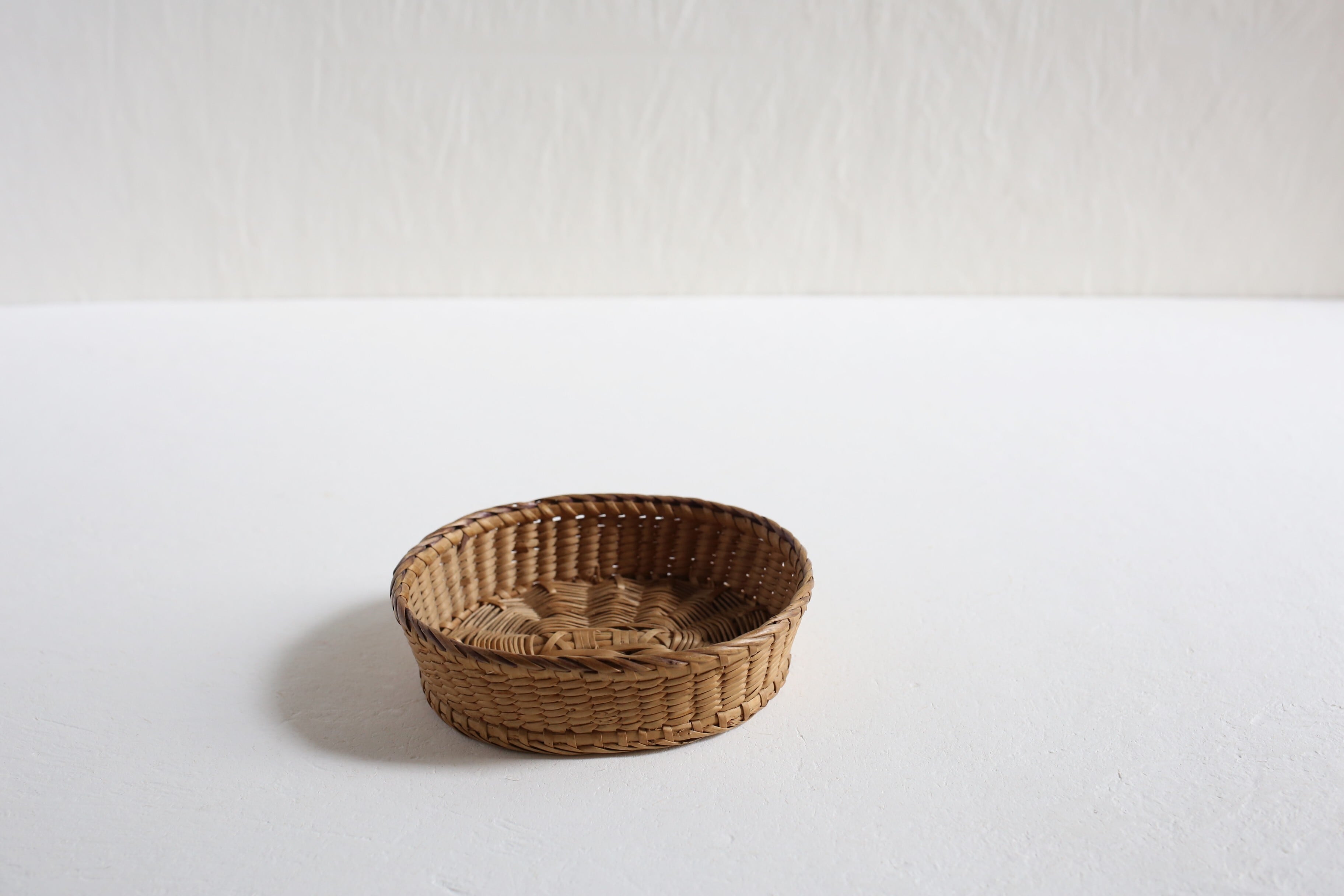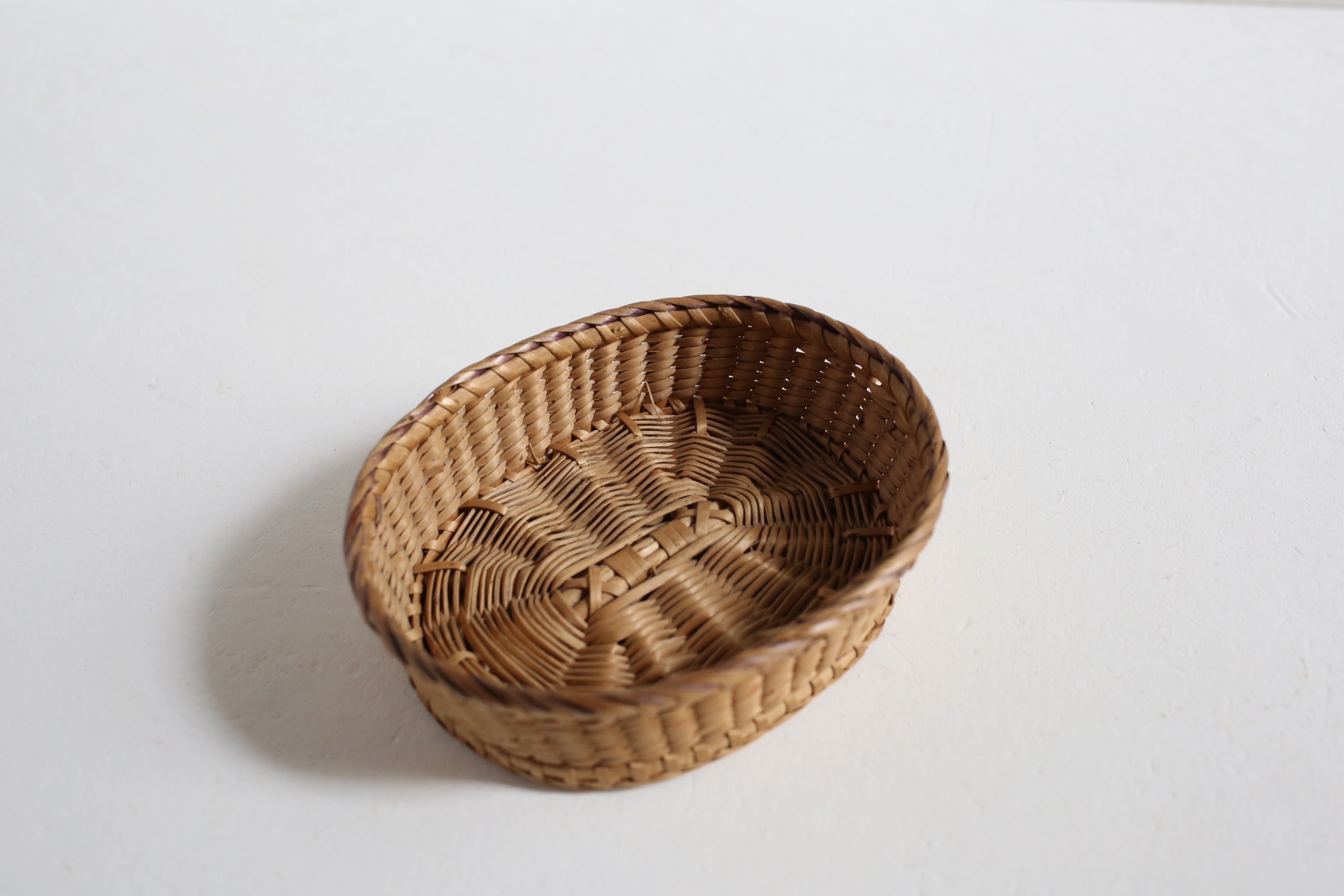 フランス アンティーク パニエ 浅く小さな細編みの美しいカゴ 約13cm×約10cm N-06710