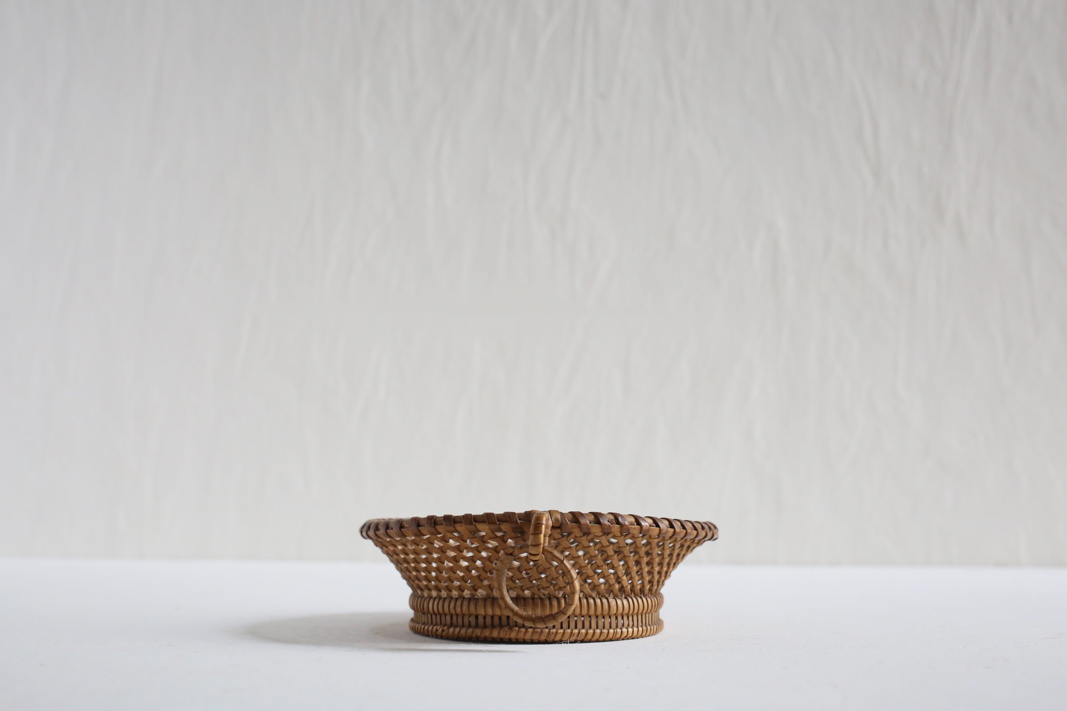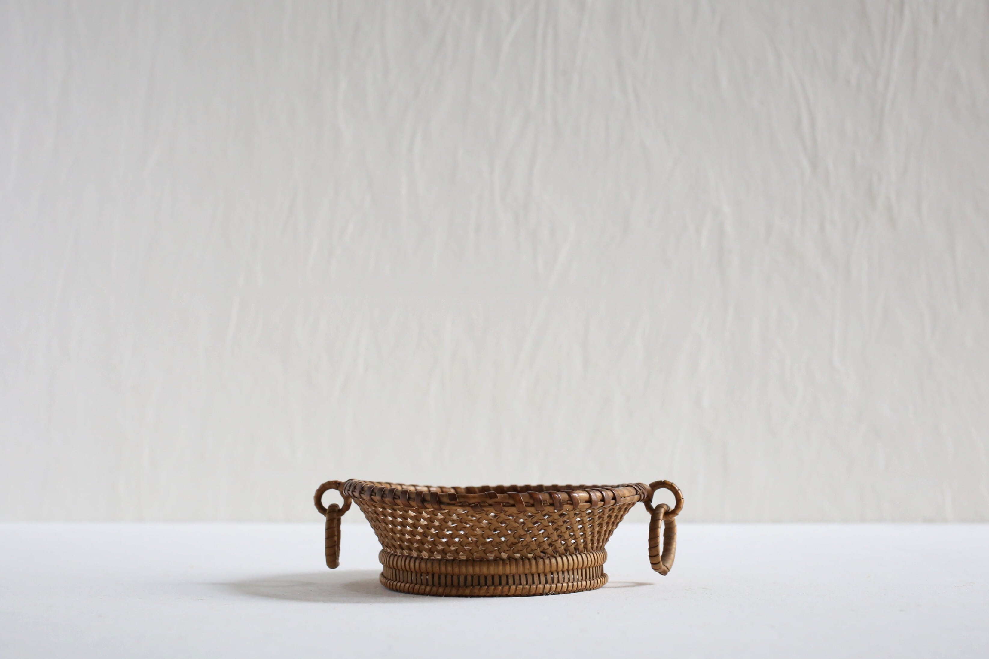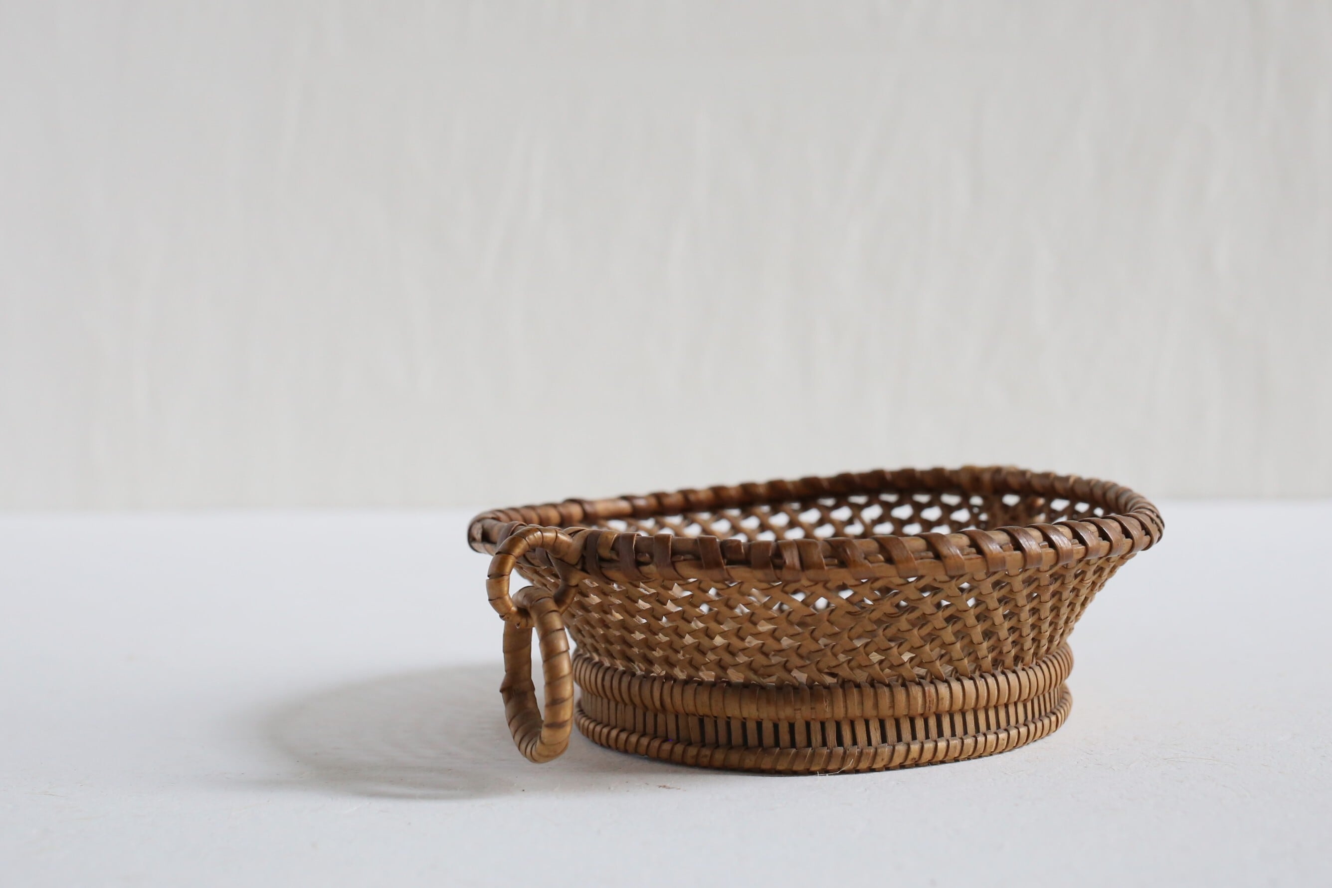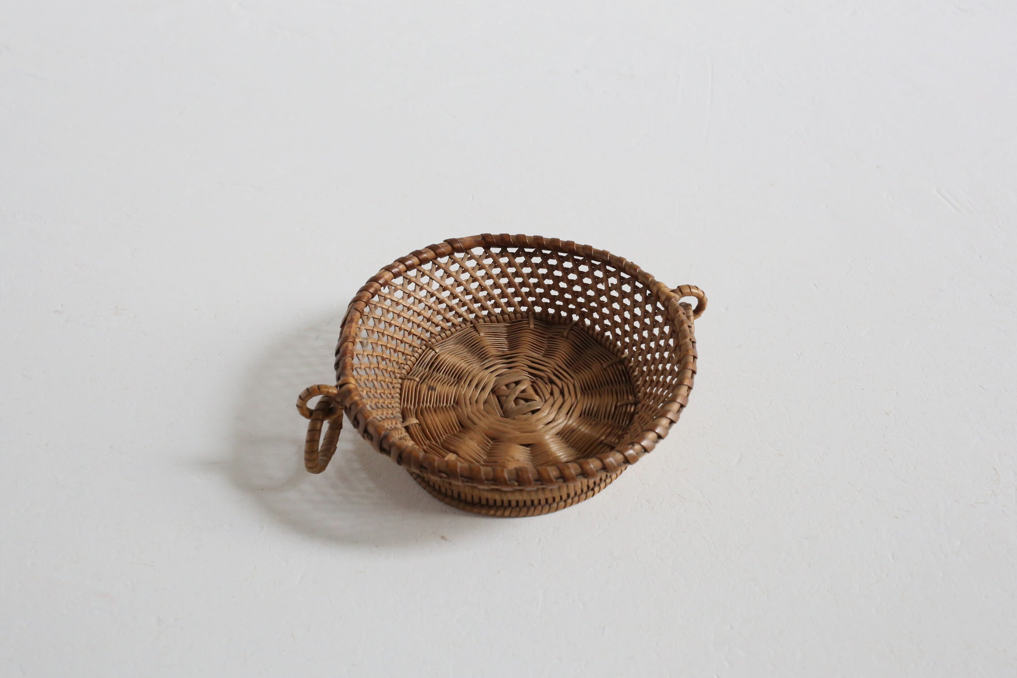フランス アンティーク パニエ 小さな手付きの美しいカゴ ドールパニエ 直径約10cm N-06711