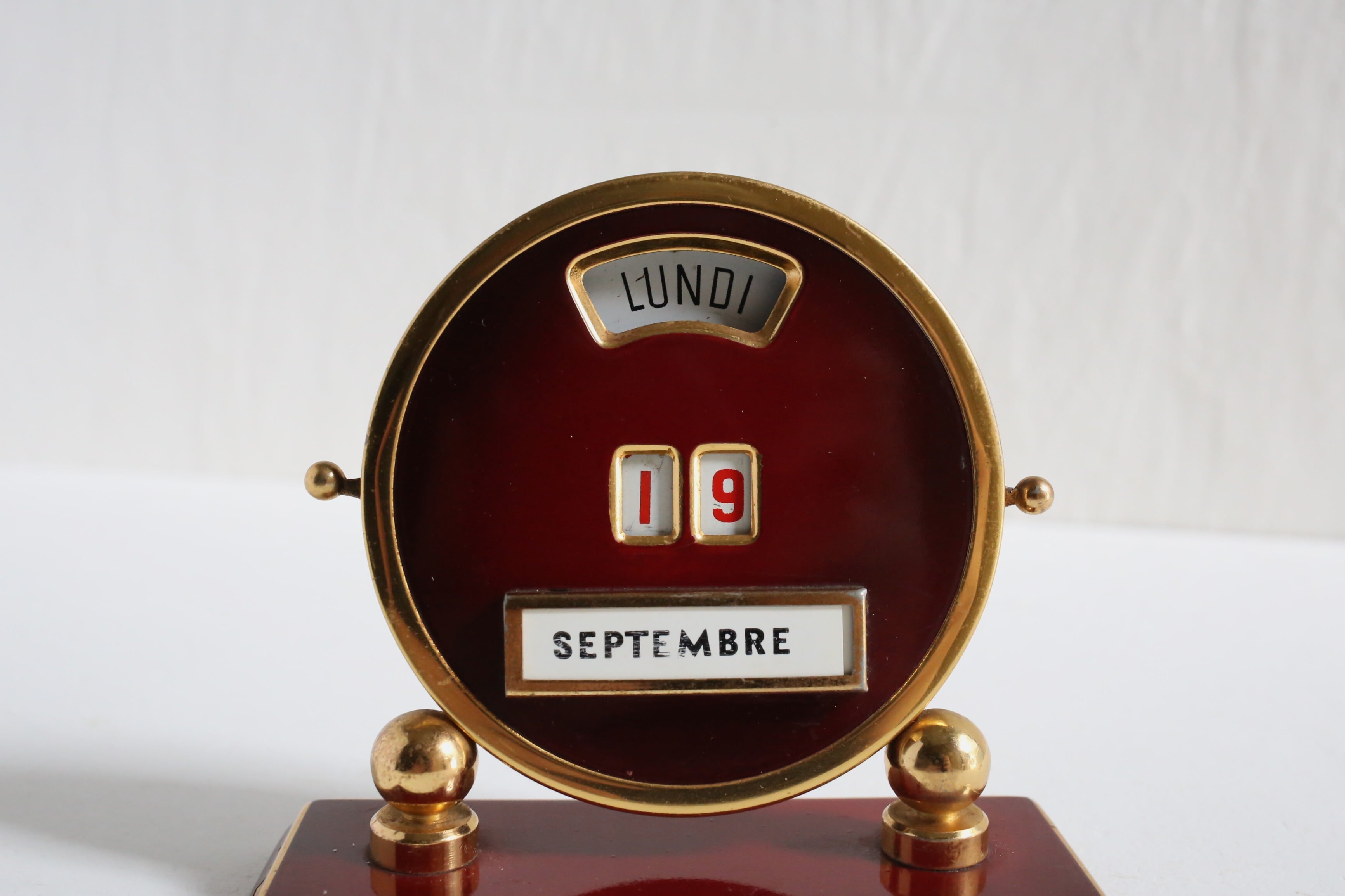 フランス アンティーク ヴィンテージ MISTRAL 万年卓上カレンダー ボルドー×ゴールド N-05815