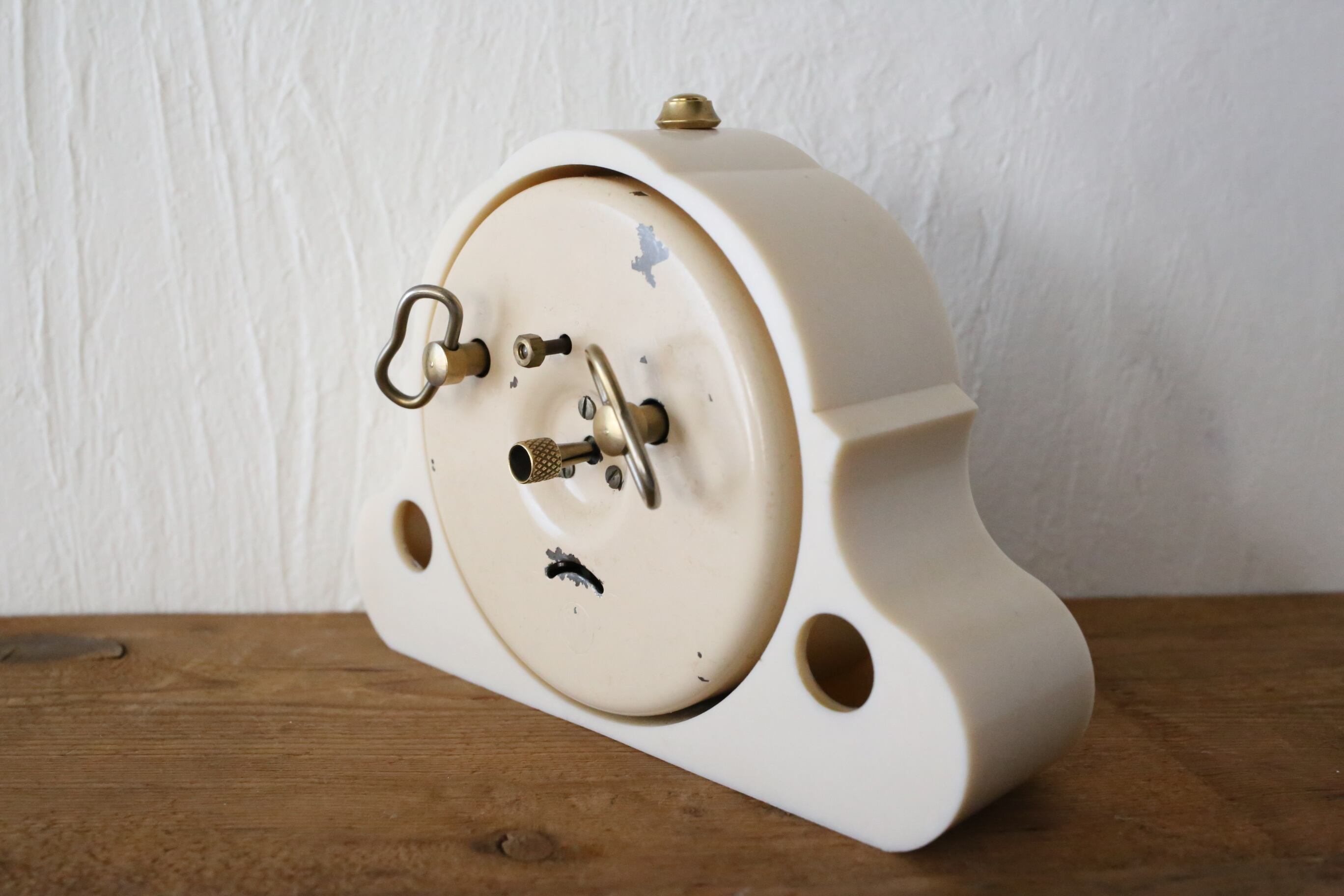 印象的なデザインとアイボリーのベークライトの質感が良い素敵な目覚まし時計です。