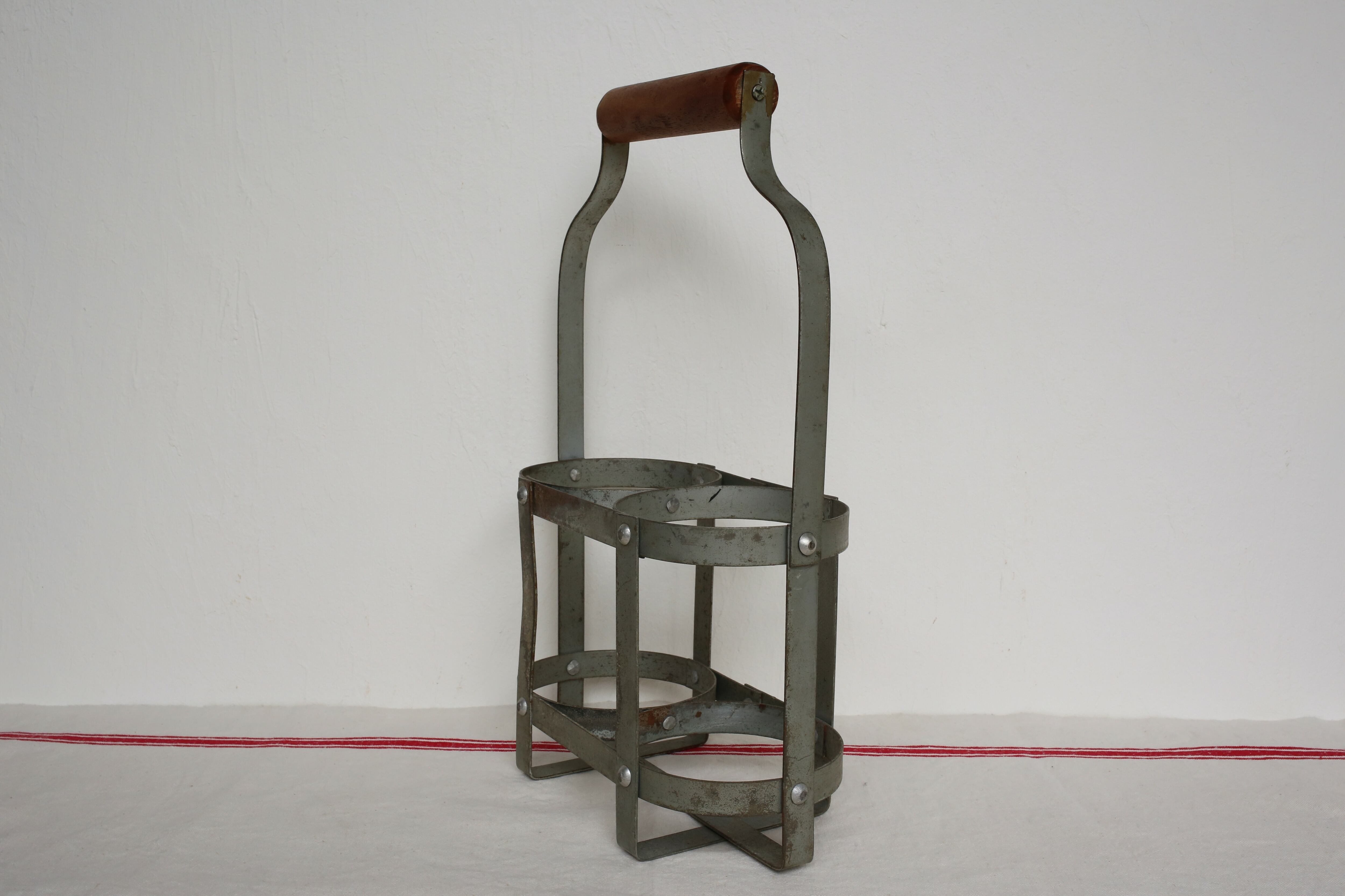 フランスで見つけた直径9.5cmのボトルが2本入るボトルキャリーです。