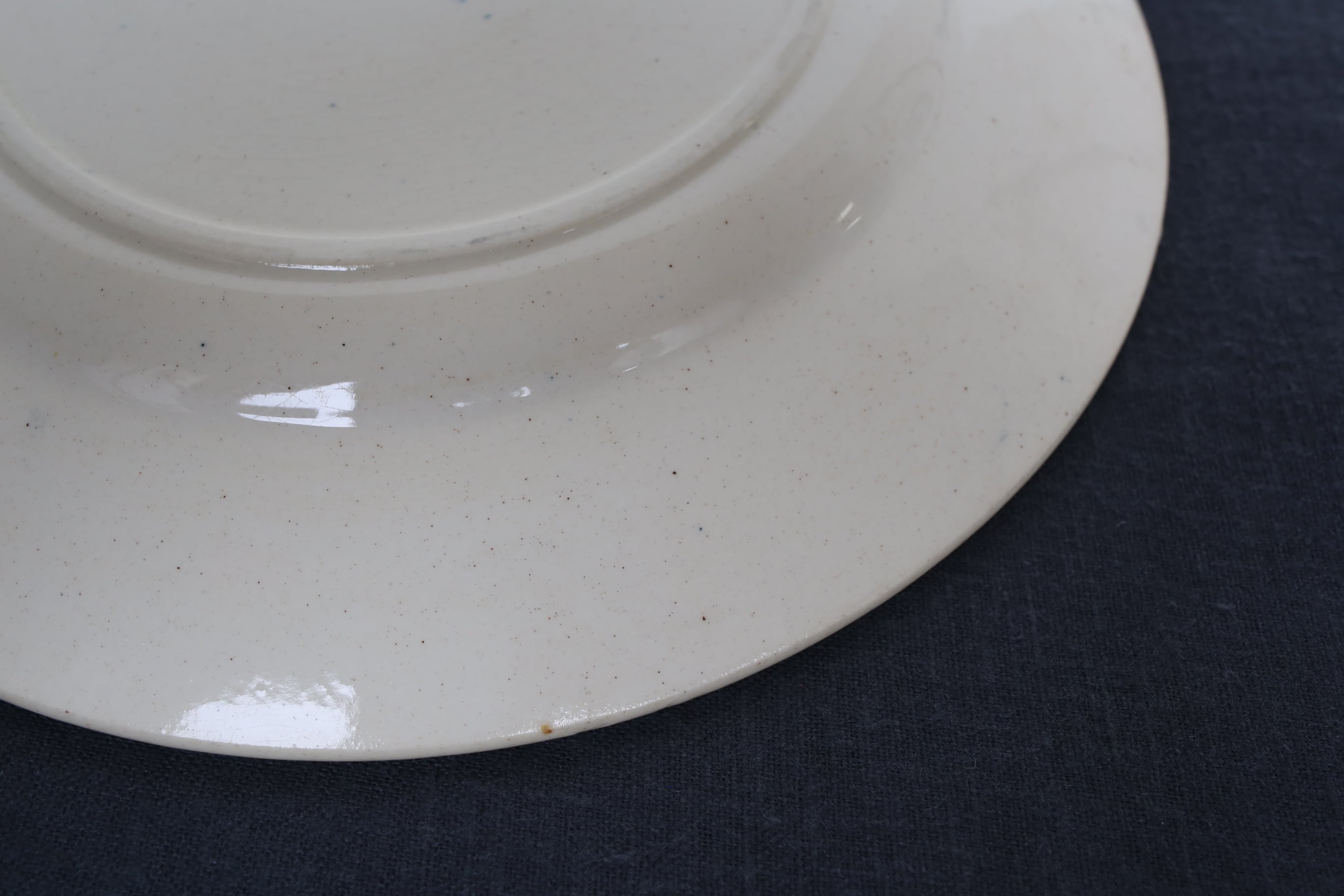 製造時の色むらや細かい刃傷はありますが、特筆すべきカケやヒビはなく、この年代の陶器としてはとても良い状態です。