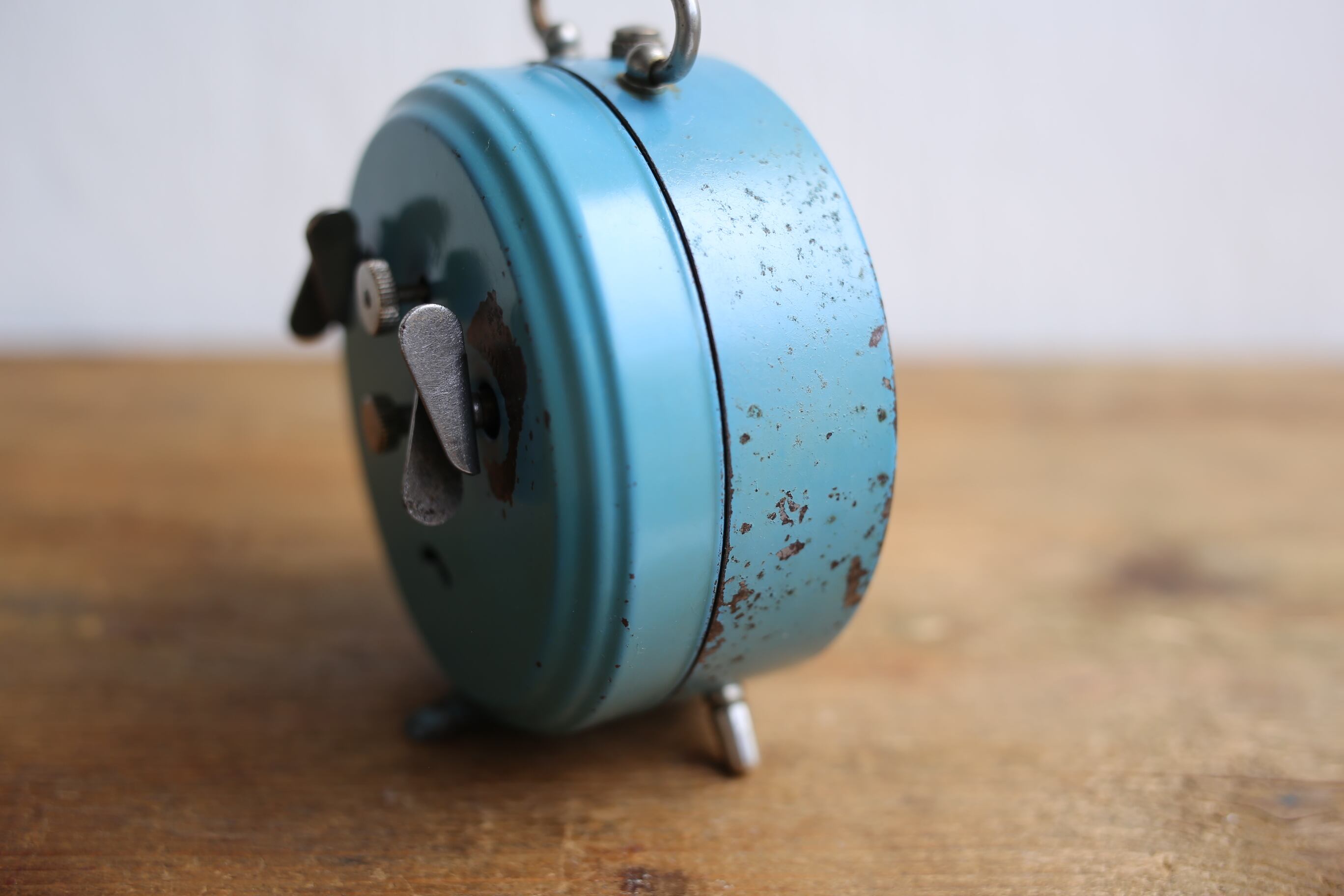 ゼンマイを巻けばカチカチと動きだし、目覚ましも大きな音で響きます。