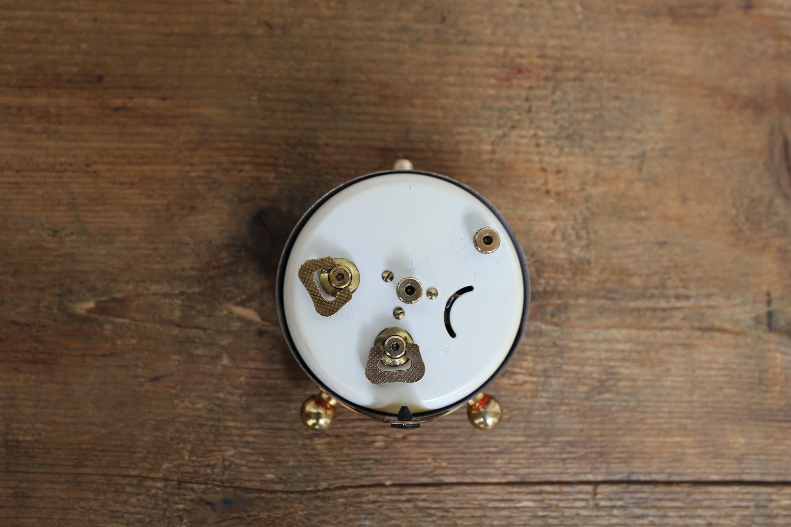 裏面の下側のゼンマイが時計のムーブメント用、左側のゼンマイがアラーム用です。