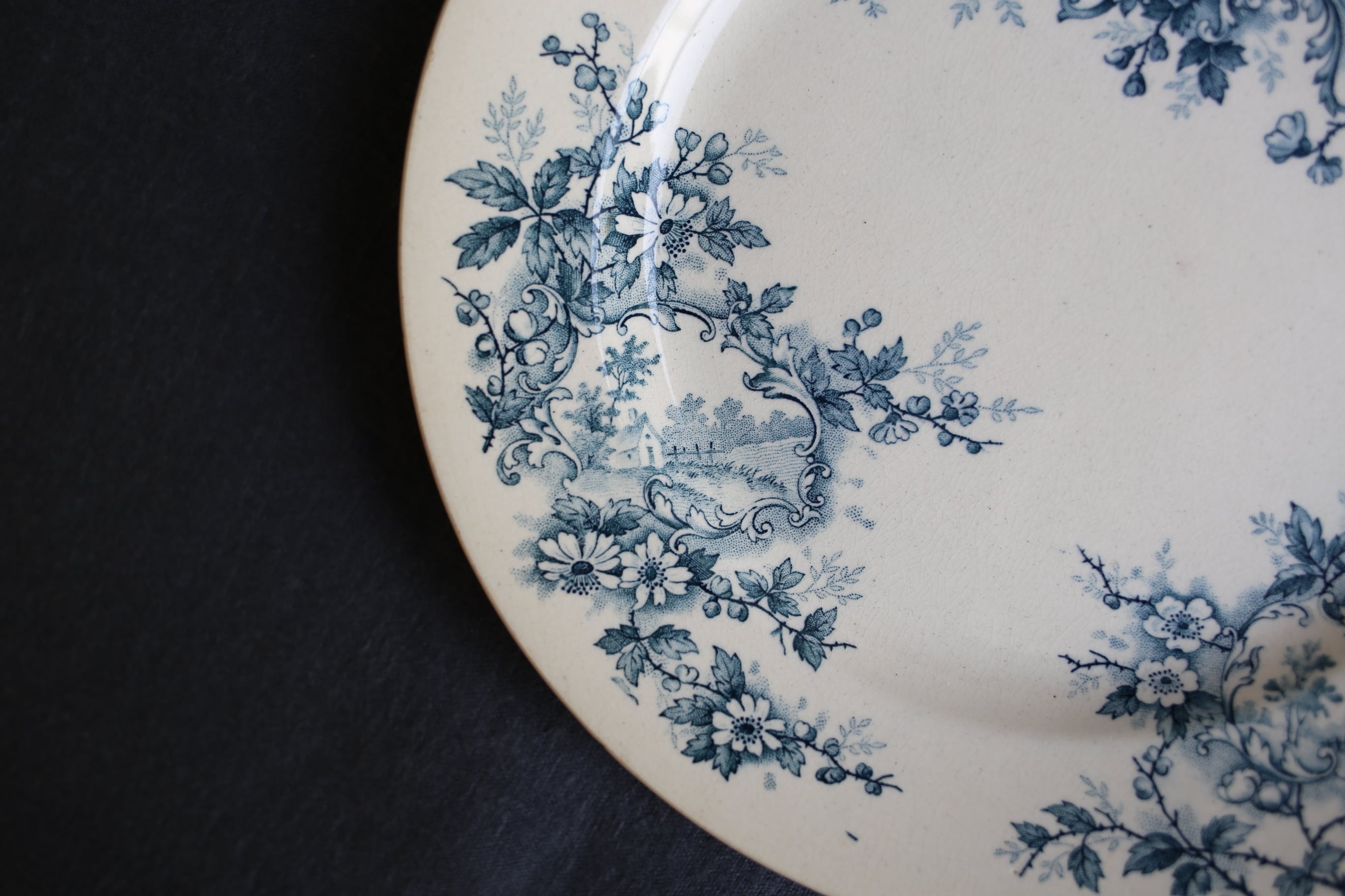 濃淡のある色で植物や田園風景が繊細に描かれた素敵なお皿です。