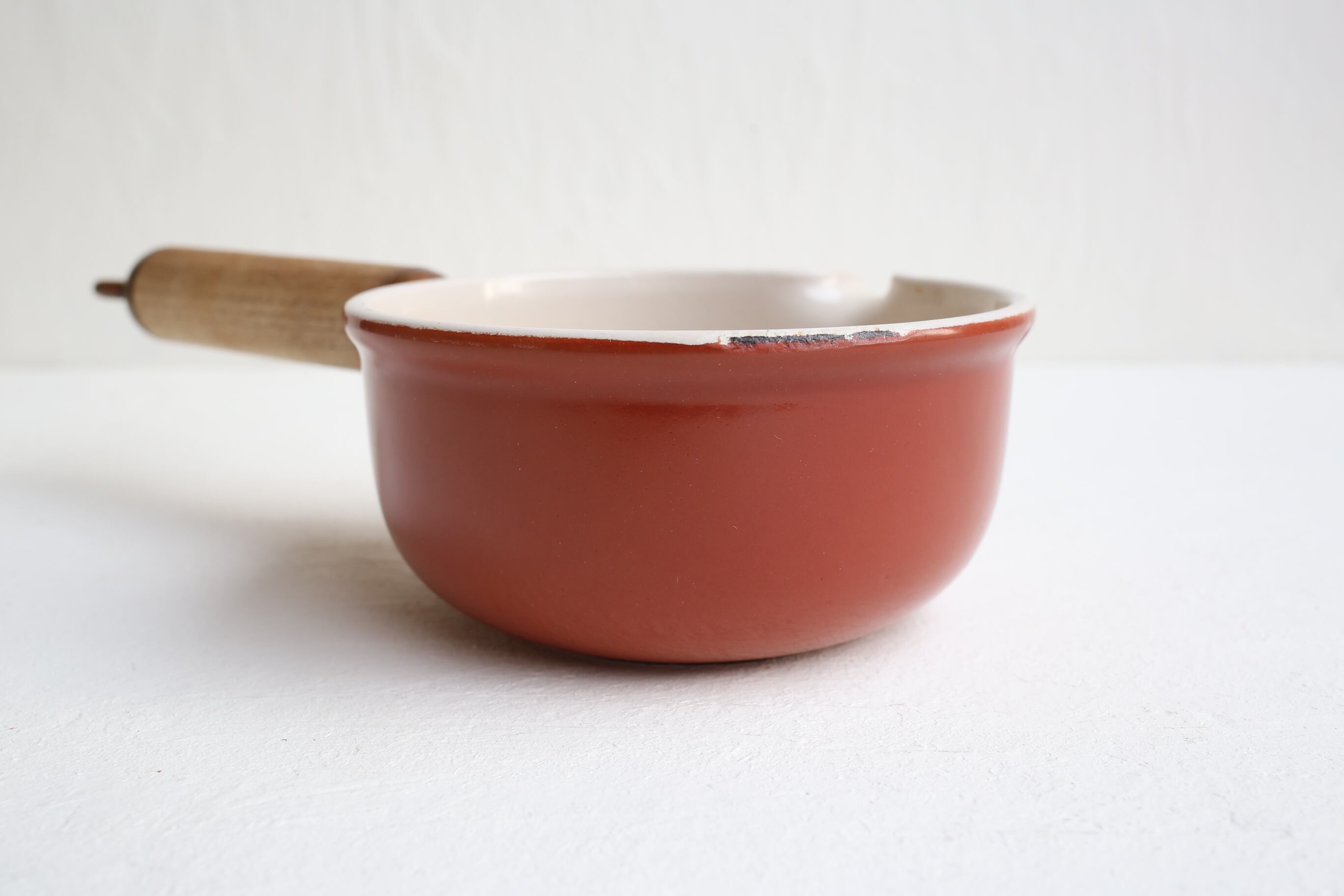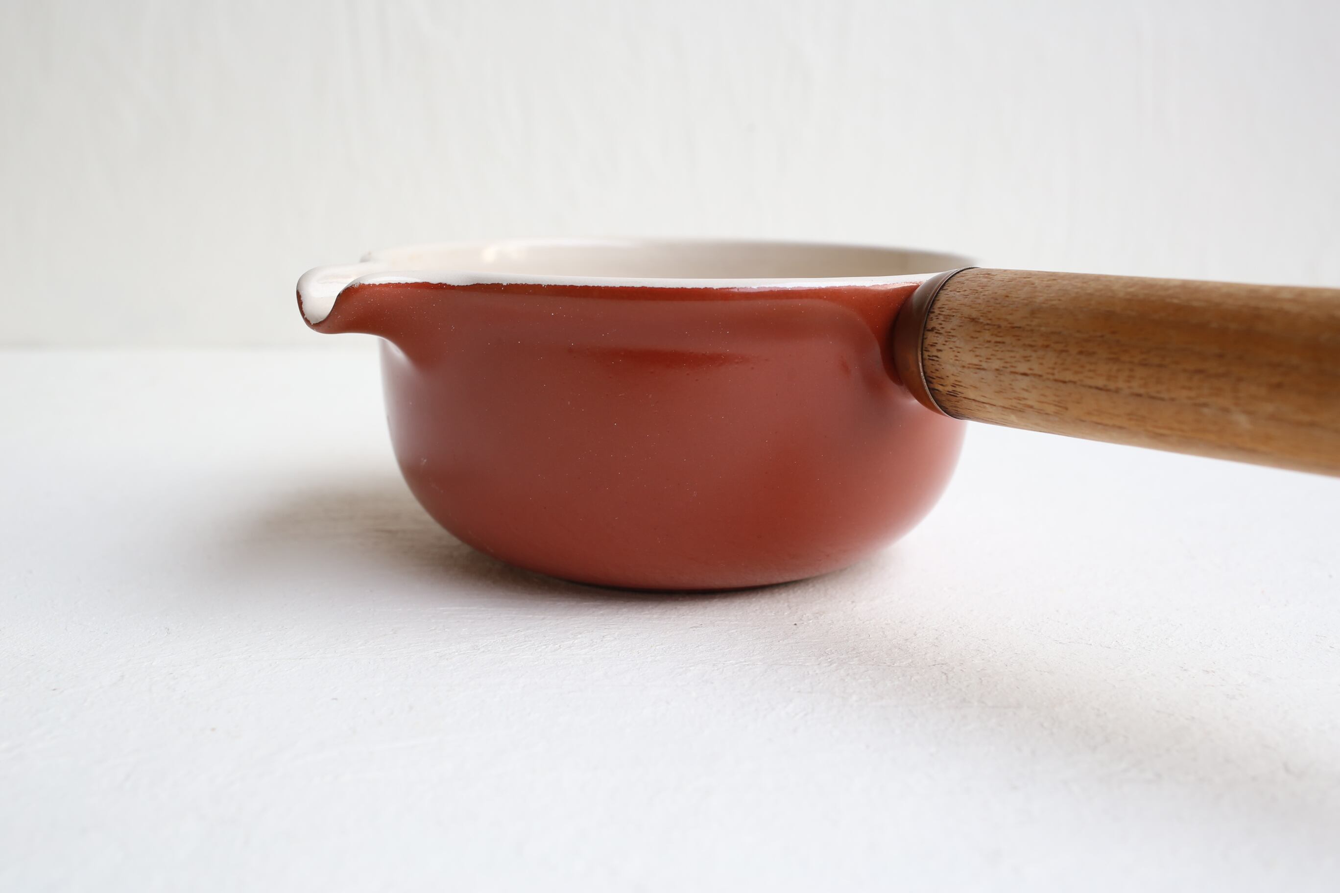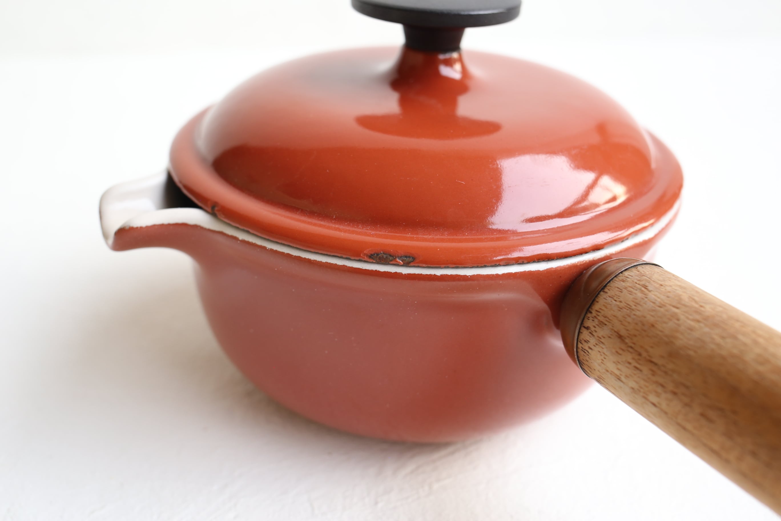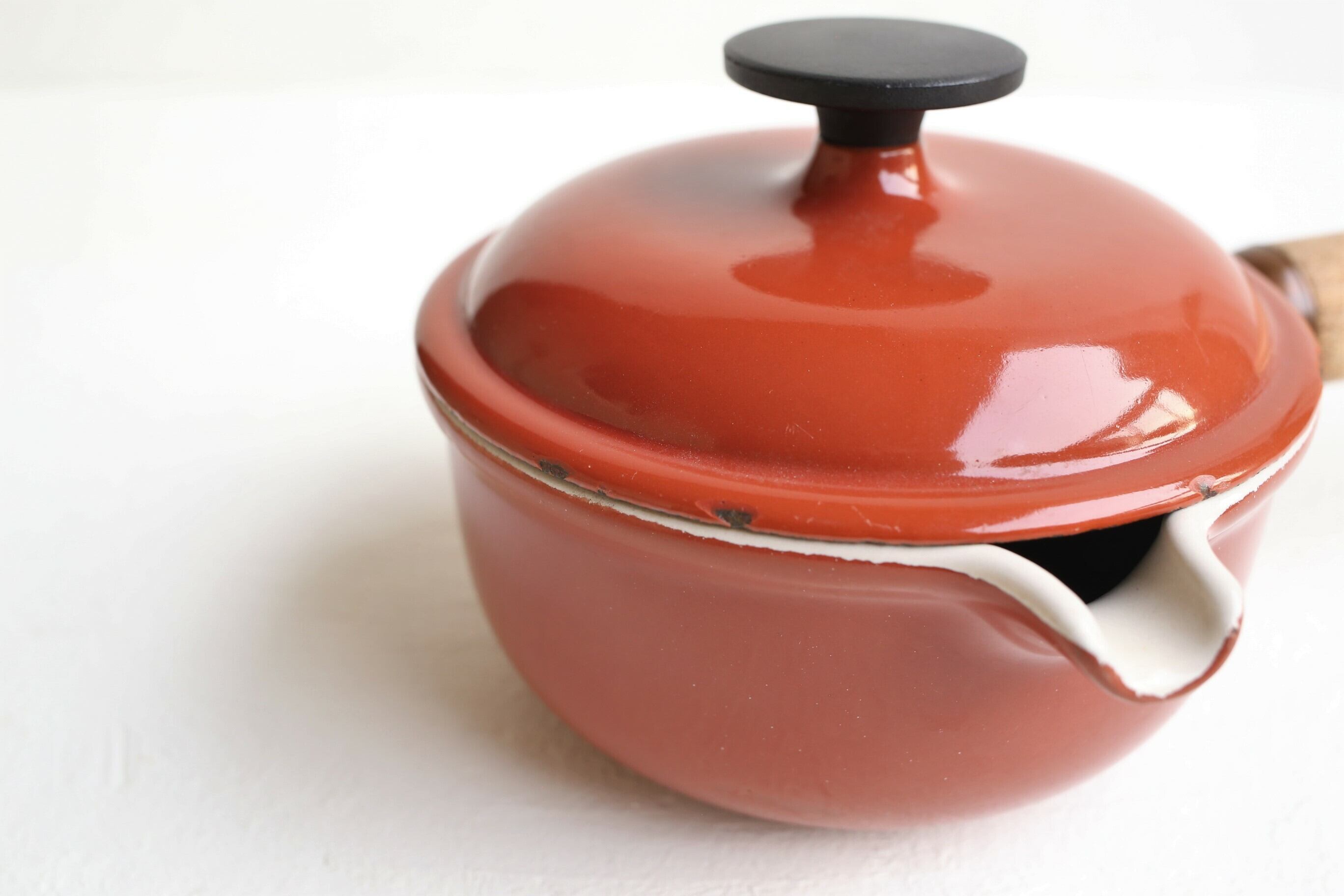 通常のヴィンテージのルクルーゼのソースパンとは持ち手や蓋など全体のフォルムが異なります。