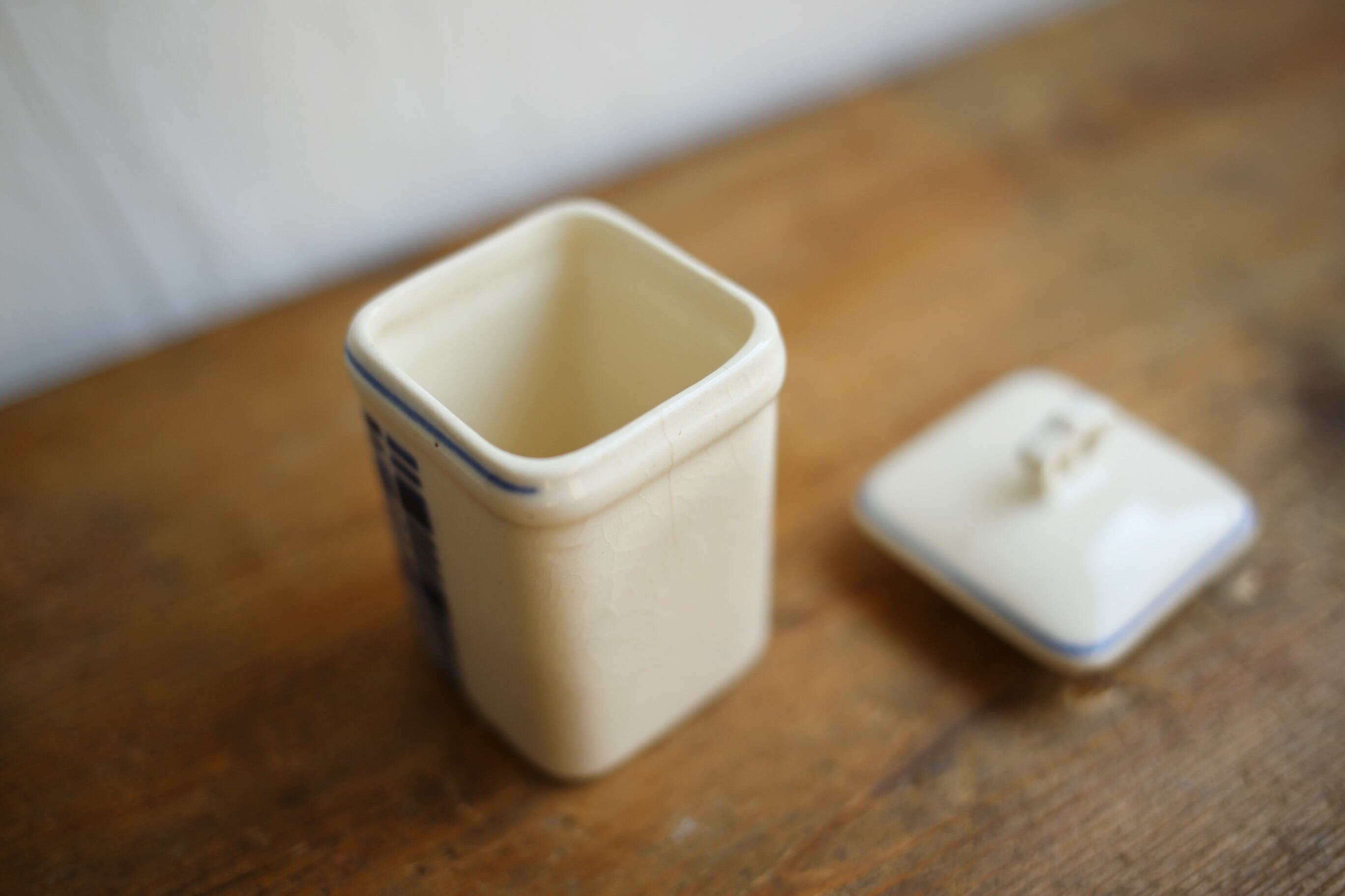 フランス アンティーク ヴィンテージ 陶器製 キャニスター 四角 「Poivre」