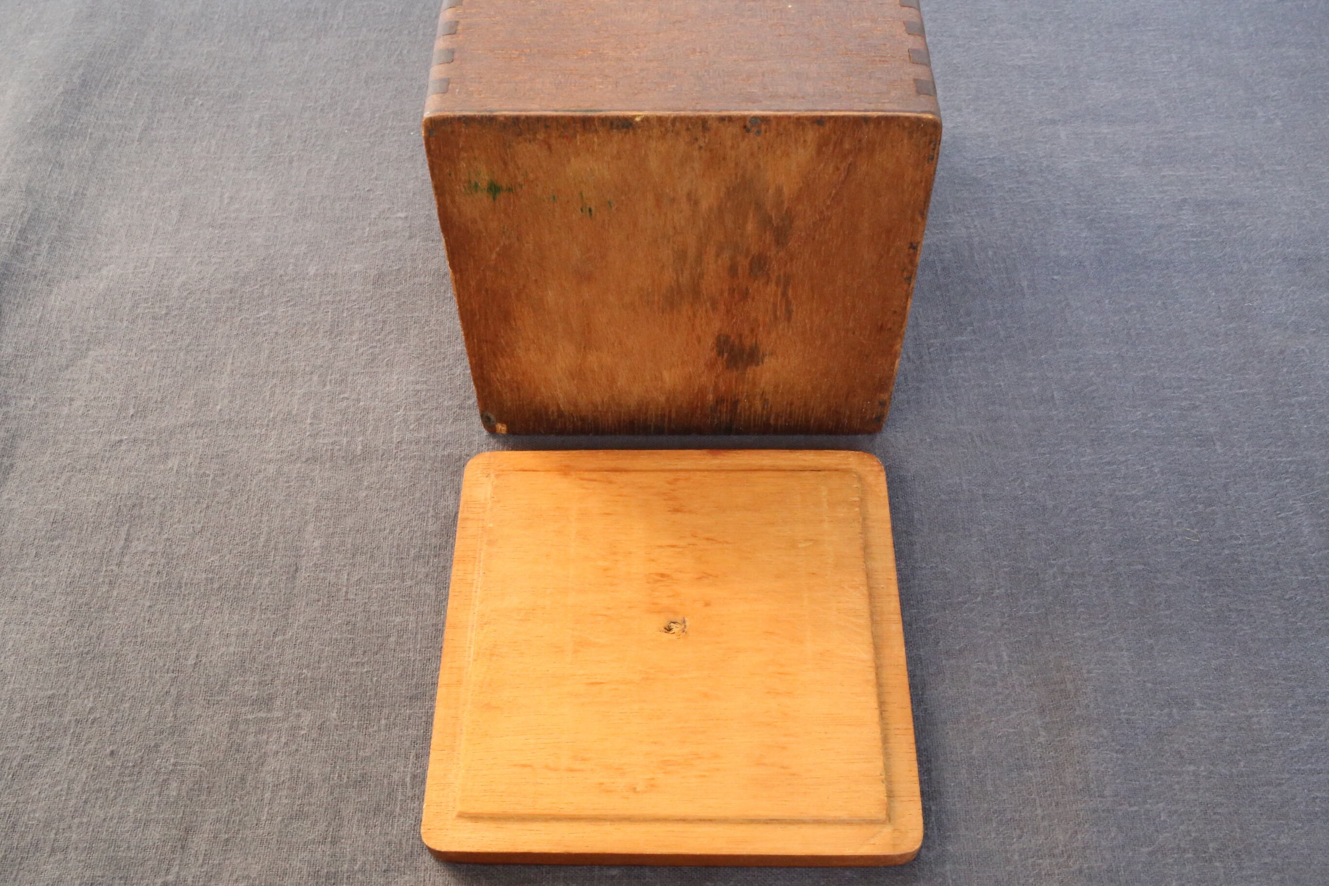 経年によるキズと内側には画材か子供の塗り絵道具が入れられていたのかカラーインクが染みていますが、全体的には良い状態です。