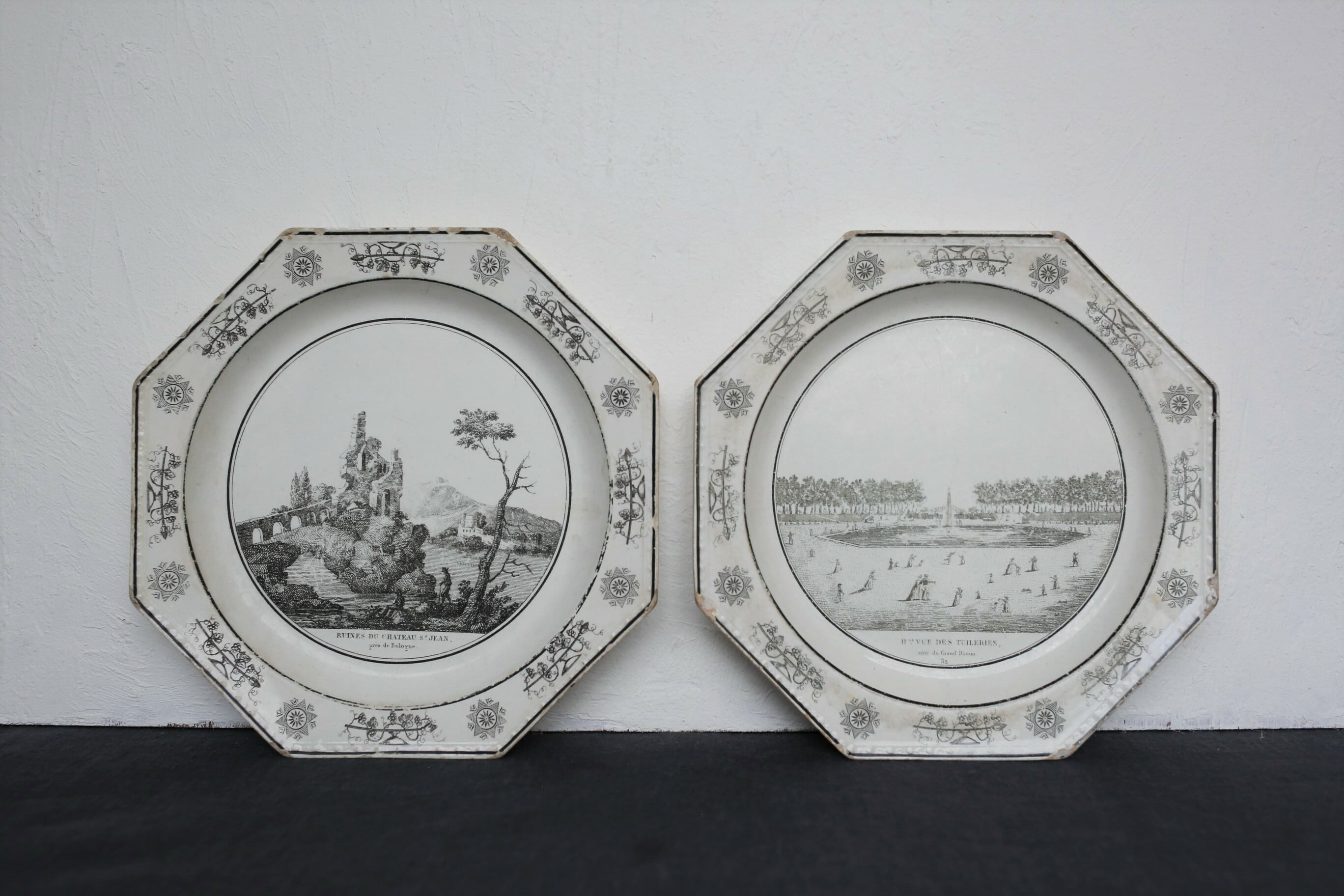 フランス アンティーク Creil クレイユ オクトゴナル 絵皿 N-02712