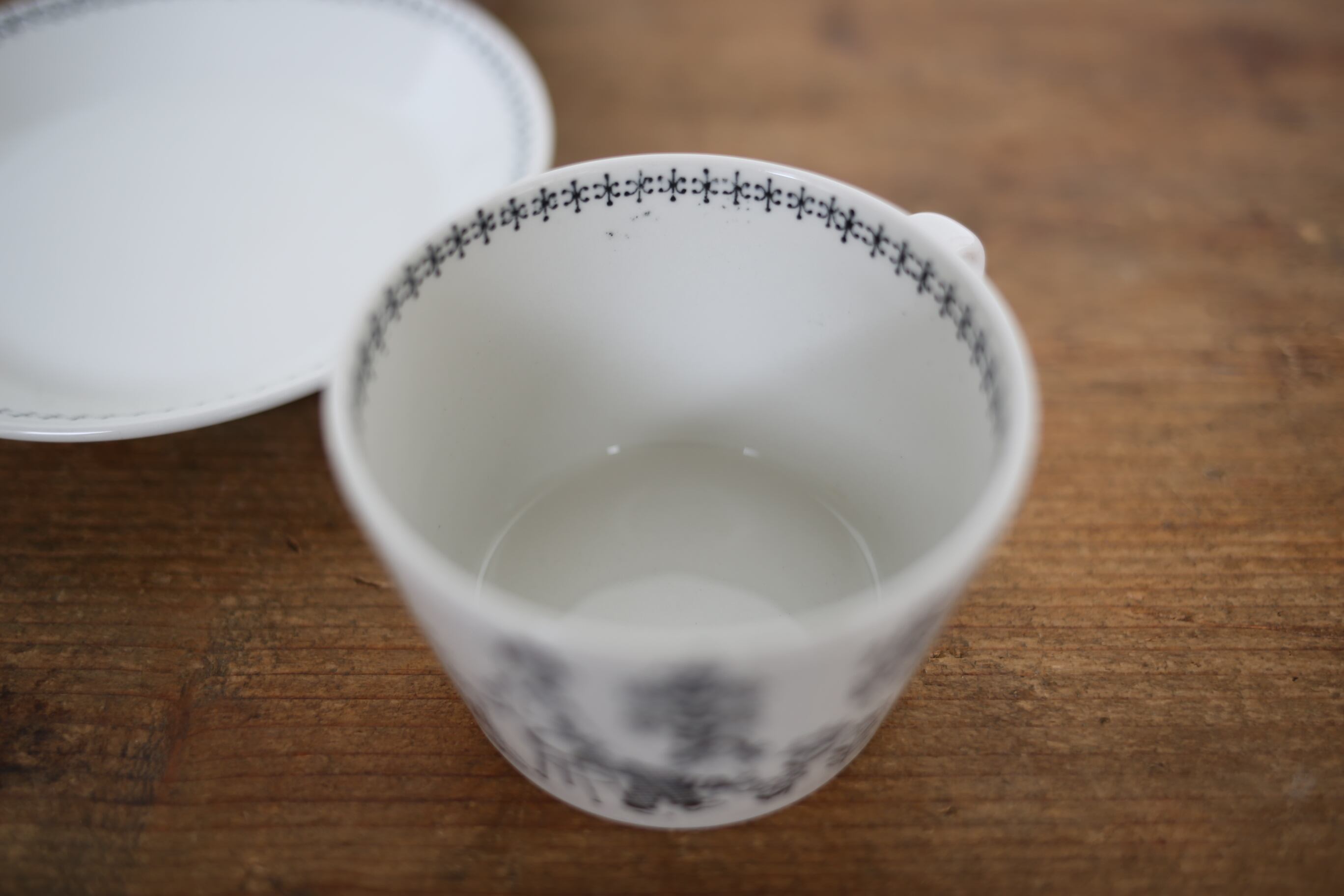 わずかな小キズ、製造時の色むらやインクの飛び、ソーサーの裏に製造時の釉薬の抜けはありますが、全体的に使用感の少ないとても良い状態です。