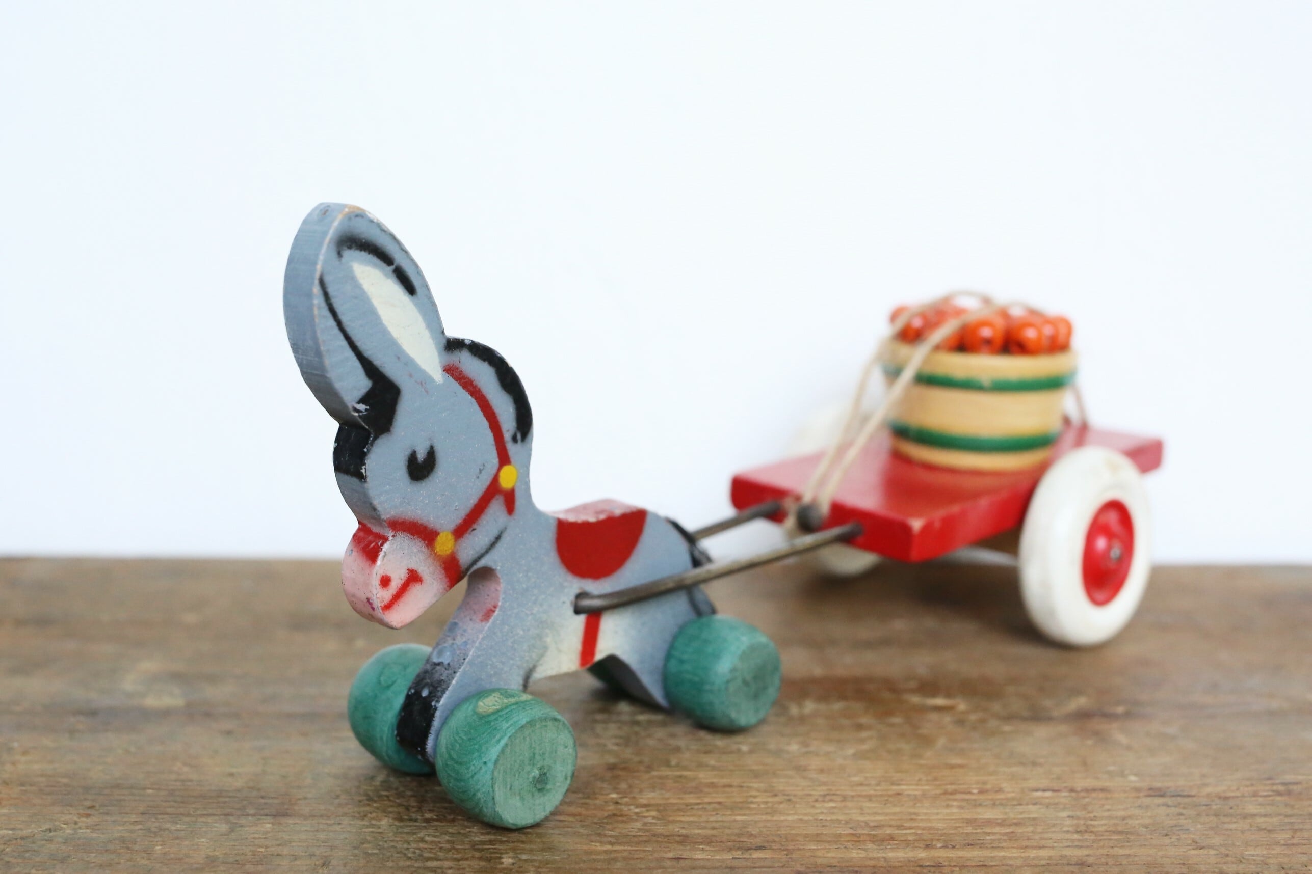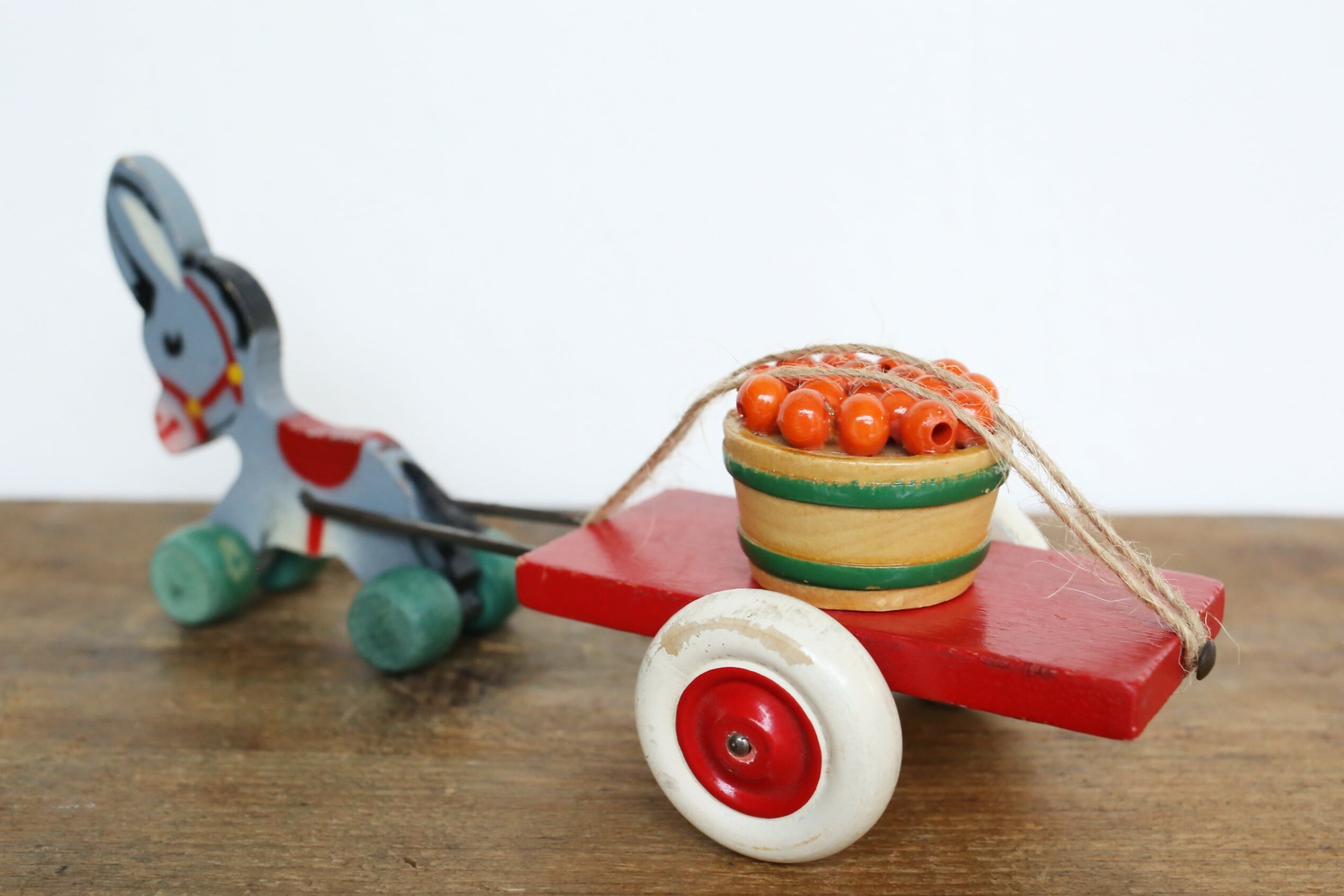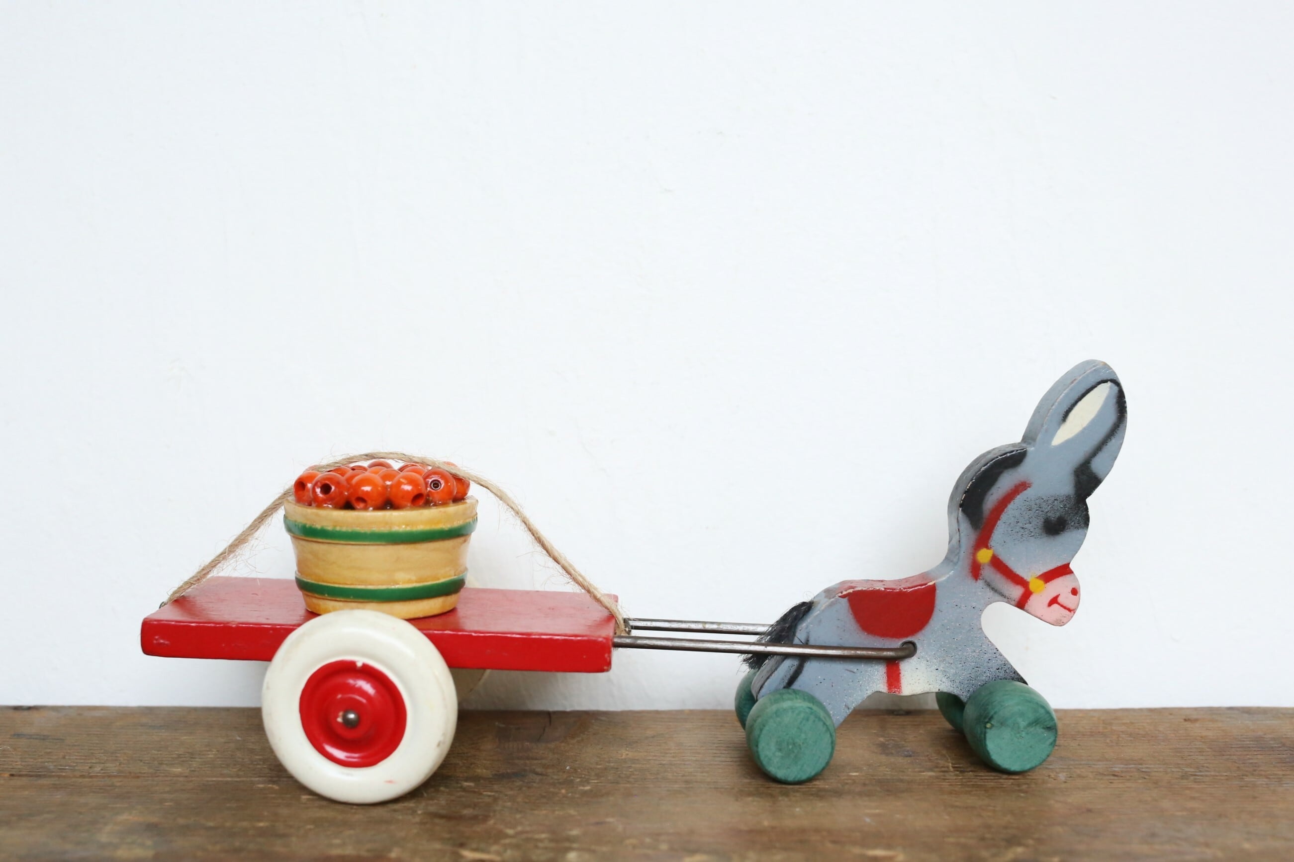 フランス アンティーク ヴィンテージ 木製 おもちゃ 『荷車を引きロバ』