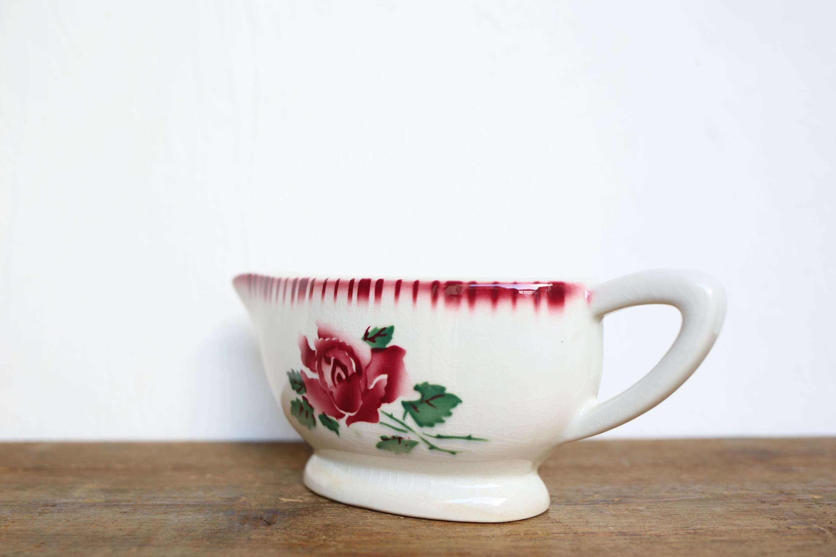 フランス アンティーク ヴィンテージ Sarreguemines サルグミンヌ バラのソースポット ソーシエ―ル