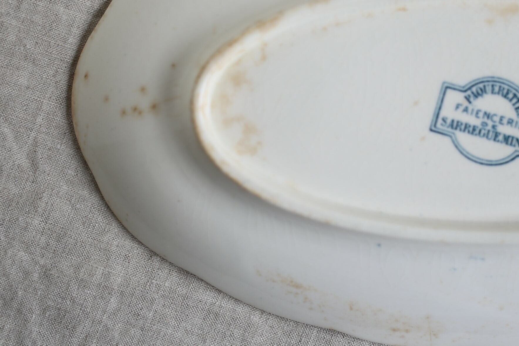 フランス アンティーク SARREGUEMINES サルグミンヌ ラヴィエ オーバル皿『PÂQUERETTES』 N-02305c