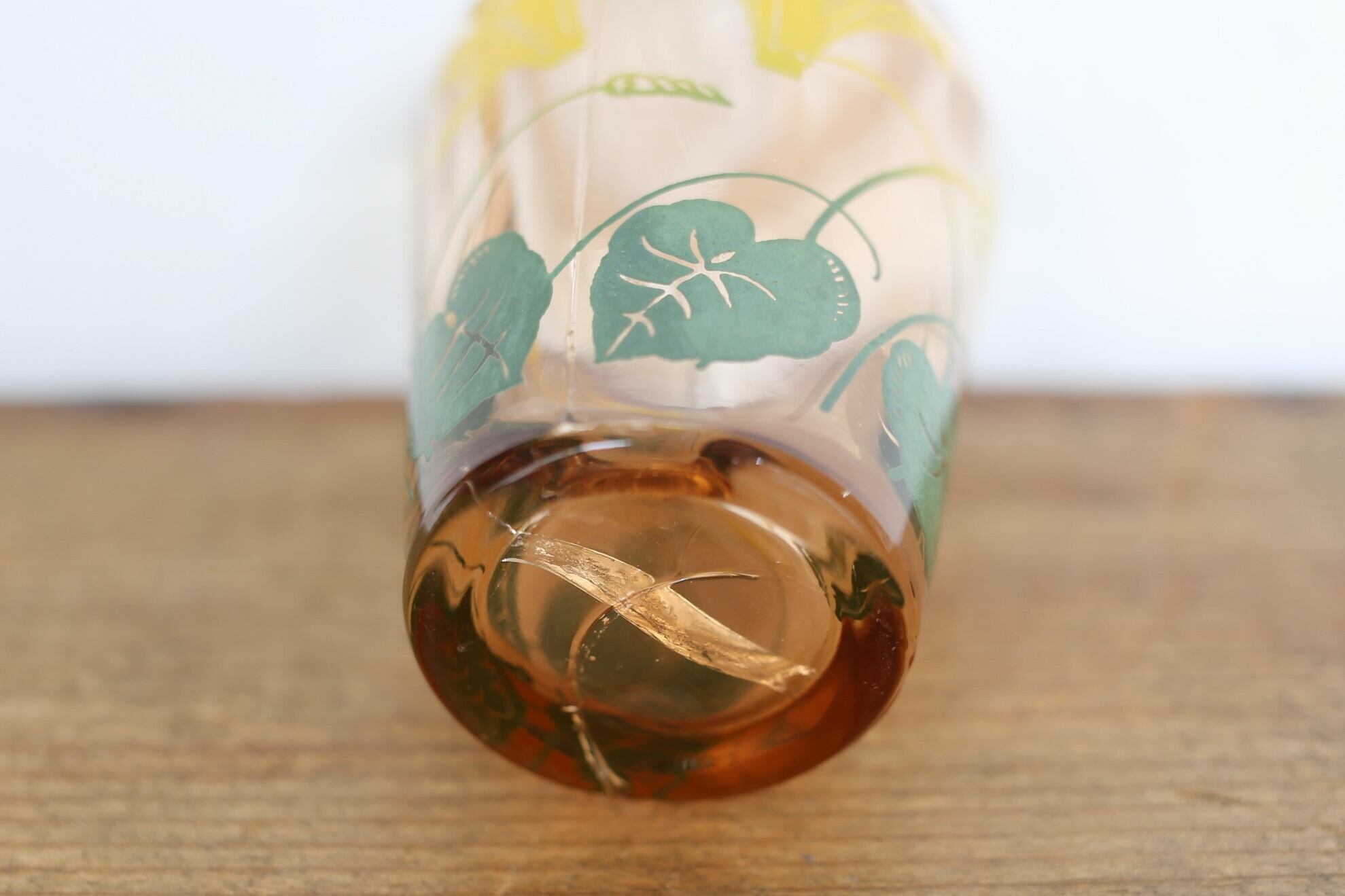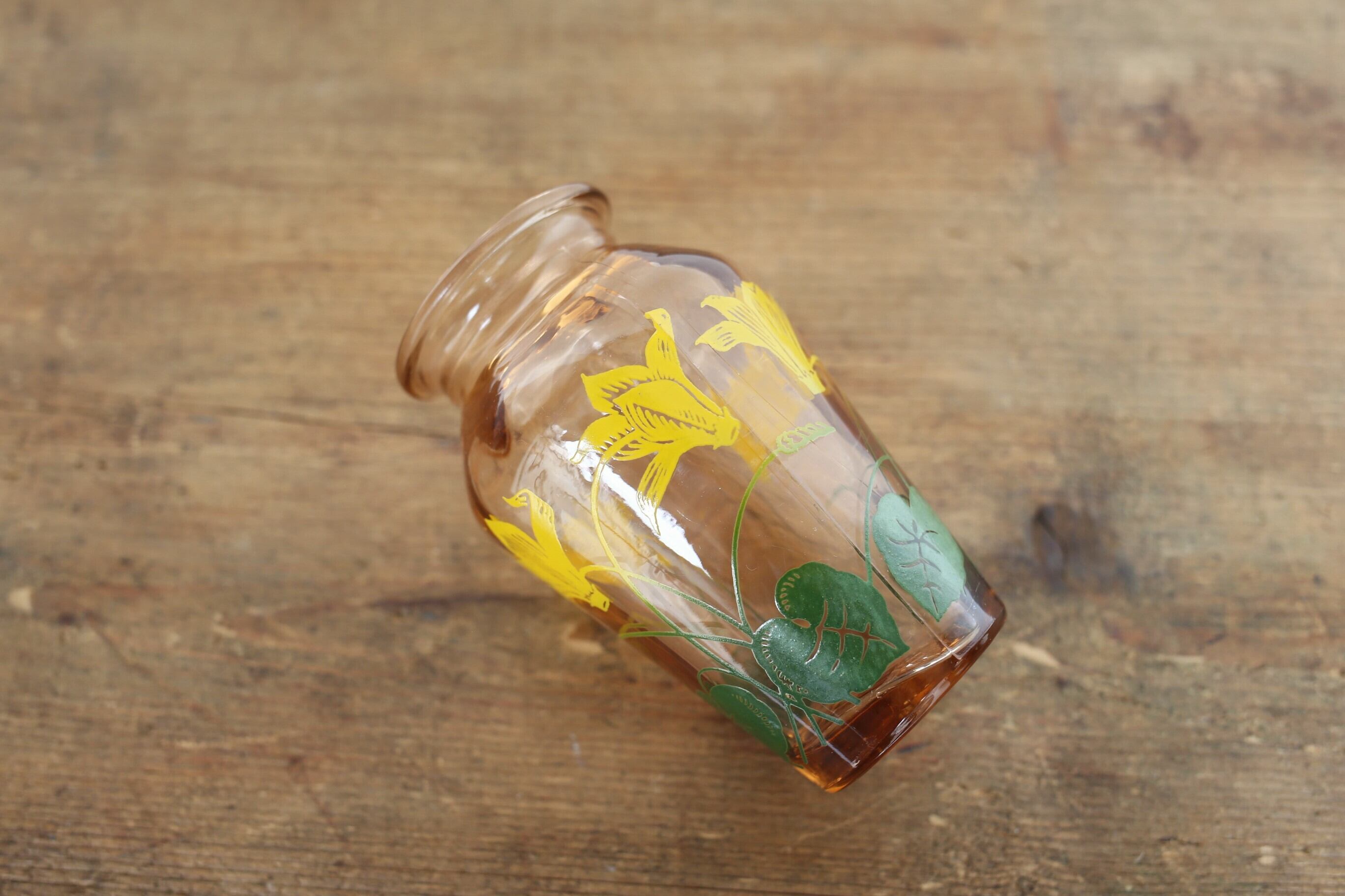 フランスで見つけたピンクガラスに花柄のヒヤシンスポットですが、絵柄のついたものはとても珍しいです。