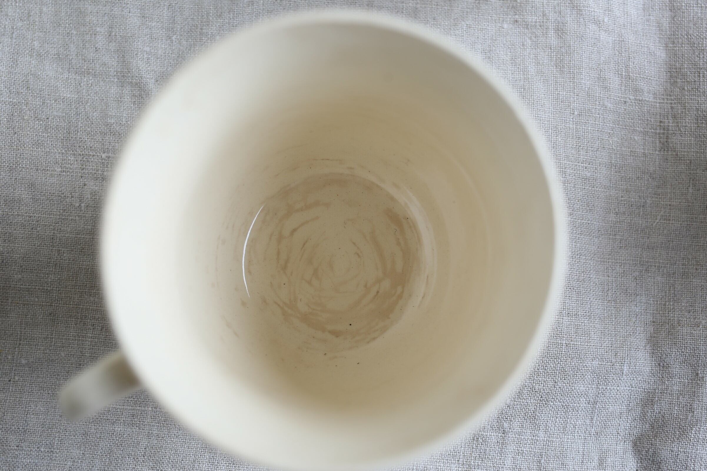 (カップの縁にチップやカケに見える箇所がありますが、その上に釉薬がかかっているので製造時のものになります。)