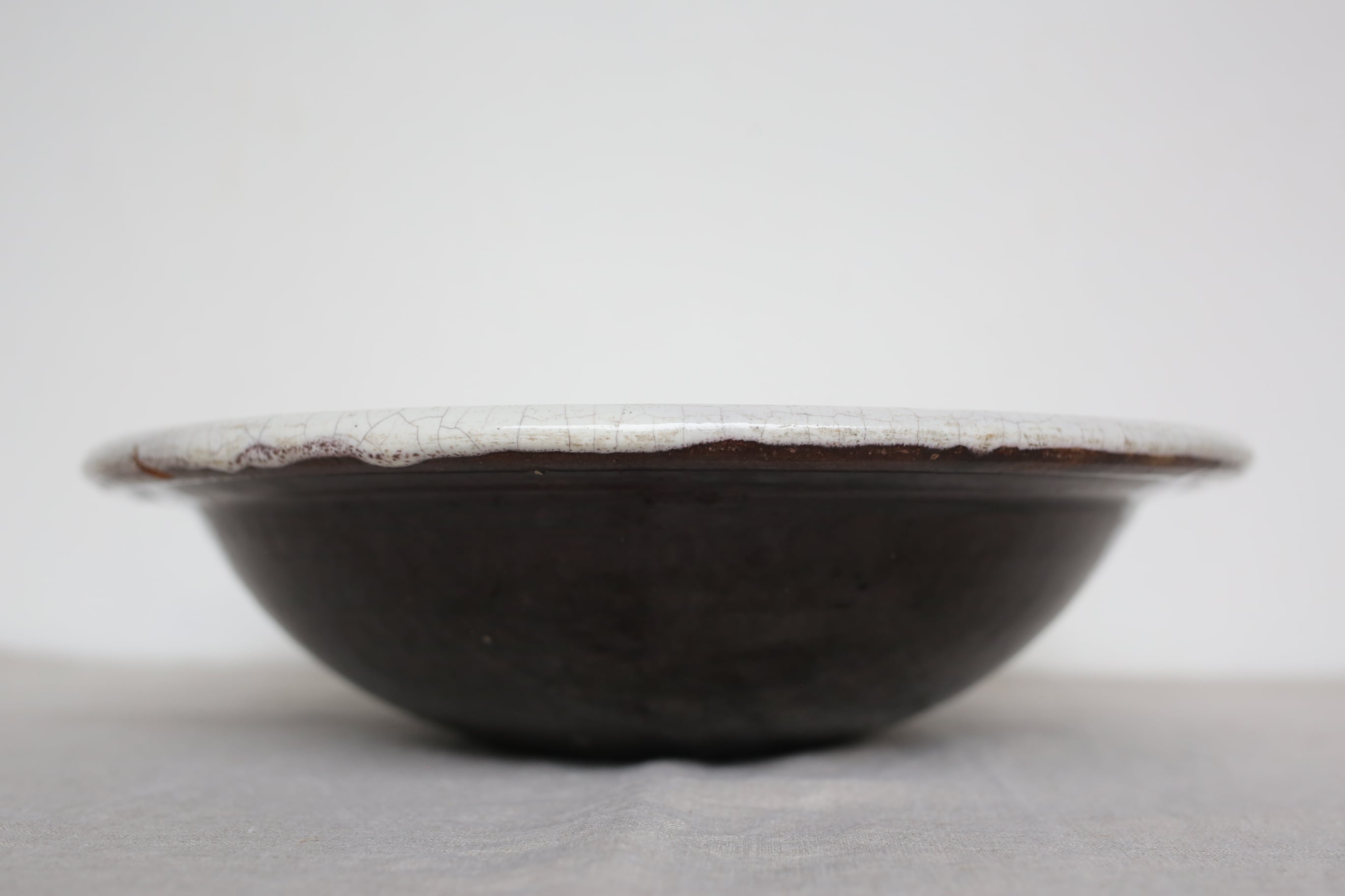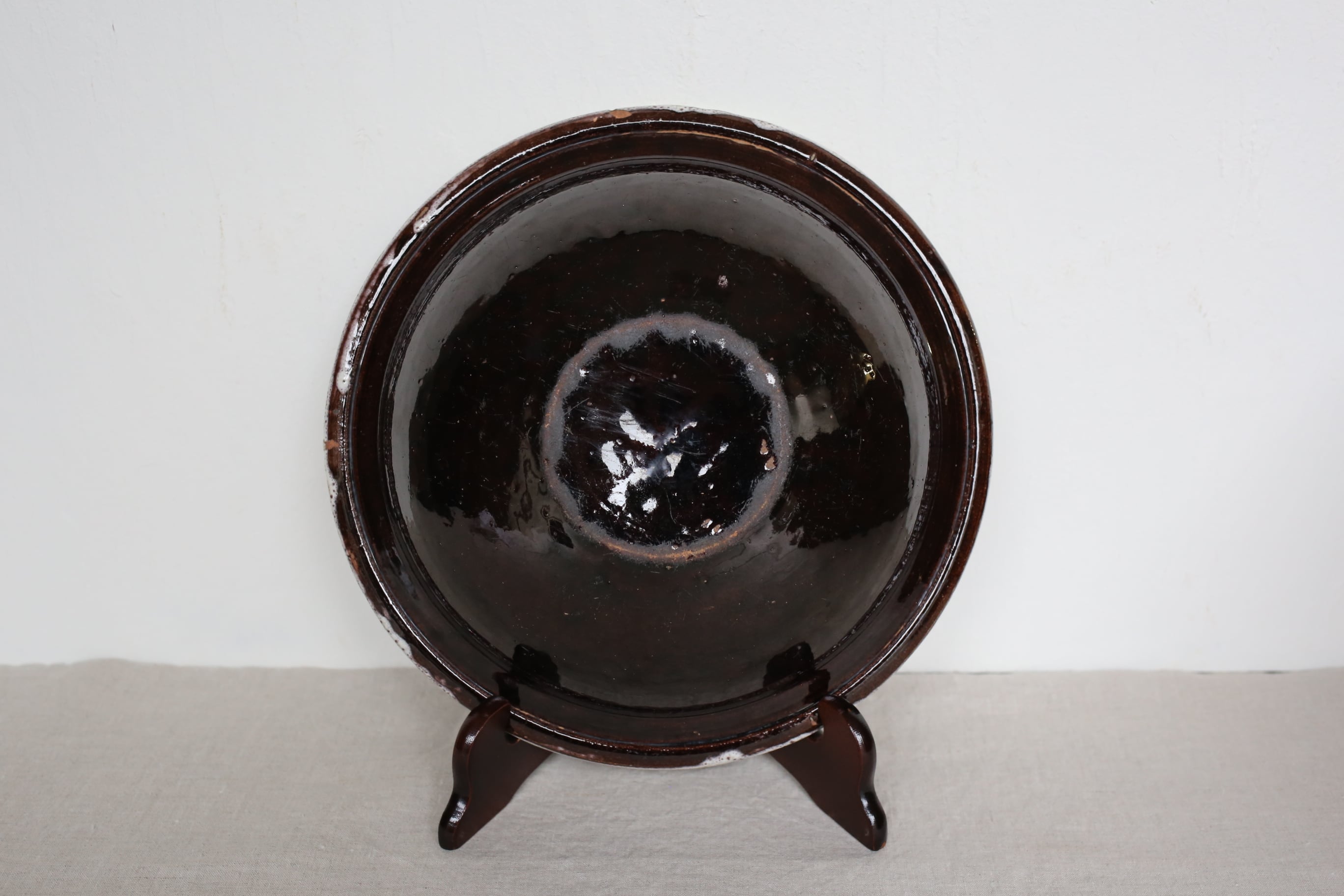 縁の上側に2箇所カケがありテラコッタの地が見えていますが、それ以外にカケやヒビもなくとても良い状態です。