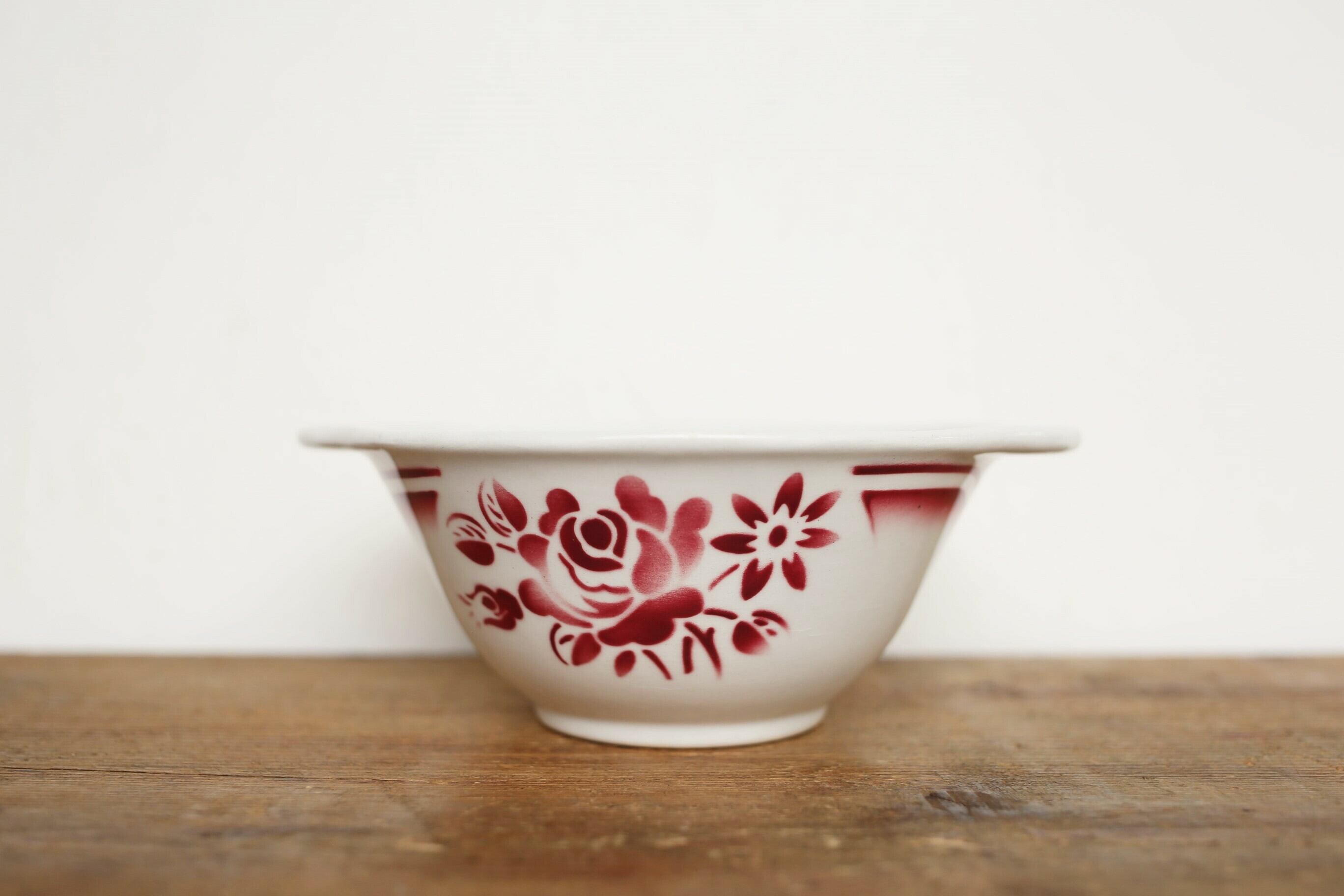 フランス アンティーク ヴィンテージ Badonviller バドンヴィレー 耳付き カフェオレボウル 花柄(N-01501)