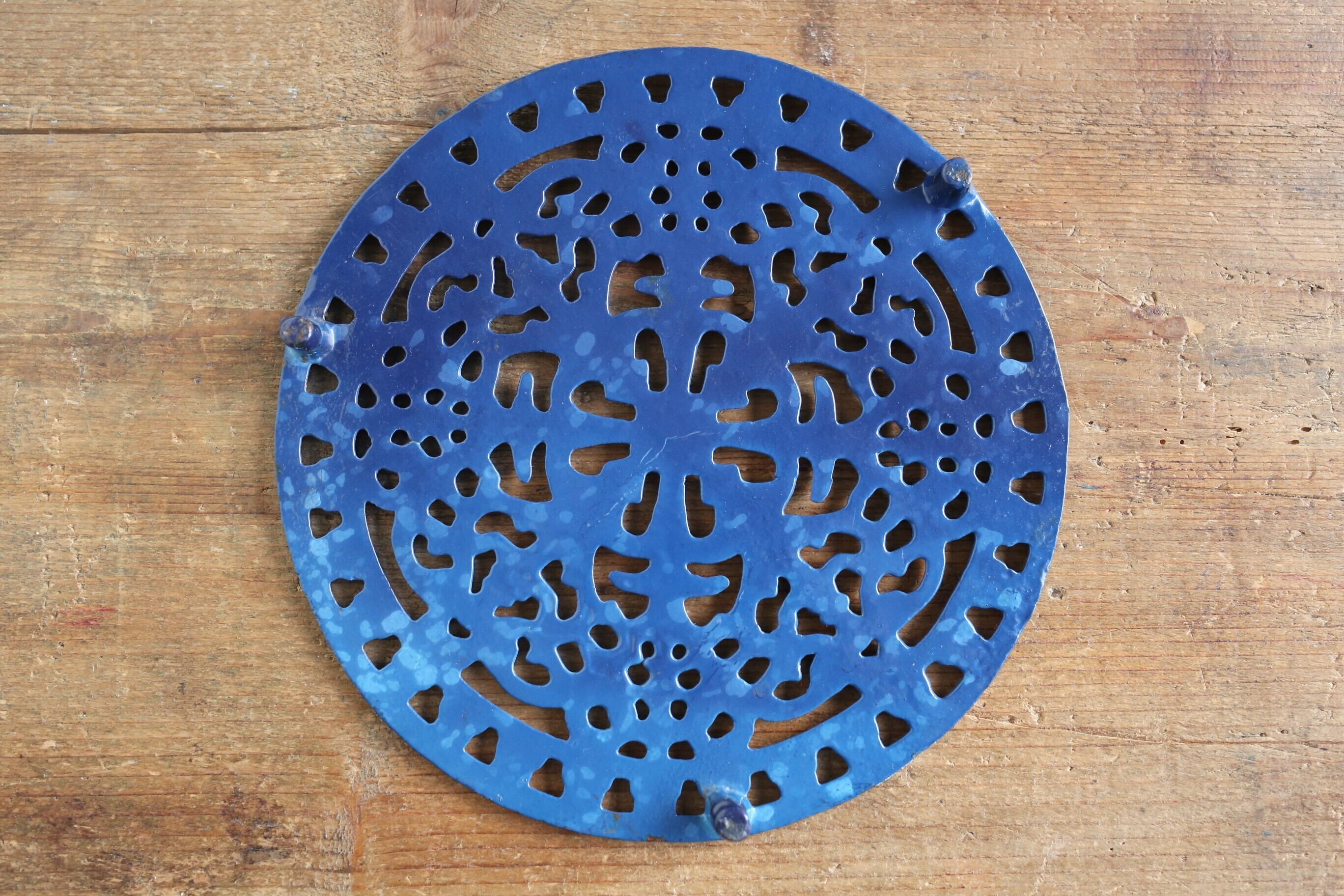 フランス アンティーク ヴィンテージ 鍋敷き トリベット 鋳物 アイアン製 ブルー N-02781
