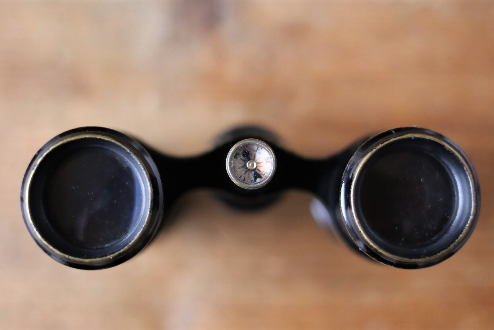 ディスプレイとしても実用可能な道具としても魅力的な双眼鏡ですが、コンパスが付いているものはとても希少です。