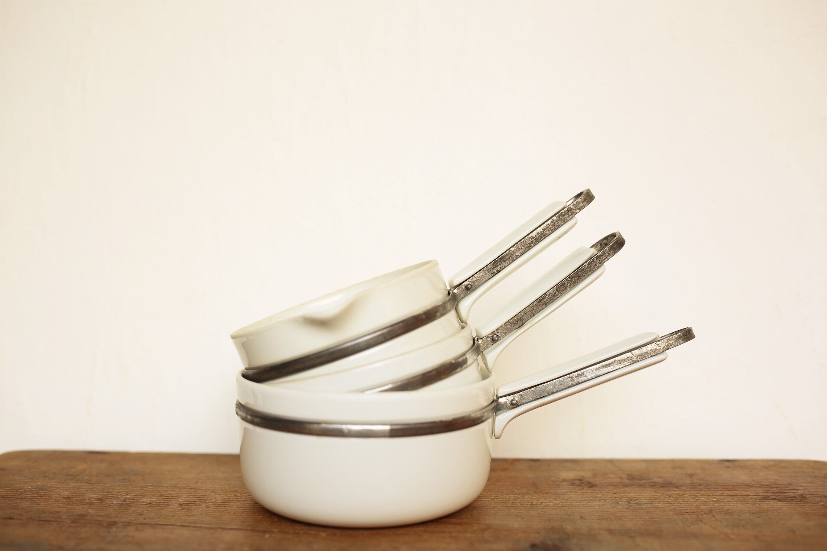 直火にかけられる磁器として1900年前半の開発されましたが、シンプルなデザインと白磁がとても美しい鍋です。