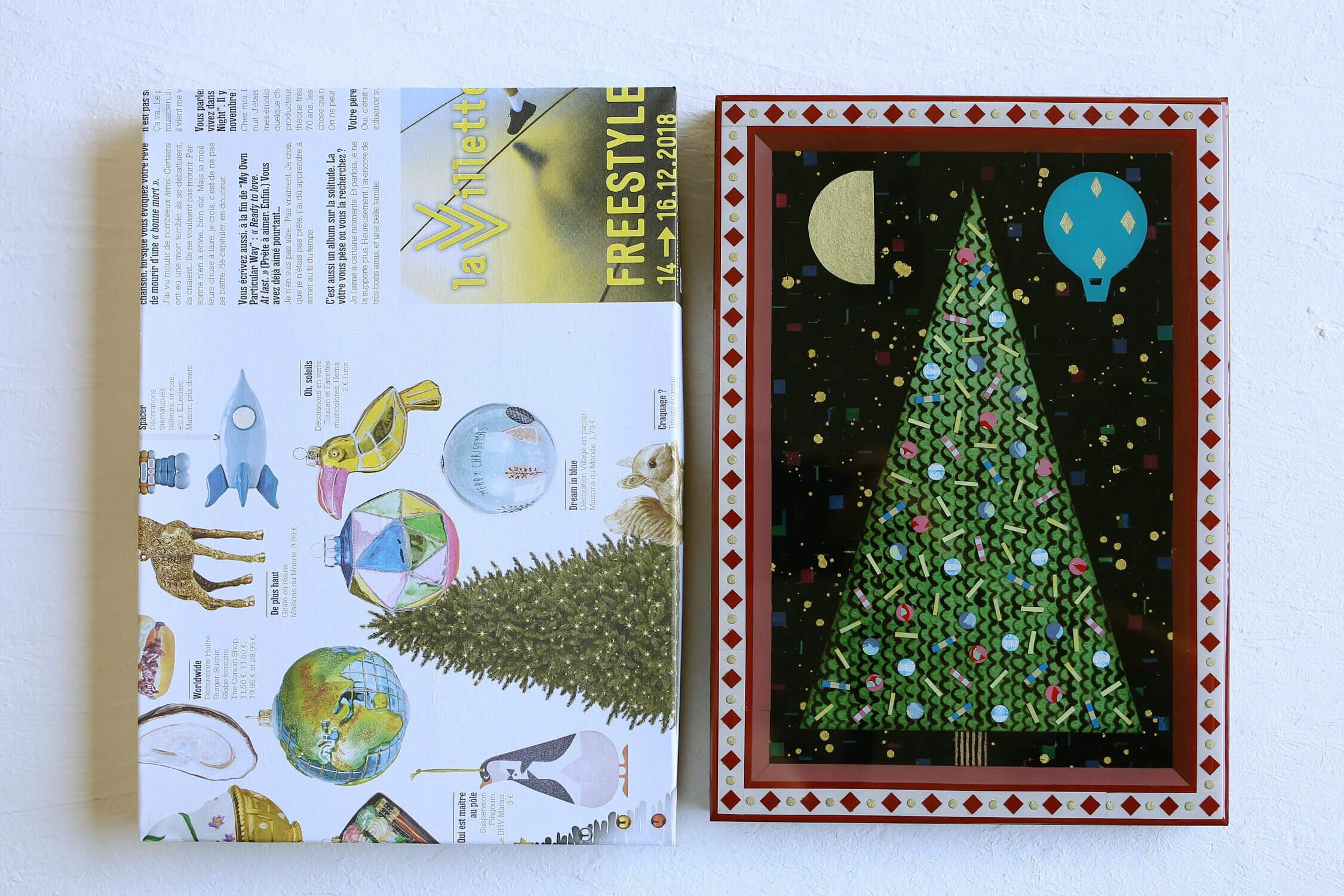 フランス在住の間にコラージュを始め、「ききゅう」や「パリの街」をテーマに作品制作を続けています。ペイントした紙を切り貼りしたものをエポキシレジン(樹脂)で覆っています。