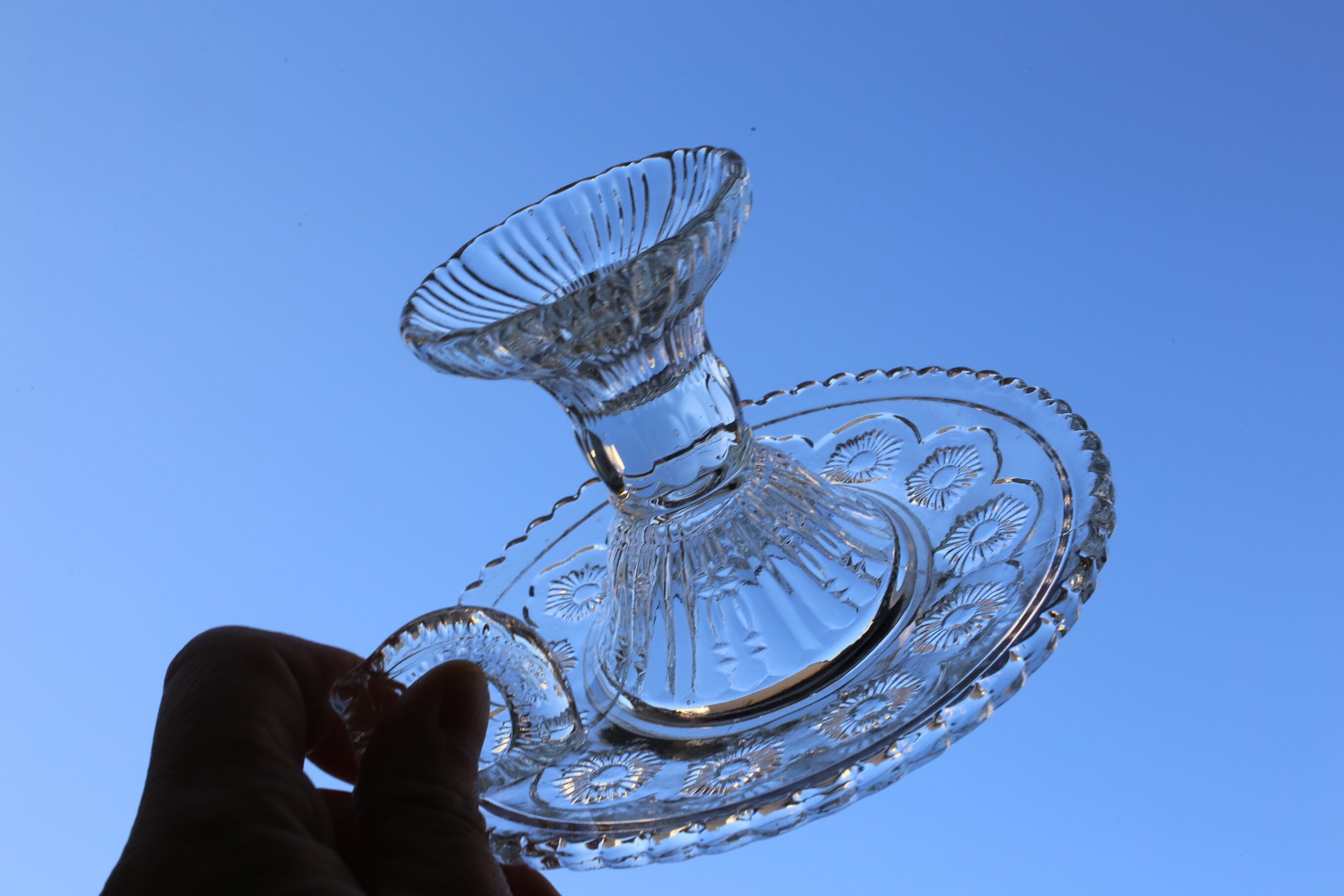 このサイズのガラスのキャンドルスタンドはほとんど見かけることのない希少なものです。