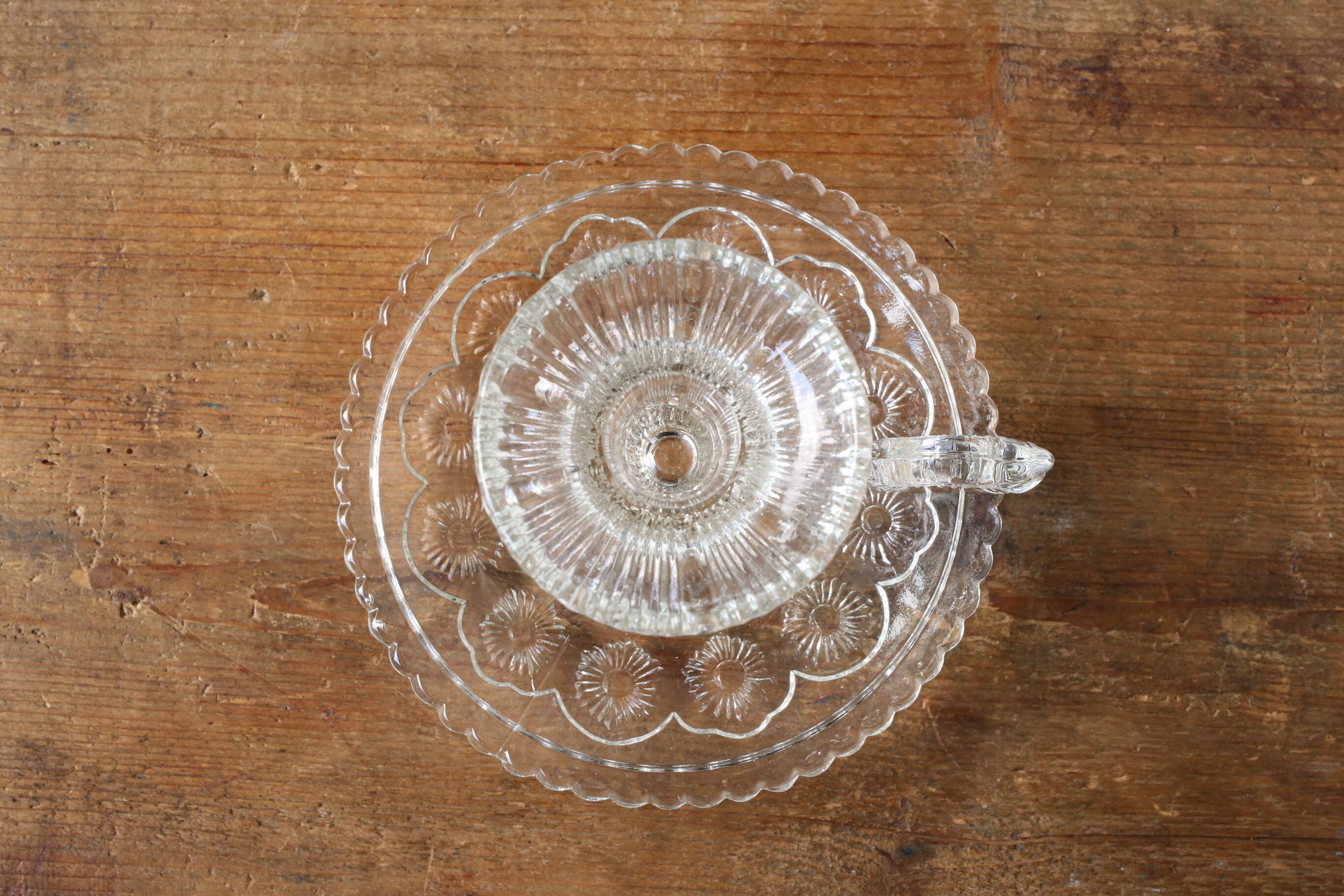 クリスタルではありませんが、古いガラスは純度が高く光を通すと美しい輝きがあります。